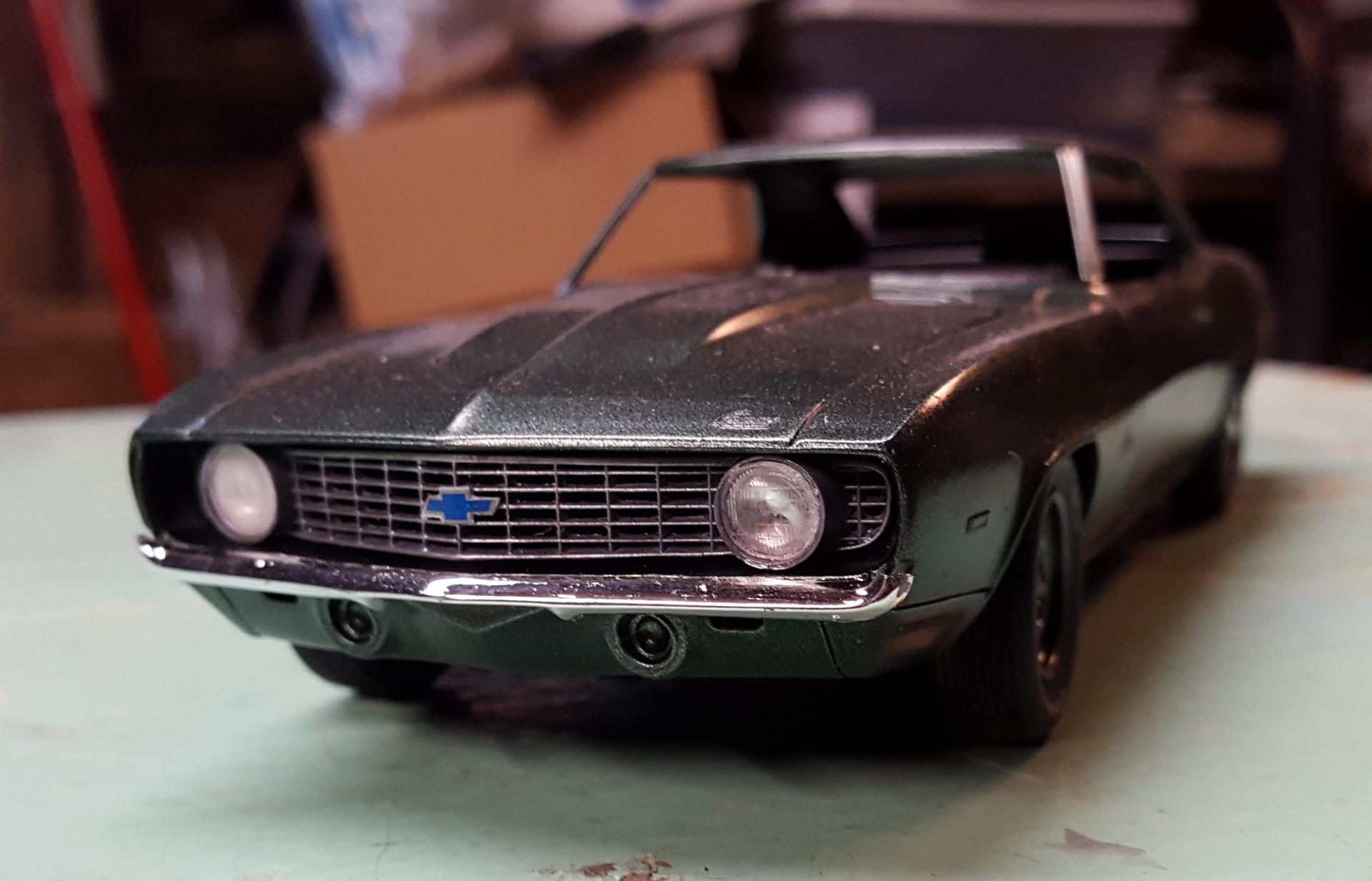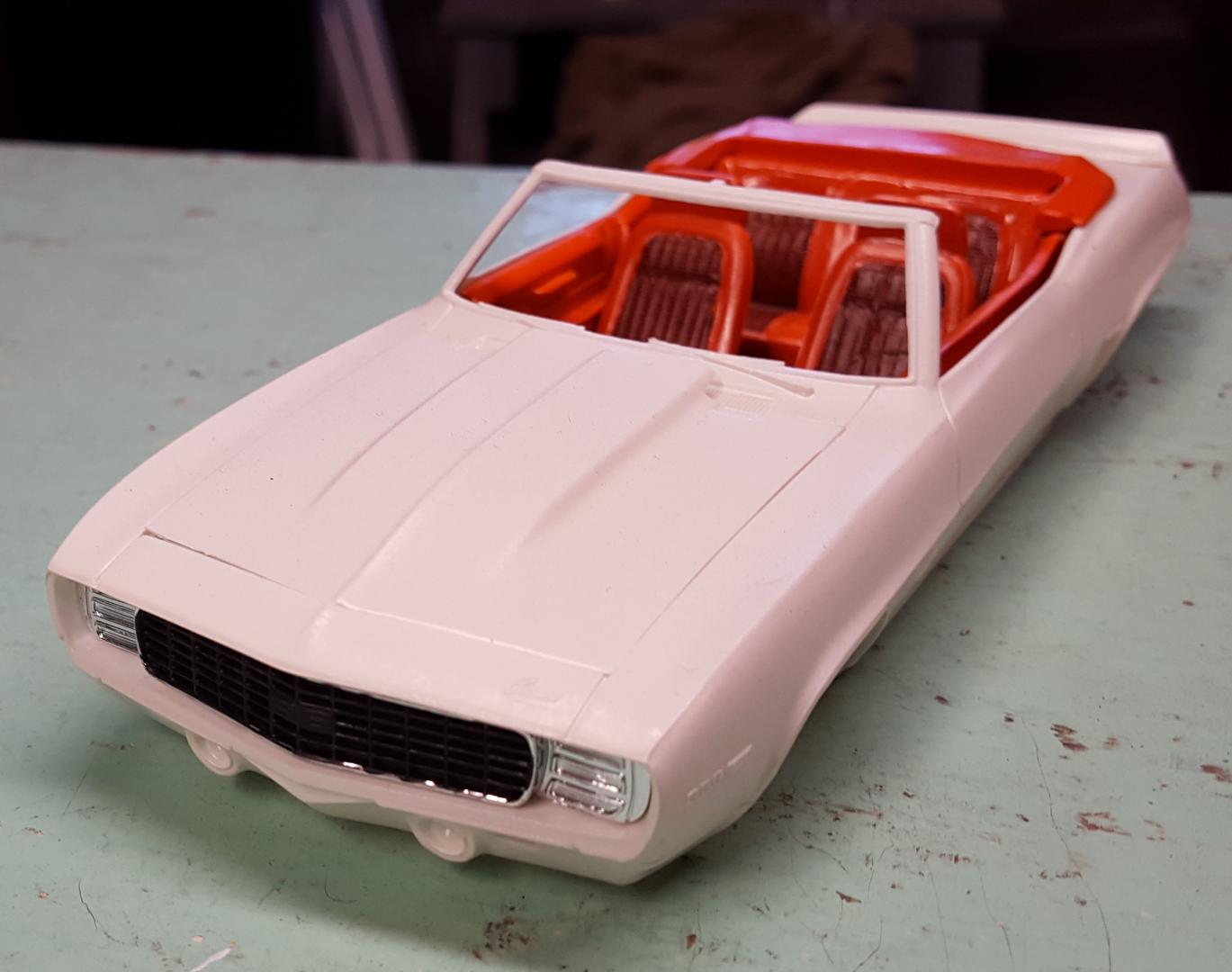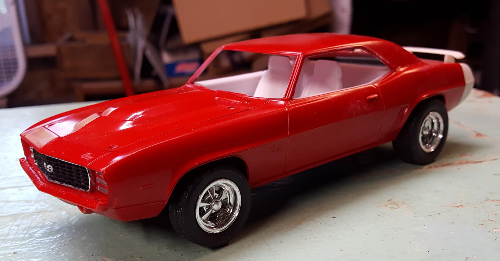 New approach- took all the Revell '69 Camaros I had accumulated off the shelf and pretty much started them all at once - Black RS/SS convert, Yellow SS convert, Hugger Orange RS Z/28, Pace Car convert, Blue Yenko SC, Red Baldwin Motion, Silver Z/28, Maroon RS/SS396, Green ZL-1