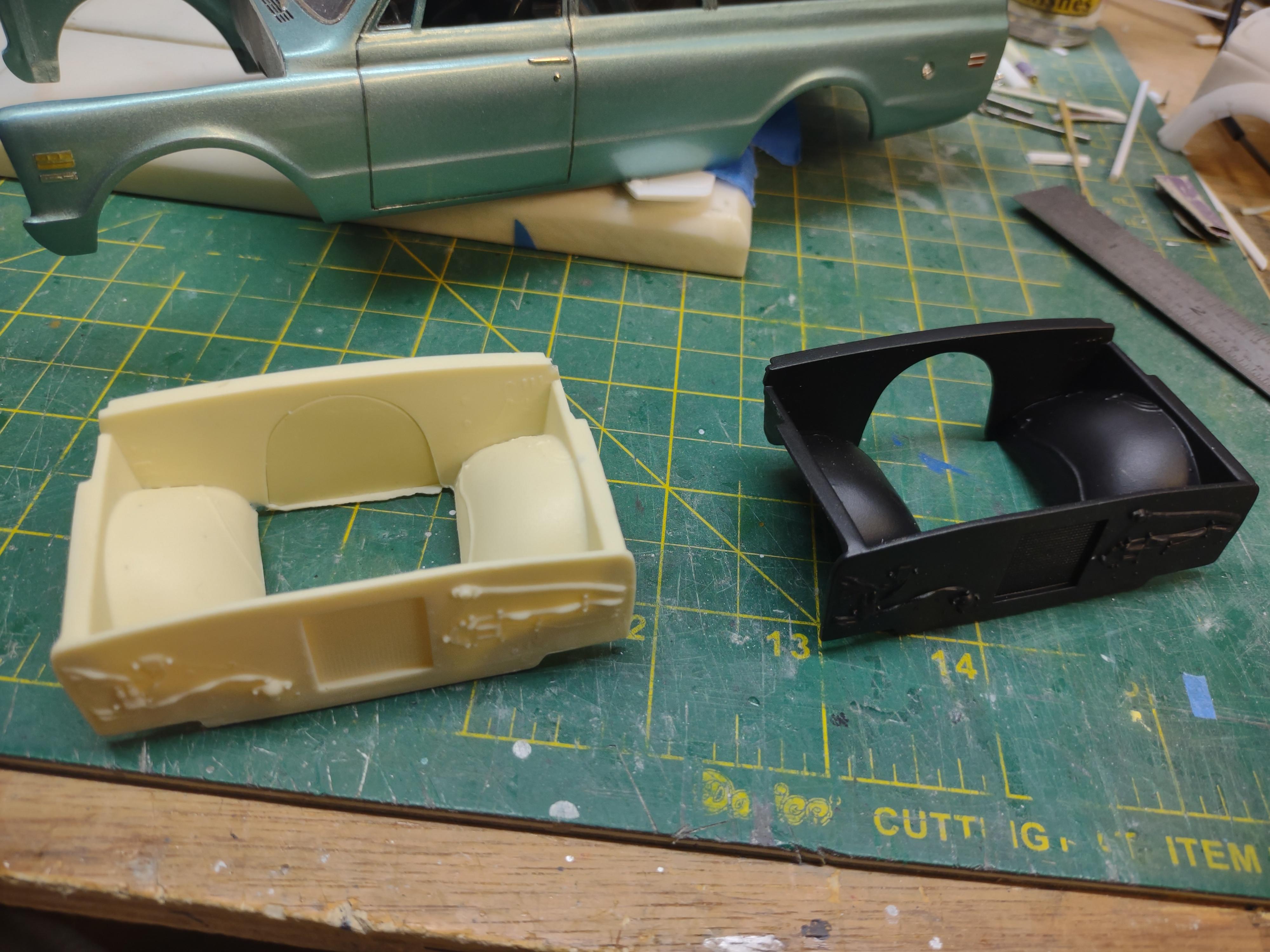 I am casting these as a direct replacement for the '69-'72 C-10 kits which have an incorrect engine bay with flat/squared fender wells. Just takes a few straight forward cuts and some cleanup and these fit right back into place. PM me with interest. Other projects to follow.