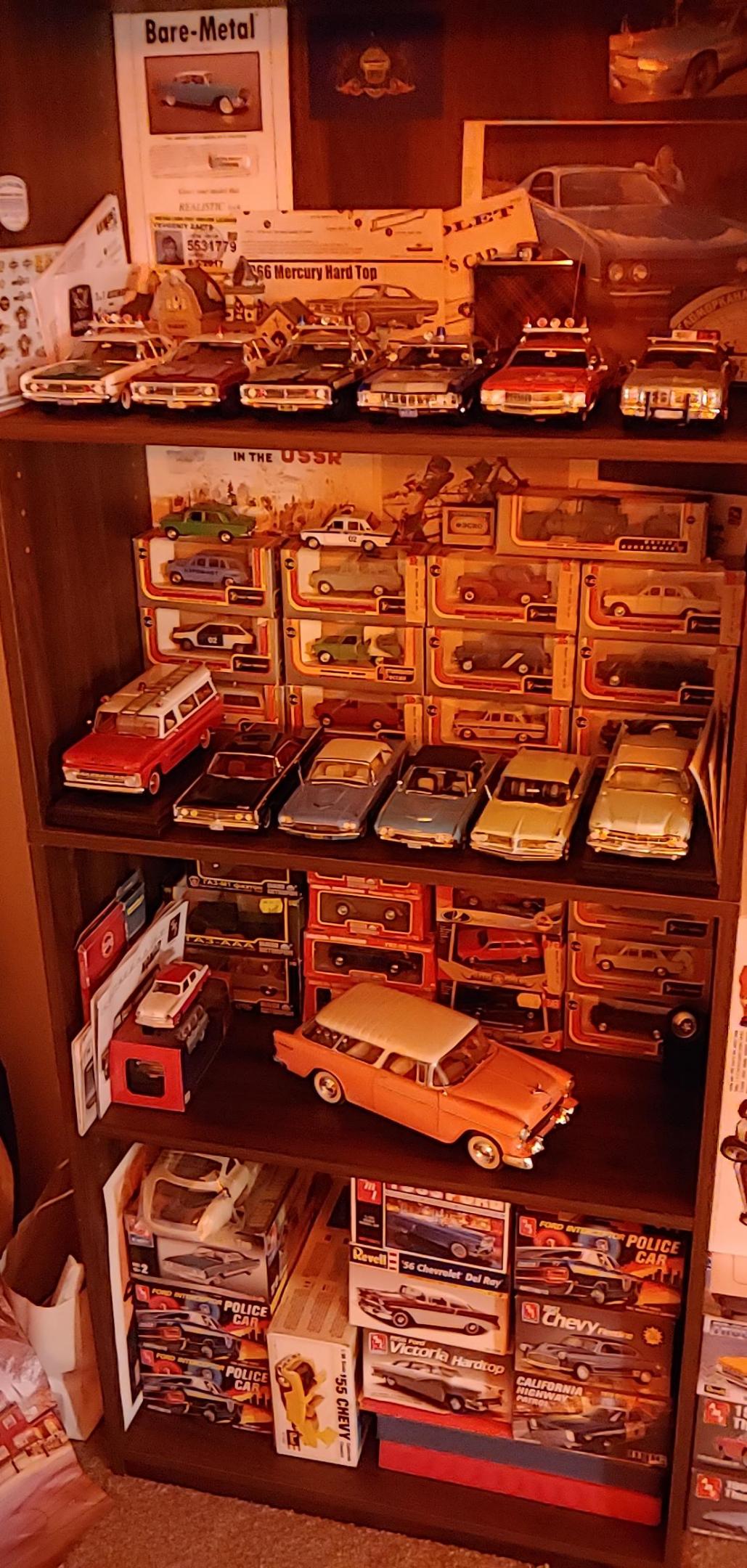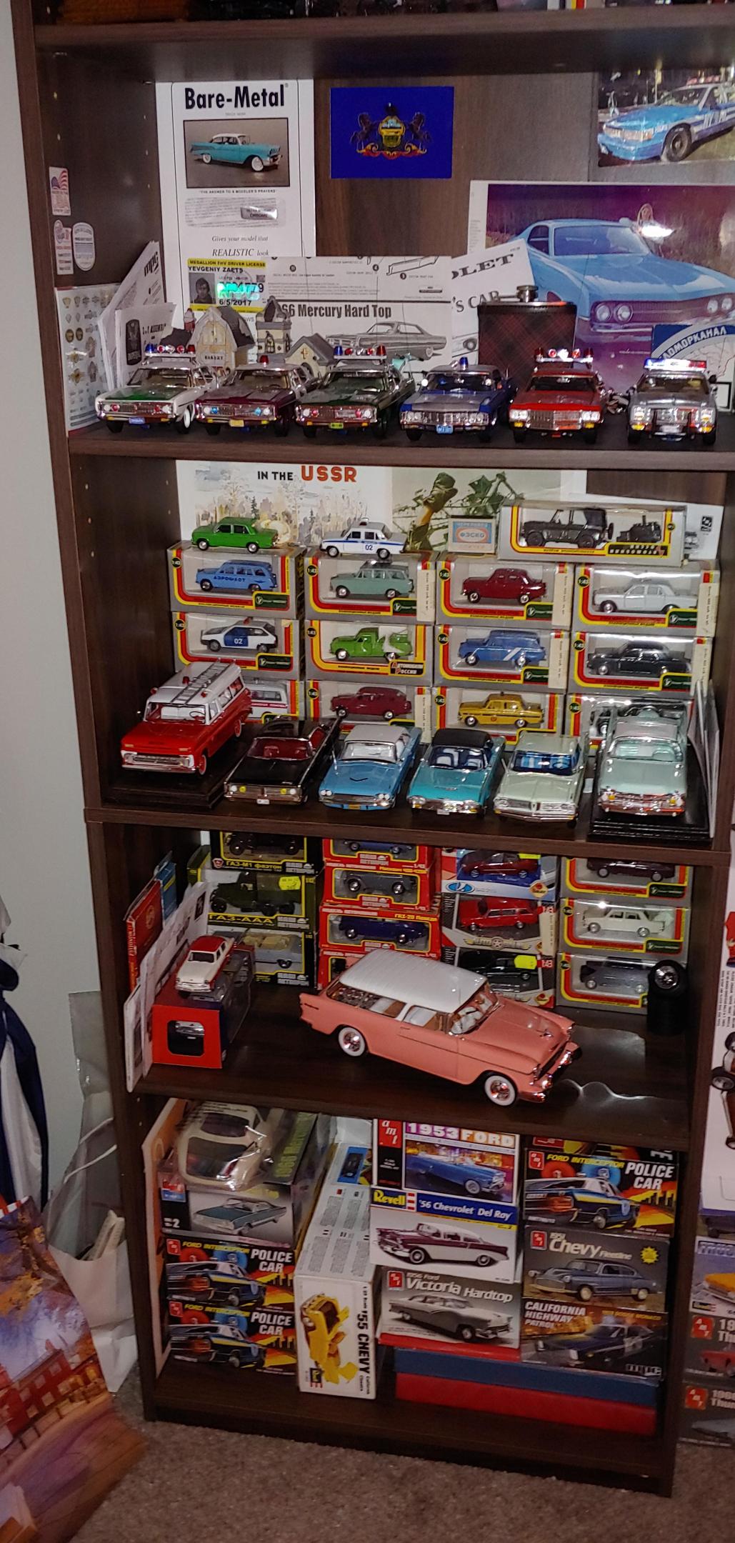 Finished 5 of these around same time started maybe December. Vermont state police, 65 thunderbird, 62 thunderbird, 62 Catalina, 70 impala fire chief, 66 suburban Scranton fire truck, I don't know if Scranton had such a truck but I'm sure if they did it would be useful. Small ladder to climb them doubles. And a pic of my stash.