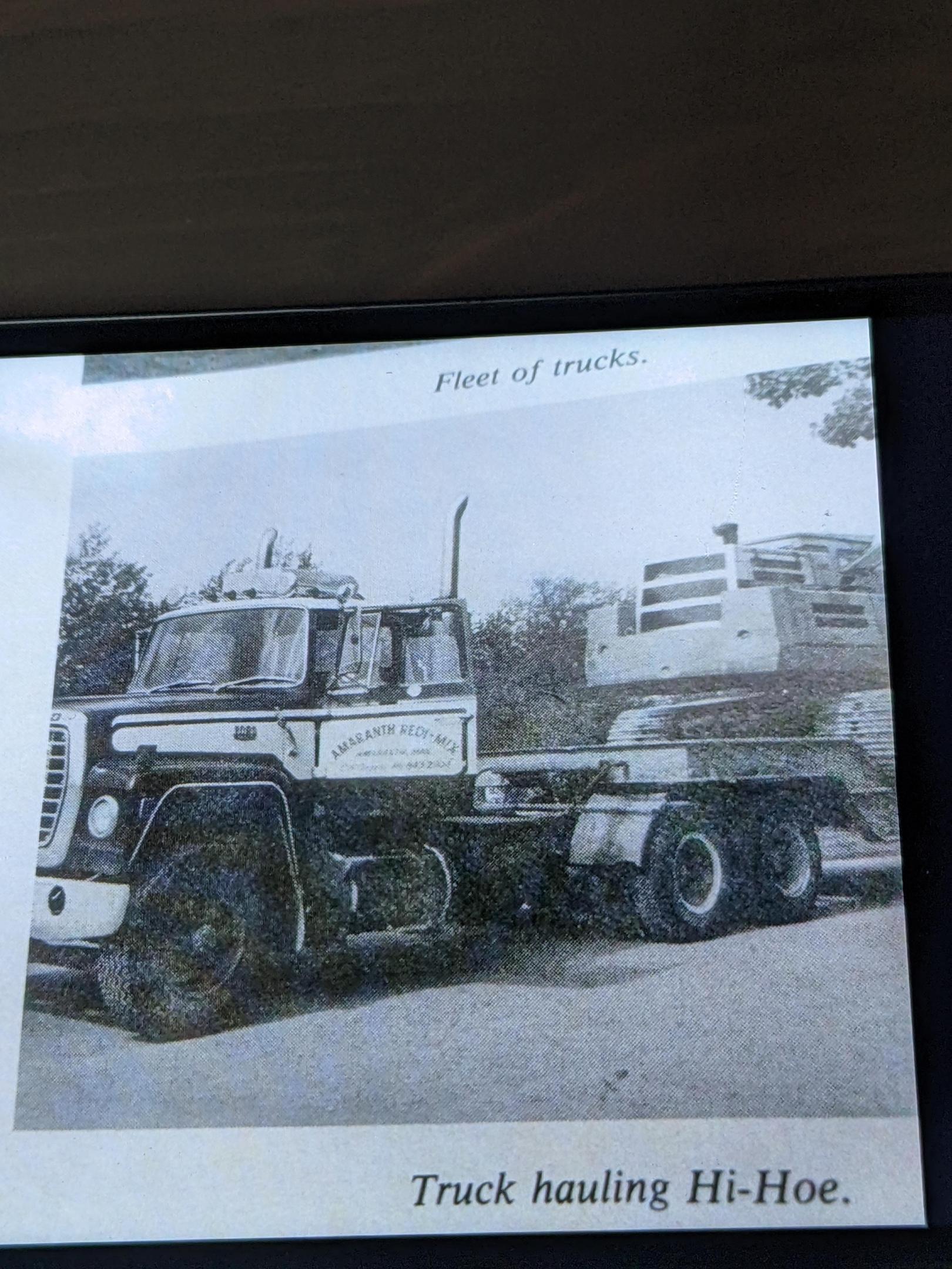 I'll play ball. This is my ongoing project for the last 2 years-ish. It's going to be a replica of a truck I used to ride along in with my Dad. This was when I wasn't old enough to go to school yet so he was delegated(Mom was working also) to taking me along with him and is the reason I like trucks. It had a Detroit in it. The hood is one I got off of Epay a long time ago. The real truck was maroon/burgundy and white. I included a picture of the real McCoy, but it's a picture of a picture, so I apologize, it's (along with my 45 yr old memory) all I have to go off of. Thanks. -