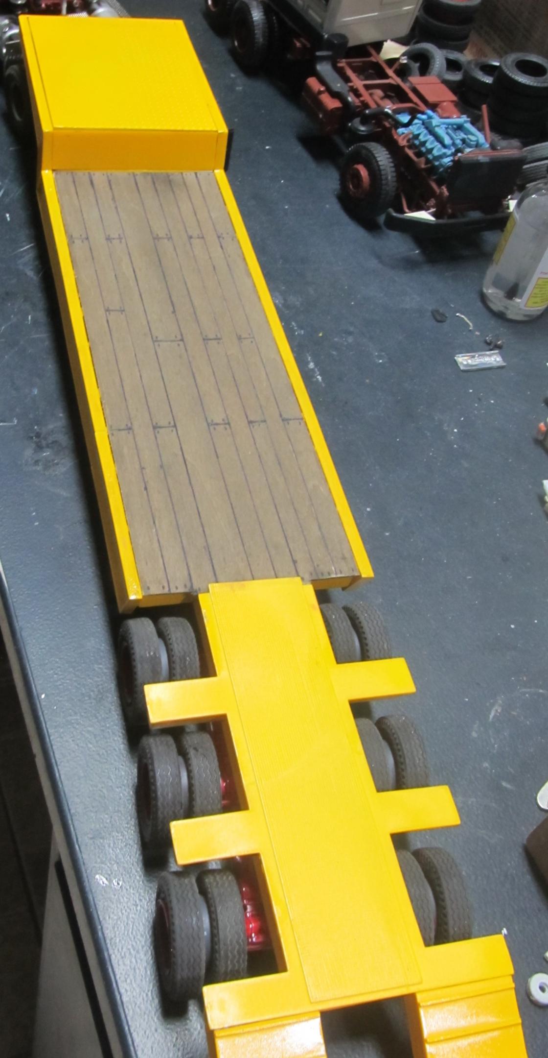 Here is my almost finished stretched out lowboy . Nothing fancy . Added about a half inch to the neck . And three inches or so to the deck Don't quite remember at the moment . Added a real wood deck. It still needs tie down rings and some more weathering . Thanks for looking ! Be Well Gator