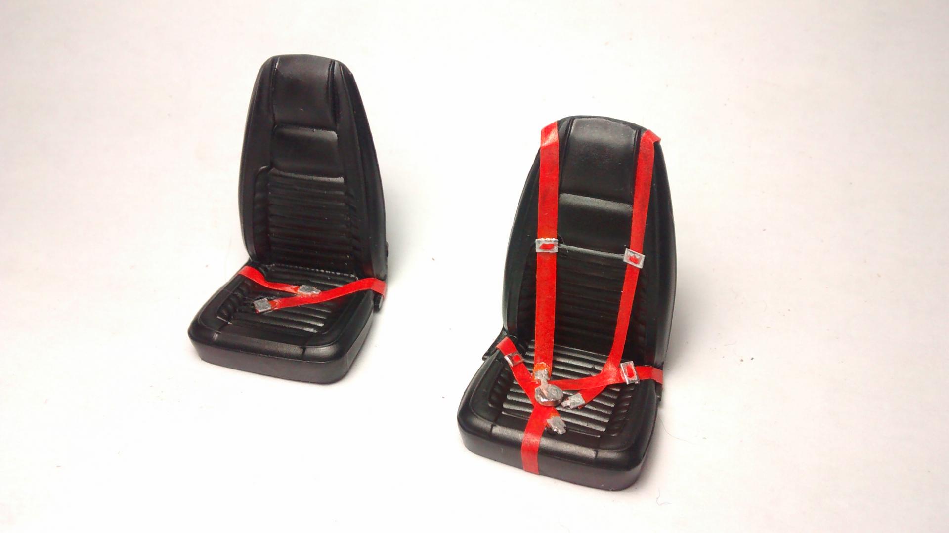 So here's where I'm at for today. Well, so far anyway. I'm trying to get this one wrapped up for the last build of 2018, so if I really grind on it and all goes well, I just may get this done and clog this post up over the next two days. Anyway, I got the engine done with the exception of the blower hat and linkage. I had to kick the belt forward a bit so the alternator would clear the dual distributors, so here's to hoping final assembly goes to plan. Otherwise, this one may be running without a fan shroud. Weight reduction, right? I also tried my hand at making a racing harness from strips of Tamiya tape and plastic strips. It doesn't look nearly as good as the photoetch stuff, but it should add a little interest to an interior that will probably be difficult to see anyway. Gotta love modeling on a tight budget lol.