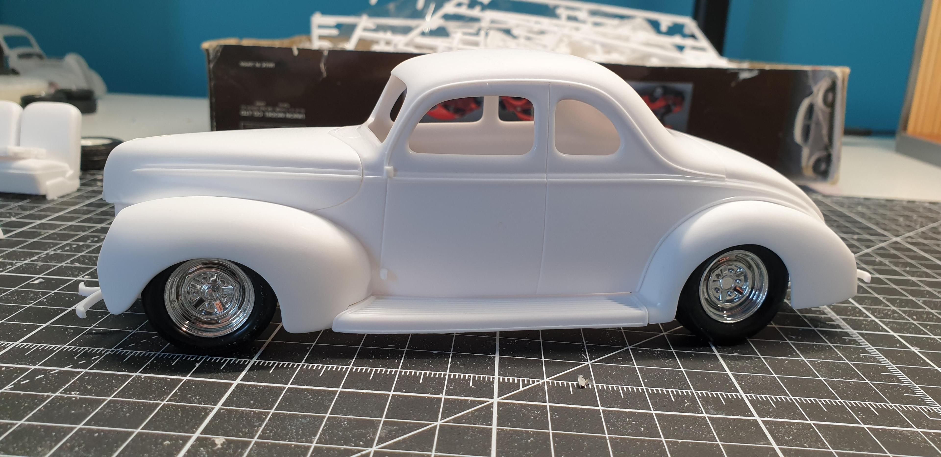 Revell 30a coupe. Lowered the front some more and took a bit more out of the top. Going with a Cadillac motor -