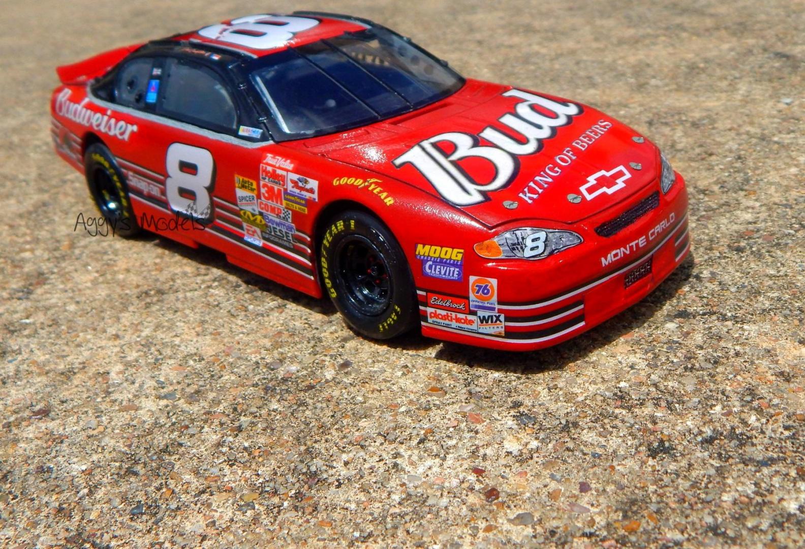 I have been working on this for quite some time and have finally finished. I found every reference I could of the actual Daytona car and tried to match it. All the way down to the tape limiting air flow in the front grill. I enjoyed every hour sent working on this car. Biggest issue was the decals were brittle and didn't want to stick as the kit is 15 years old. Also, this kit did not come with the decals that said Budweiser or Bud. Instead it came with Dale for the hood and Earnhardt jr for the side. I ordered decal paper and through computer magic was able to make the Bud decals among others that was on his 2001 Daytona car. There is also a tread of the build under on the work bench. Thanks for looking, and let me know comments and criticism to help improve the next build.