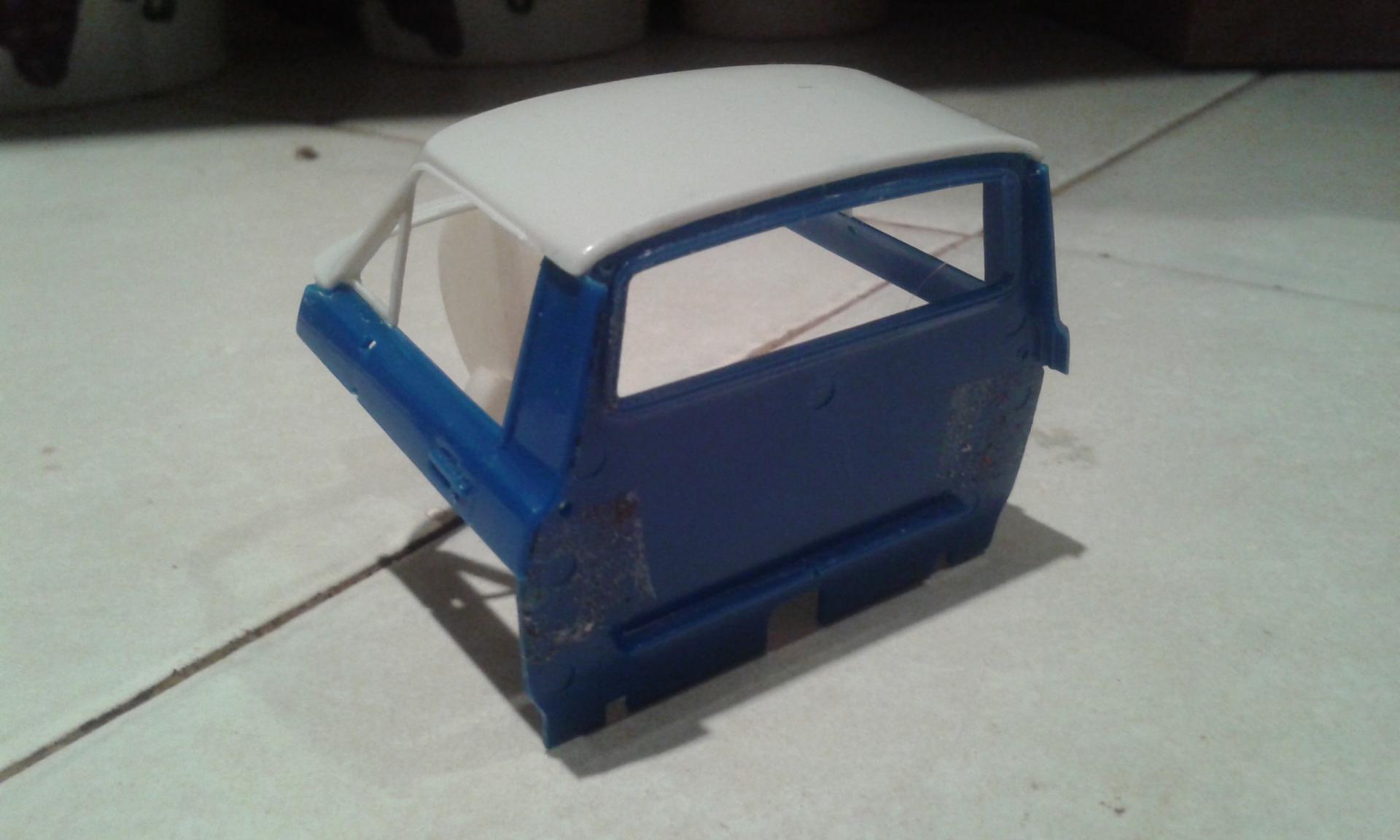 Fred, compare the cab of the Revell Courier to the photo of the real truck. Look at the windshield and vent window area. The roof is clearly more upright on the real truck. Besides, the box even says their kit is chopped. Use the AMT Courier for your chassis and interior, it's clearly the best and most correct example available. Mazda didn't change the truck much under the skin. Even though the body looks newer, closer look shows the update was just cosmetic and not structural. I've wanted to make a stock Courier forever and once I discovered the cab detail facts, I was off and running. Good luck with your build. This is the truck that inspired the bed. It's someone else's pic I found online. Even though the creases don't line up, and the bed as a whole is incorrect, the curve of the top of the side panels matches the cab, and the inside of the bed is right, so that was my basis. -