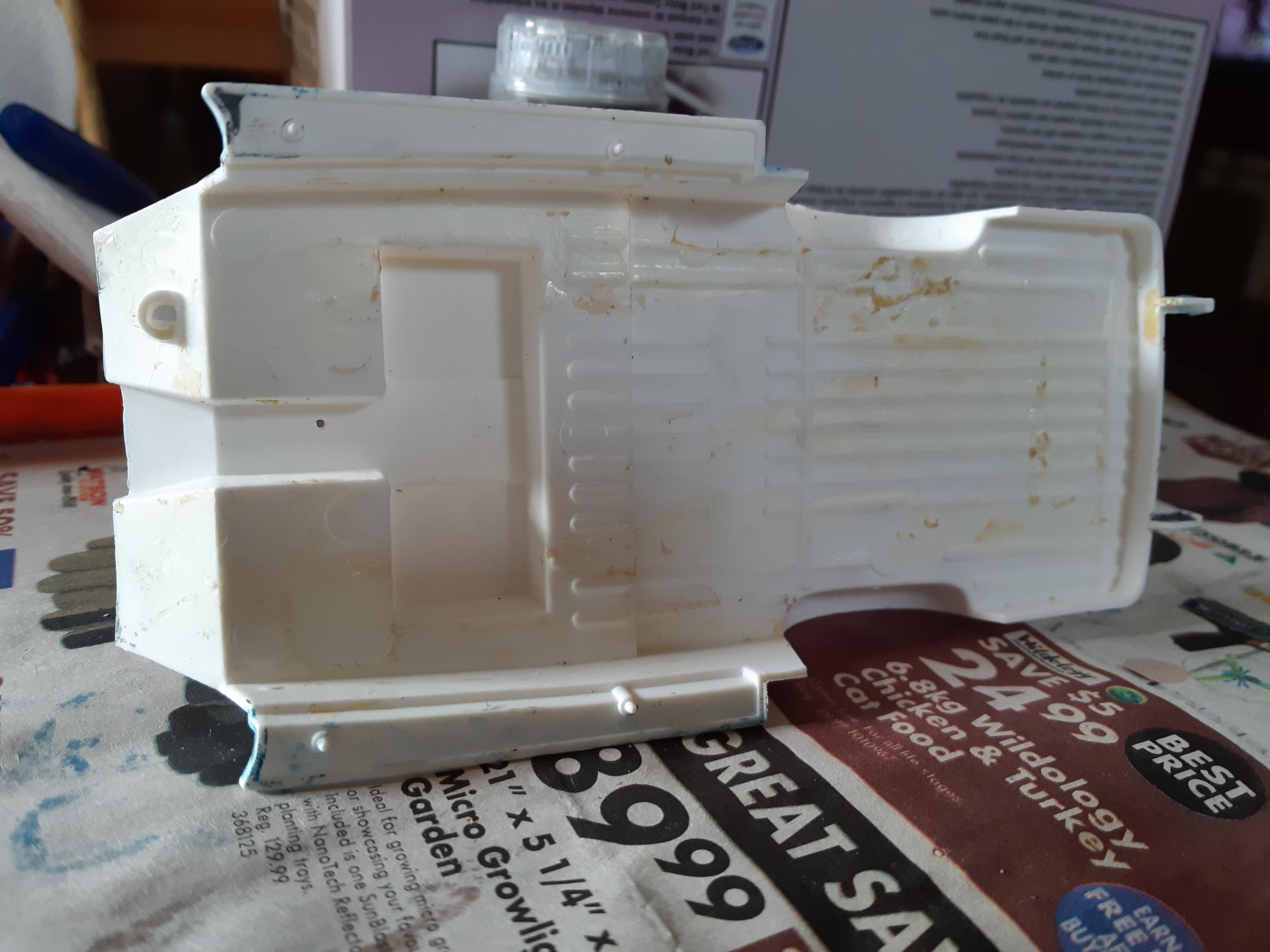 The easy-off seemed to do the trick, the body is pretty much clean of all that excess paint that was on it. Something else I noticed, not sure what type of glue was used on this build previously but I gave the chassis and interior part a covering of easy-off as well and all that excess glue is peeling off now. Maybe something in easy-off removes glue.