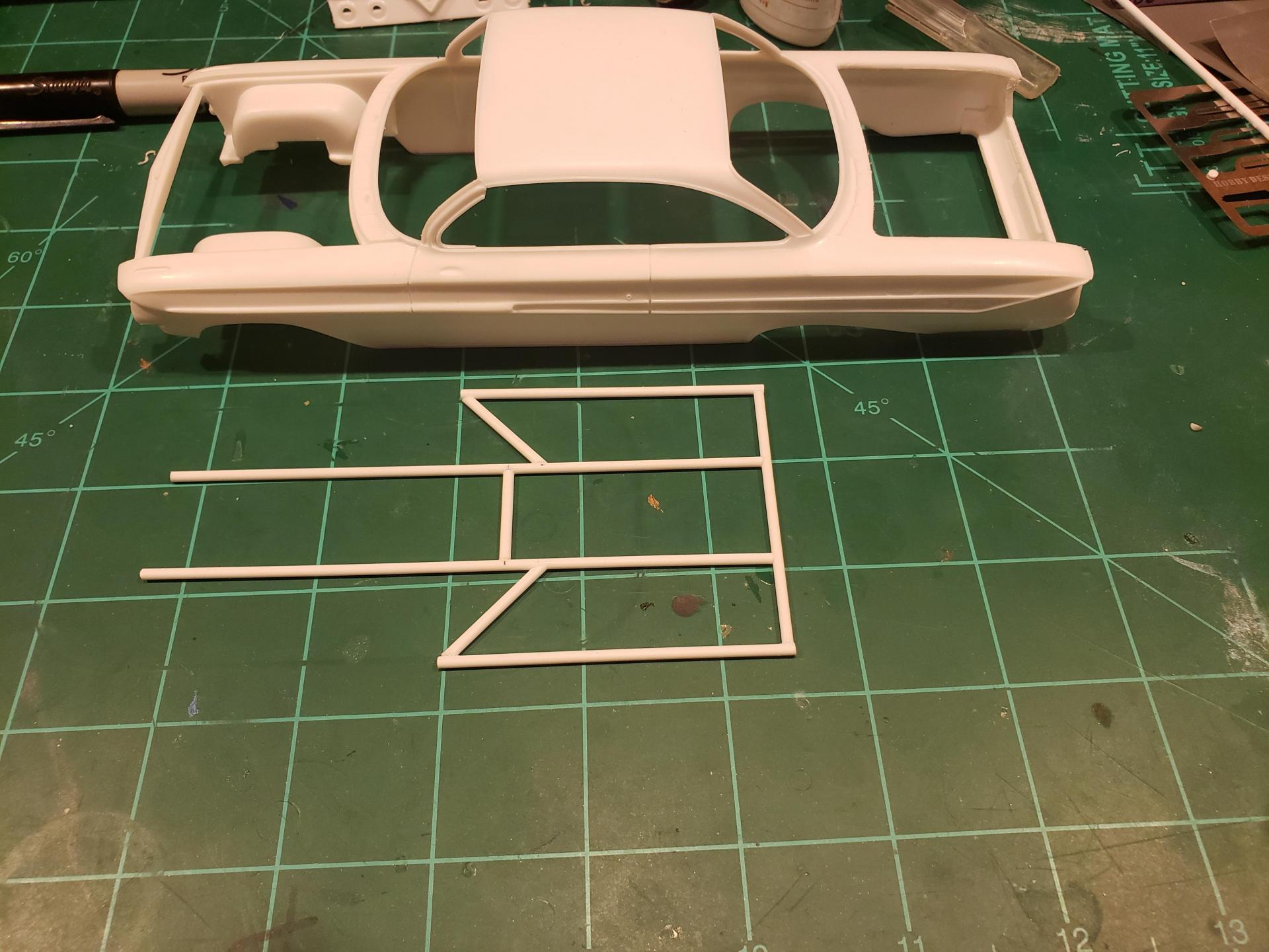 I used the 57 pro mod as a guide for the main rail placement because there set up for a big block and that's what I'm going with -