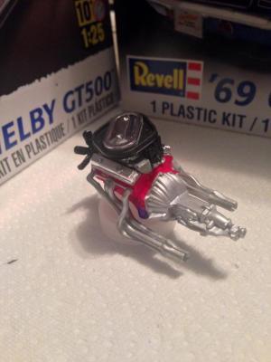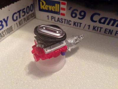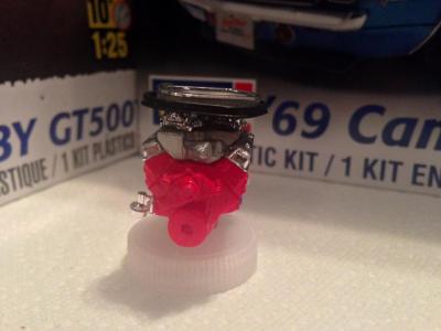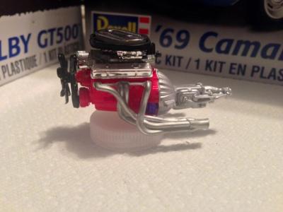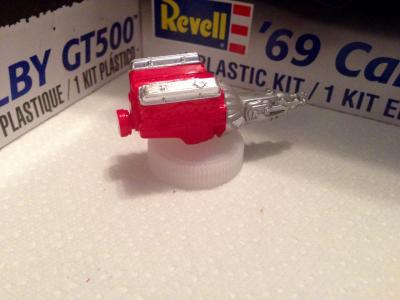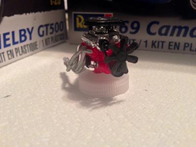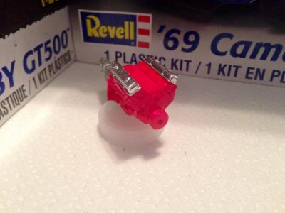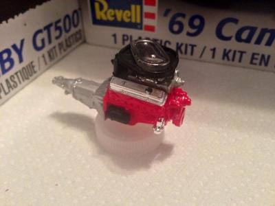 Good Evening, I am brand new to this site and forum. I used to put together model cars as a teenager just to occupy my OCD, but hadn't done one in YEARS until a few weeks ago. I threw together an '07 Shelby GT500 in just a few days, not putting any effort in. That build brought back the itch, so I needed to do more. The other night I grabbed the '69 Camaro kit to work on. Unfortunately this is going to be another quick build, without the detail I really want. I'm not in a financial position to get all the extra tools and things that I want/need to really slow down and do a great build. Not working with any primer, sanding, etc for now, though I hope to be able to collect these things for future builds. I am still trying to enjoy taking the time and hopefully doing an acceptable job. Below are some pics; I started with the engine block, and added quite a few of the added parts. Any comments, tips, or critiscism is welcome. I'll be posting more as I progress with the project.