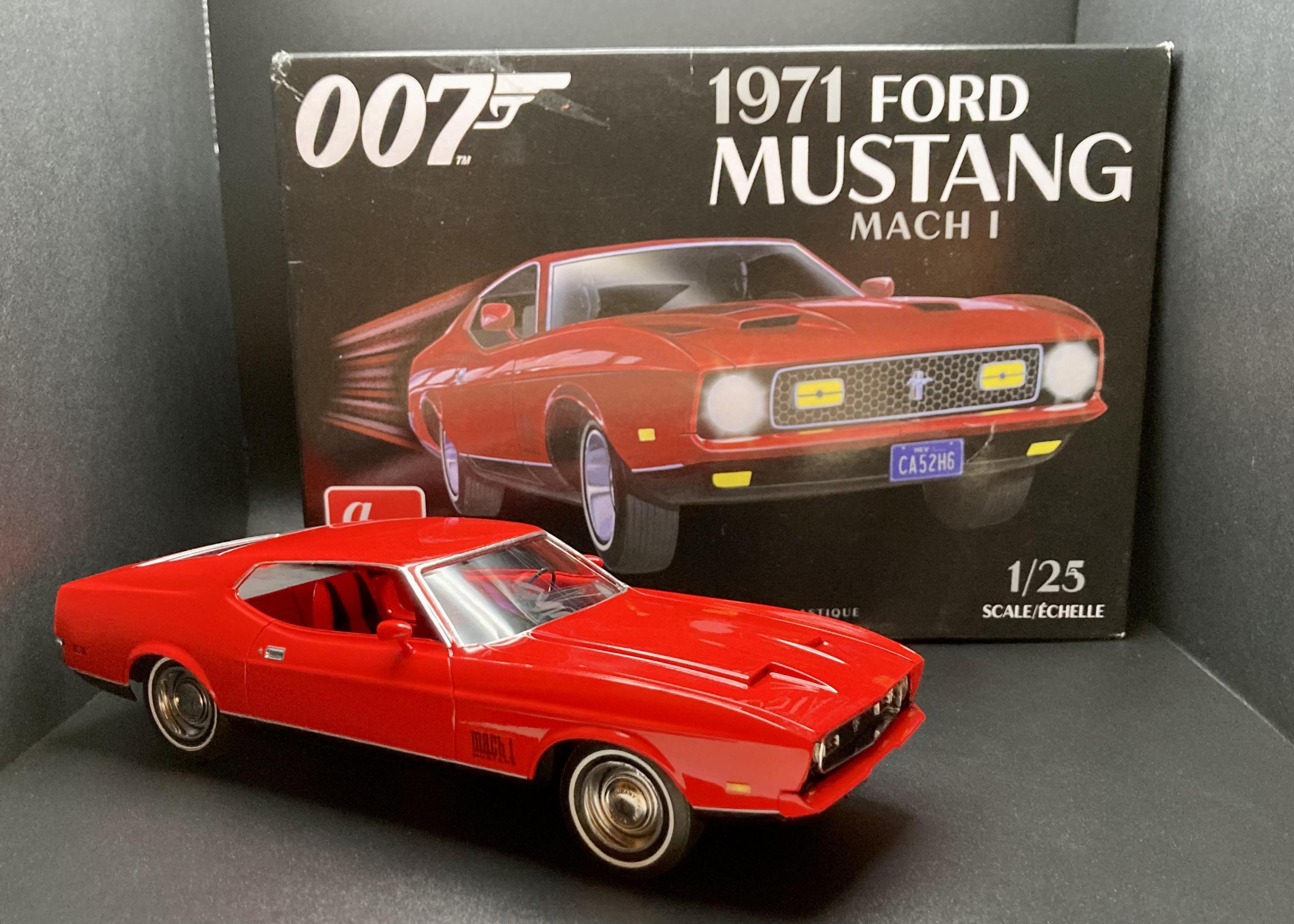 Now that Revell has made the MPC/AMT ‘71-‘73 Mustang kits obsolete… here’s my AMT 007 Mustang Mach 1! I left most of the kit’s inaccuracies intact, and built it as-is out of box. I did fill in the hood vent though. Body and interior are painted Rustoleum Gloss Apple Red over Tamiya pink primer with Krylon semigloss Black for the lower body. Cleared with Pledge floor gloss. I mistakenly glued the firewall to the interior tub and didn’t notice until final assembly. It should be glued into the body shell, further forward. I had to trim the firewall sides down to get the glued chassis and tub into the body. I managed to make the grossly inaccurate engine bay even worse! Exterior shots: Companion shots:007 Mach 1 with Supernatural Impala‘71 Fastback with ‘66 Coupe’71 Fastback with ‘94 Convertible Thanks for looking!
