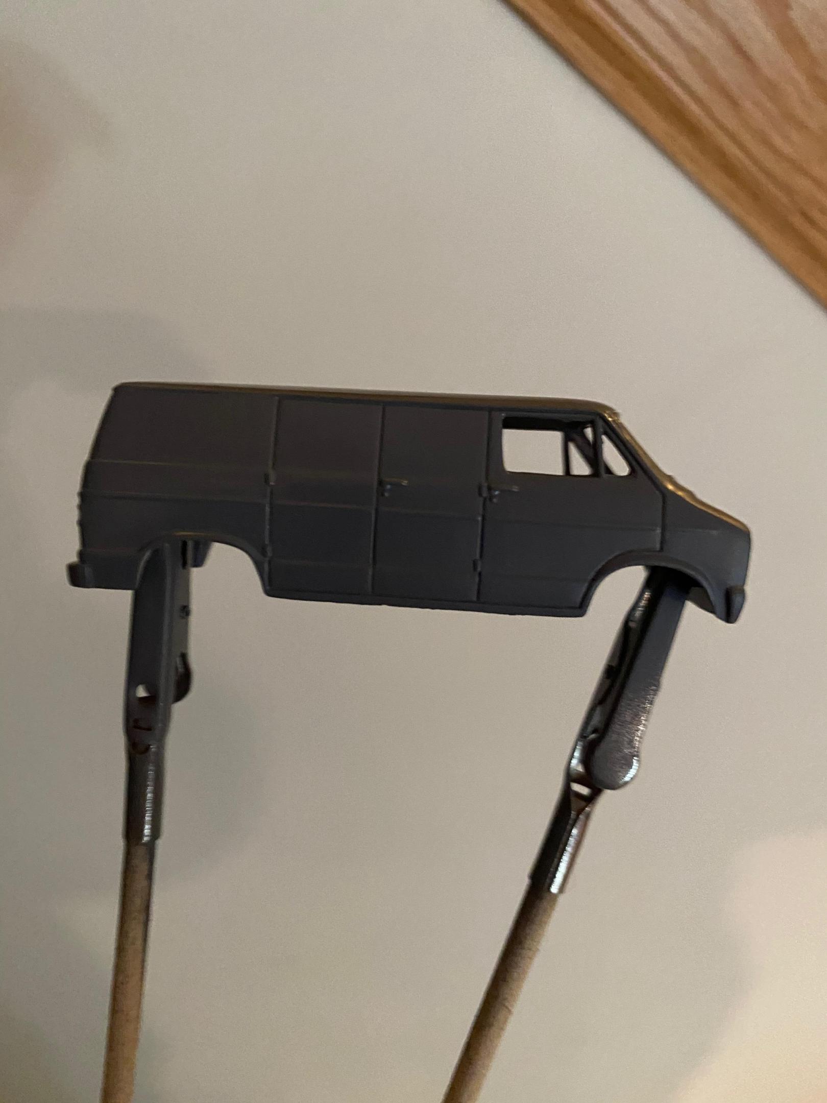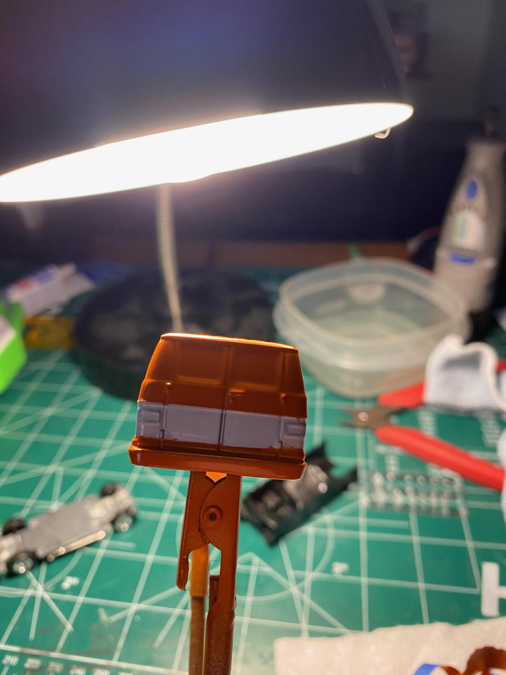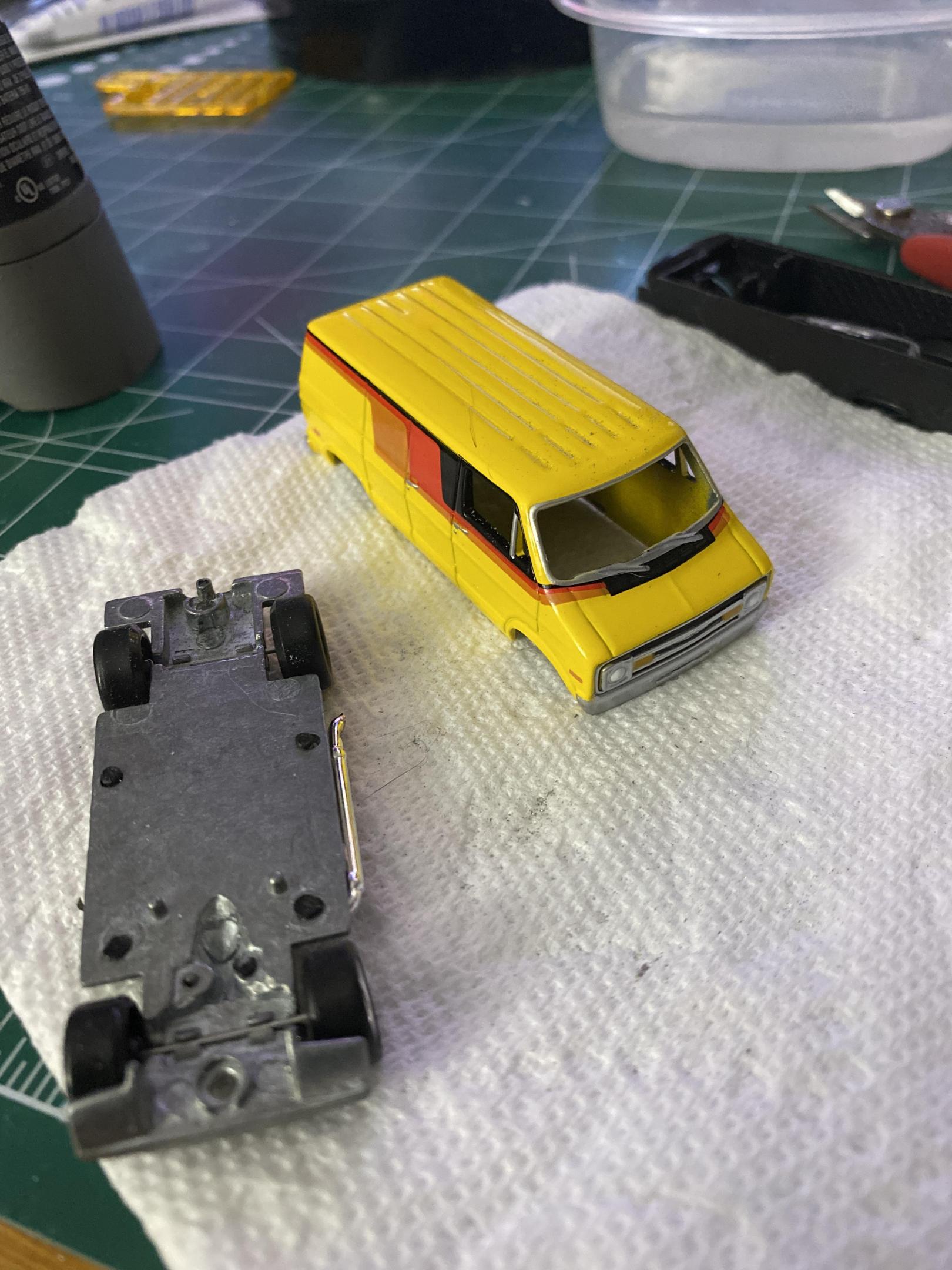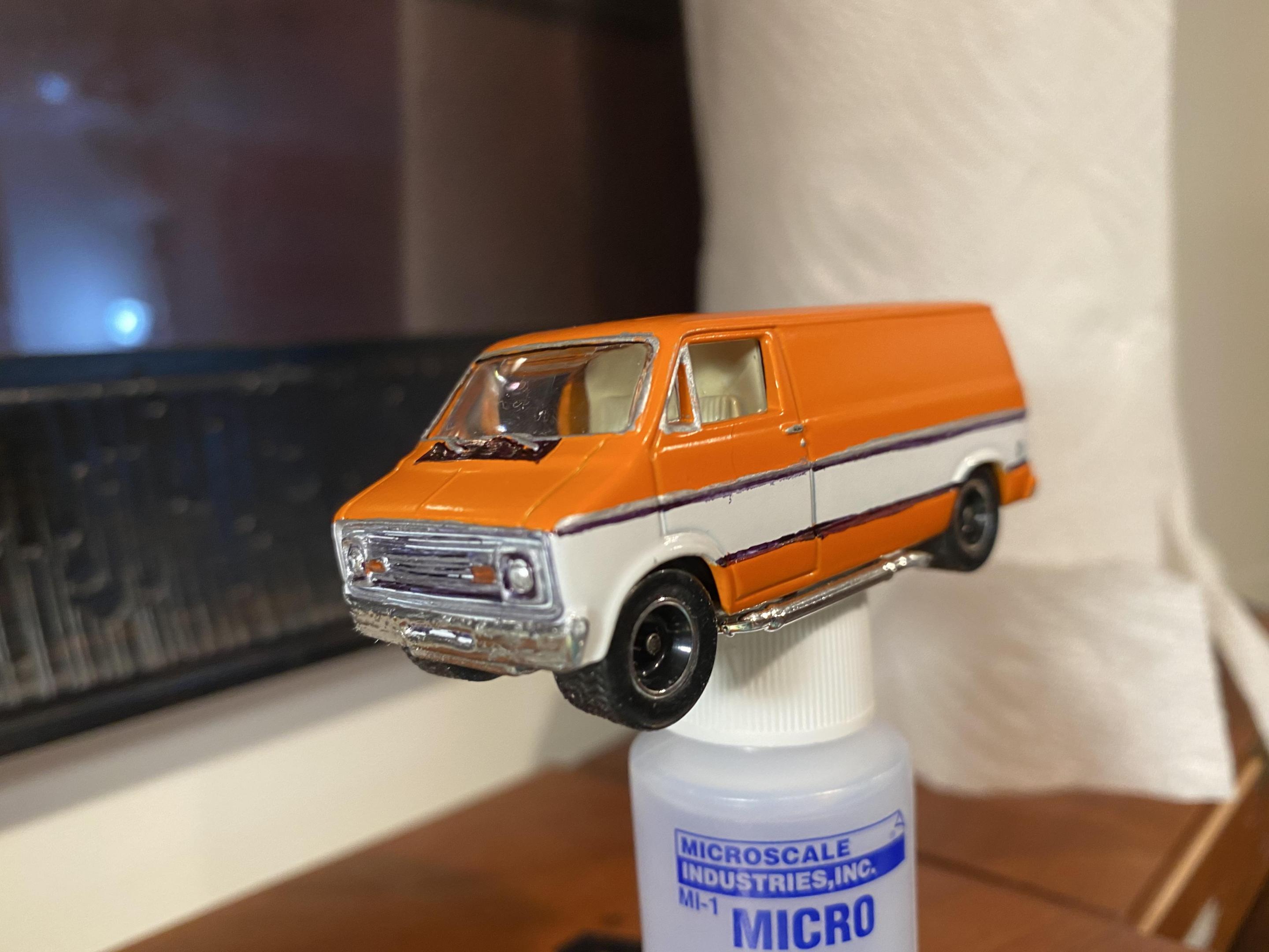 This is one of those die cast that has never been done correctly. I've also never really done a custom 1/64th... but I found the decals (peel and stick, but very thin) on eBay. Shapeways.com supplied the correct light bars. I kinda wanted to use the Hot Wheels Dodge van that's been around for a minute or two, but I've never liked the swept doors. Opted for a Johnny Lightning Dodge "Boogie Van". Has barn doors on the side instead of the slider, but its a collection piece.