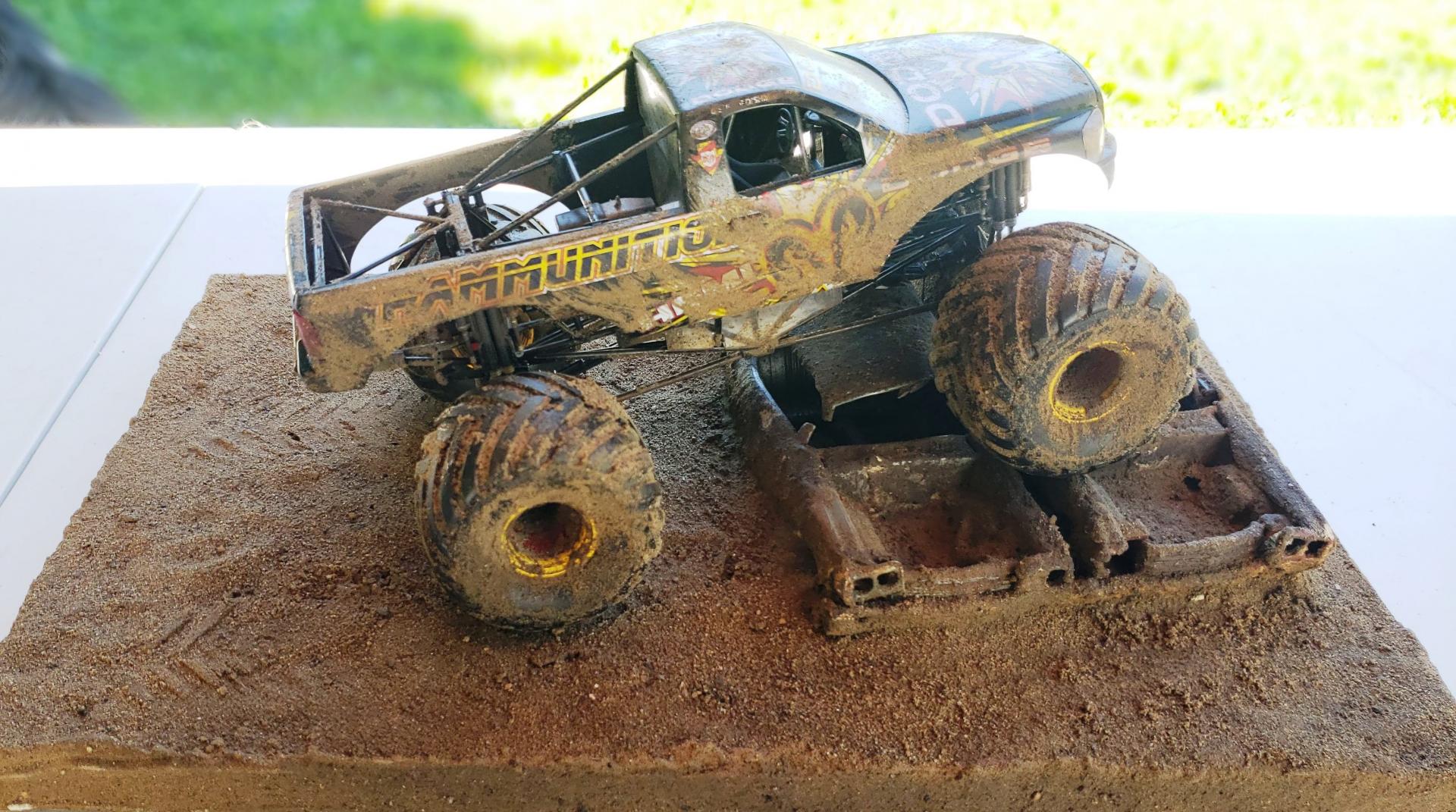 I finally finished my Linburg Rammunition Monster Truck diorama. The kit was pretty easy and went together easily. This was my first model with a roll cage and fitting it together concerned me a bit, but it just slide together and required no cursing at all. What made it best was the $9.99 price tag from Olies. The crushed cars are my first also and it was also my first time spattering mud/sand. Thanks for looking