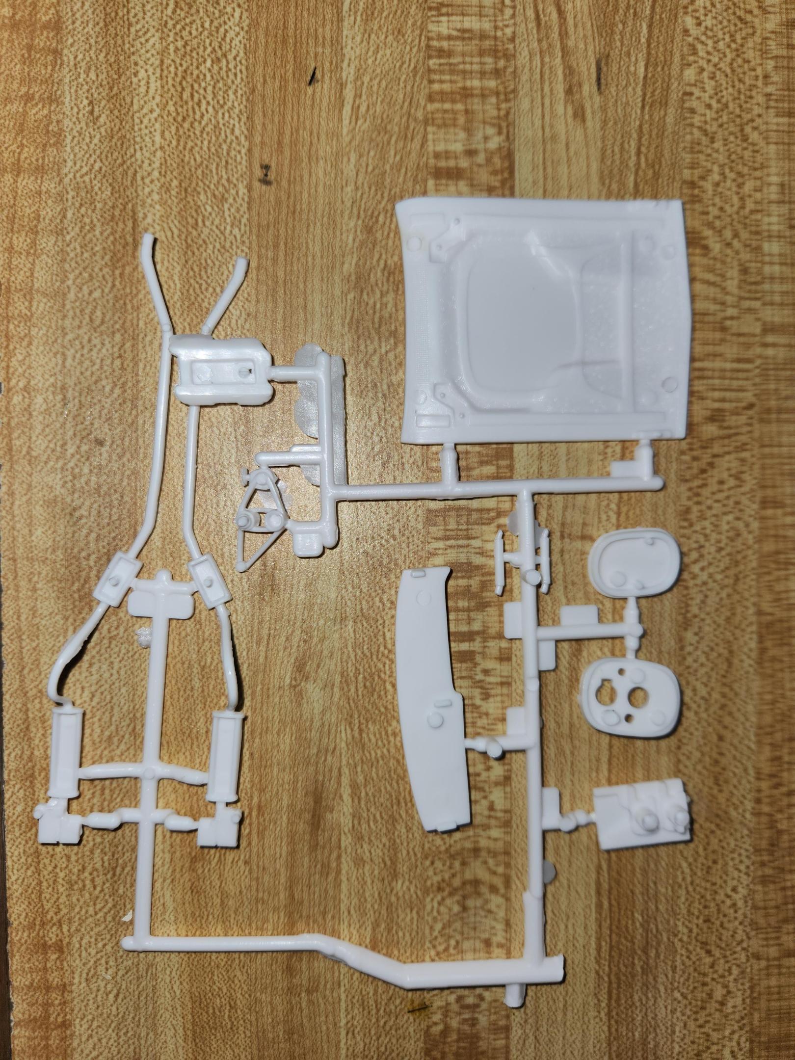 Today it begins! My autumn project of creating a 1974 Dodge Challenger. The base kit is by AMT. I also have the Hart's Parts conversion set to order as well as a 3D printed Chrysler LA from Resins by Reese. Resin wheel covers were provided by a fellow forum member. I will start out by doing a white glue build up Ala Scale Model Experiment. This is to check fitment and to modify parts to fit correctly before committing to solvent. I am planning on doing step by step updates as well as video updates on my YouTube Channel, "G&A Scale Model Apprentice." For an introduction to this project please visit this thread: I leave you with shots of the sprues and thanks everyone for their help so far!