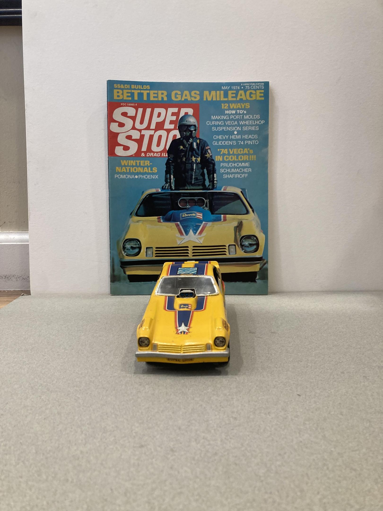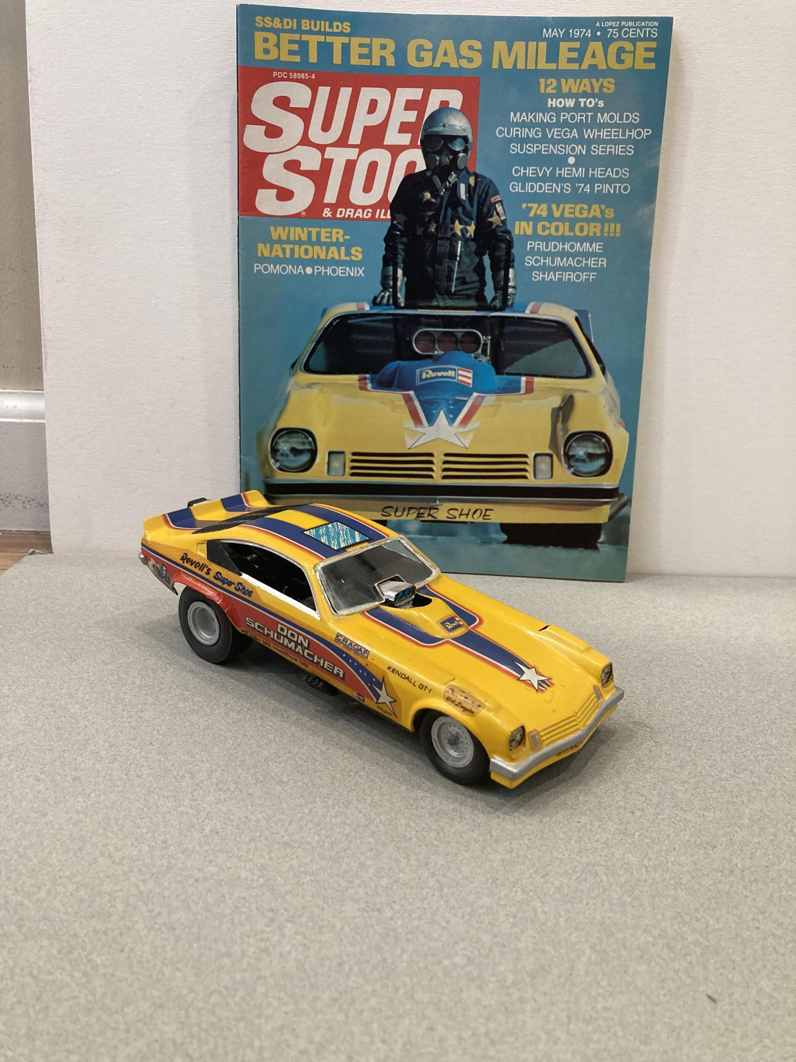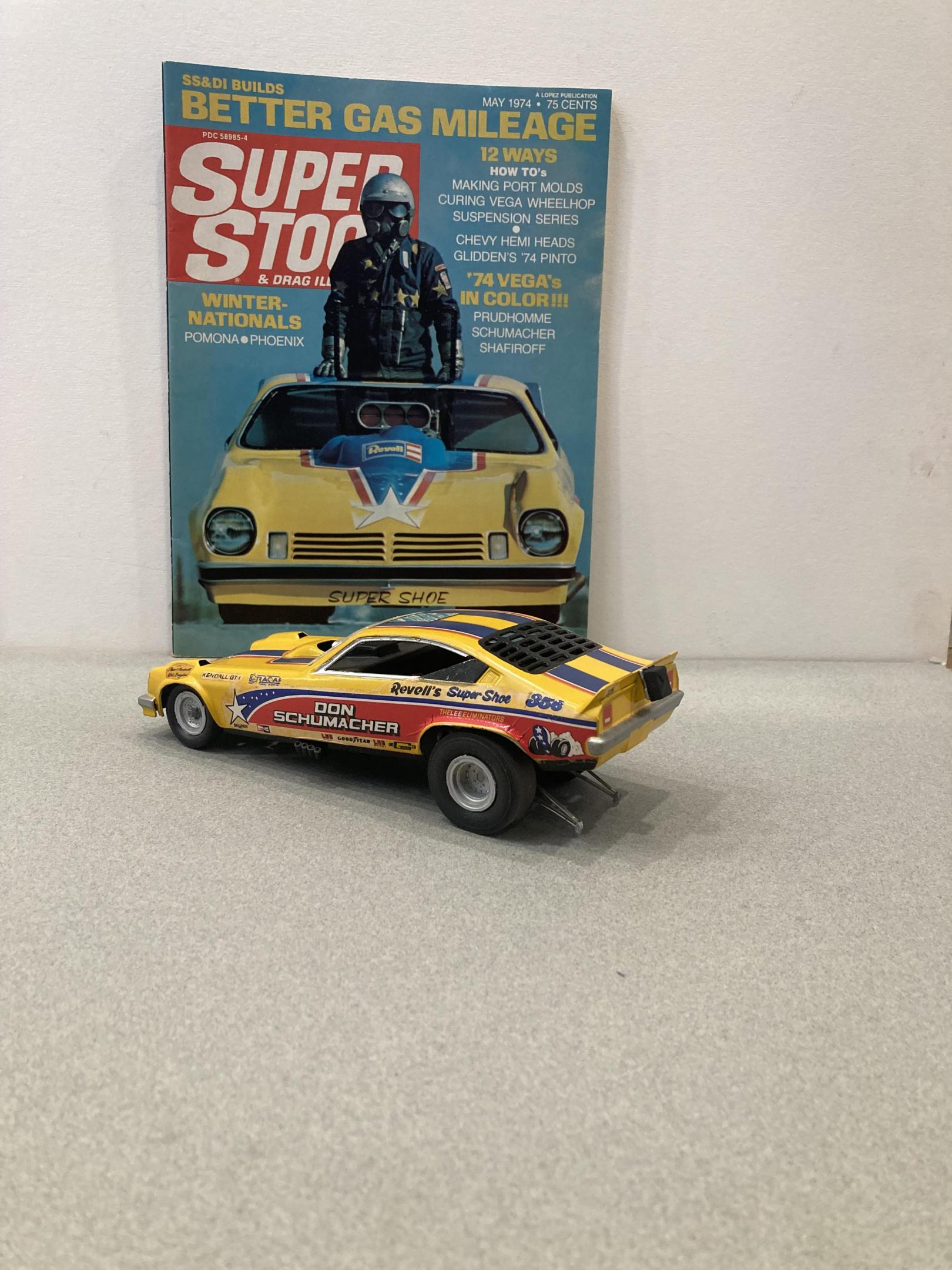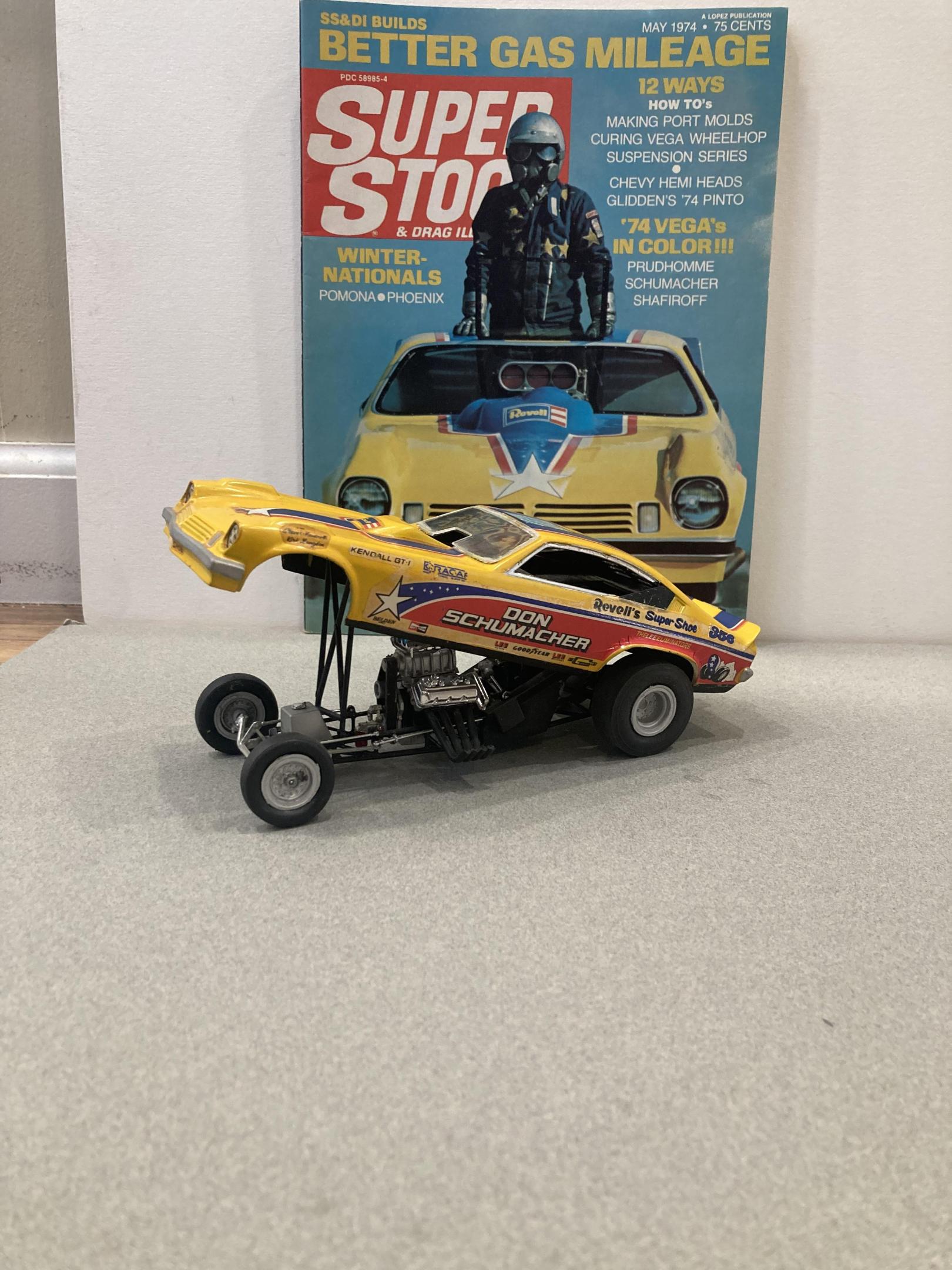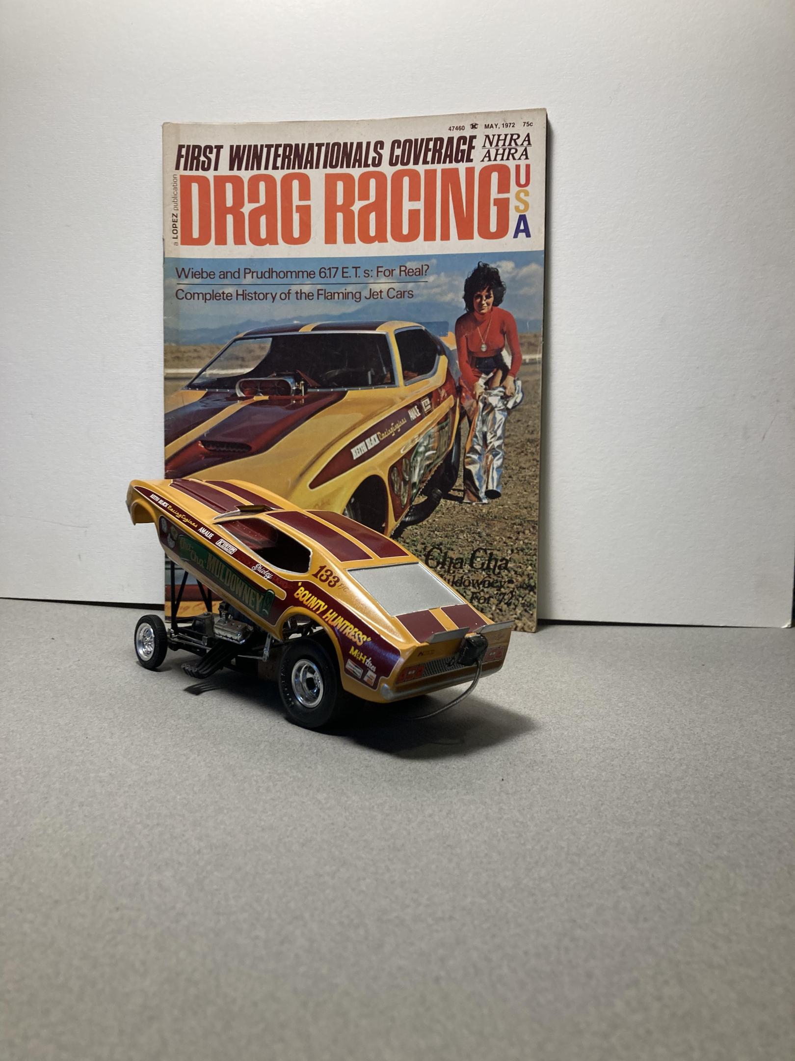 This was built from the old revell kit the early 90’s reissue. It’s box stock . The paint color is an old testors boyed’s color a pearl yellow ( or it might have been called pearl sunflower ) . These mid 70’s era revell funny car kits are some of the best ever made at least in my opinion. Until next time thanks for looking ?, Mike