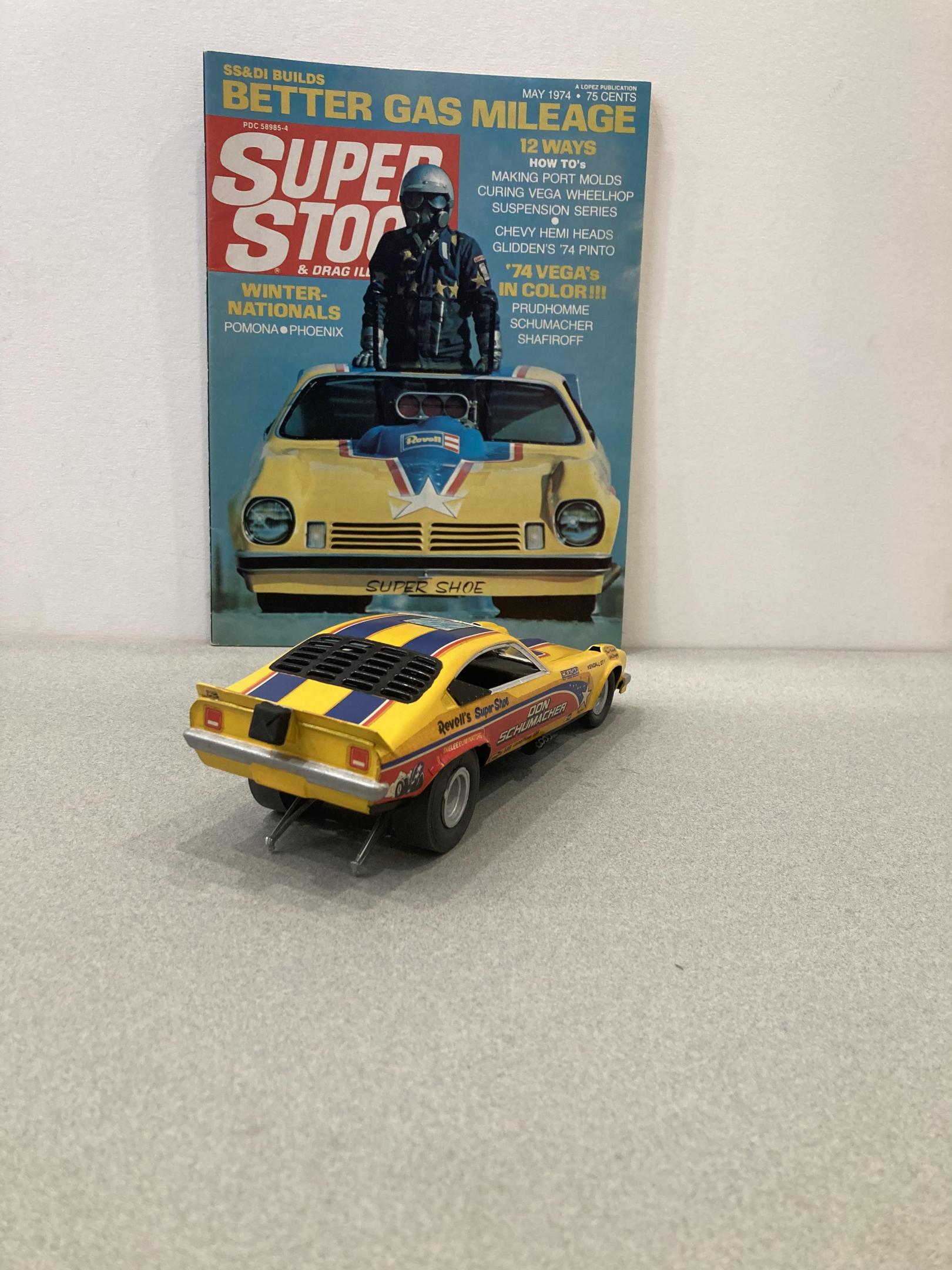 Does anyone make a rear spoiler extension for the 70s era Vega funny cars in 1/25? I know comp resins makes a 1/16.... I would even take good dimensions. I've tried to make my own but they stink...... Look too thick or too big. Trying to make a jungle jim and setzer vega and it seems they ran with em. Any help would be appreciated