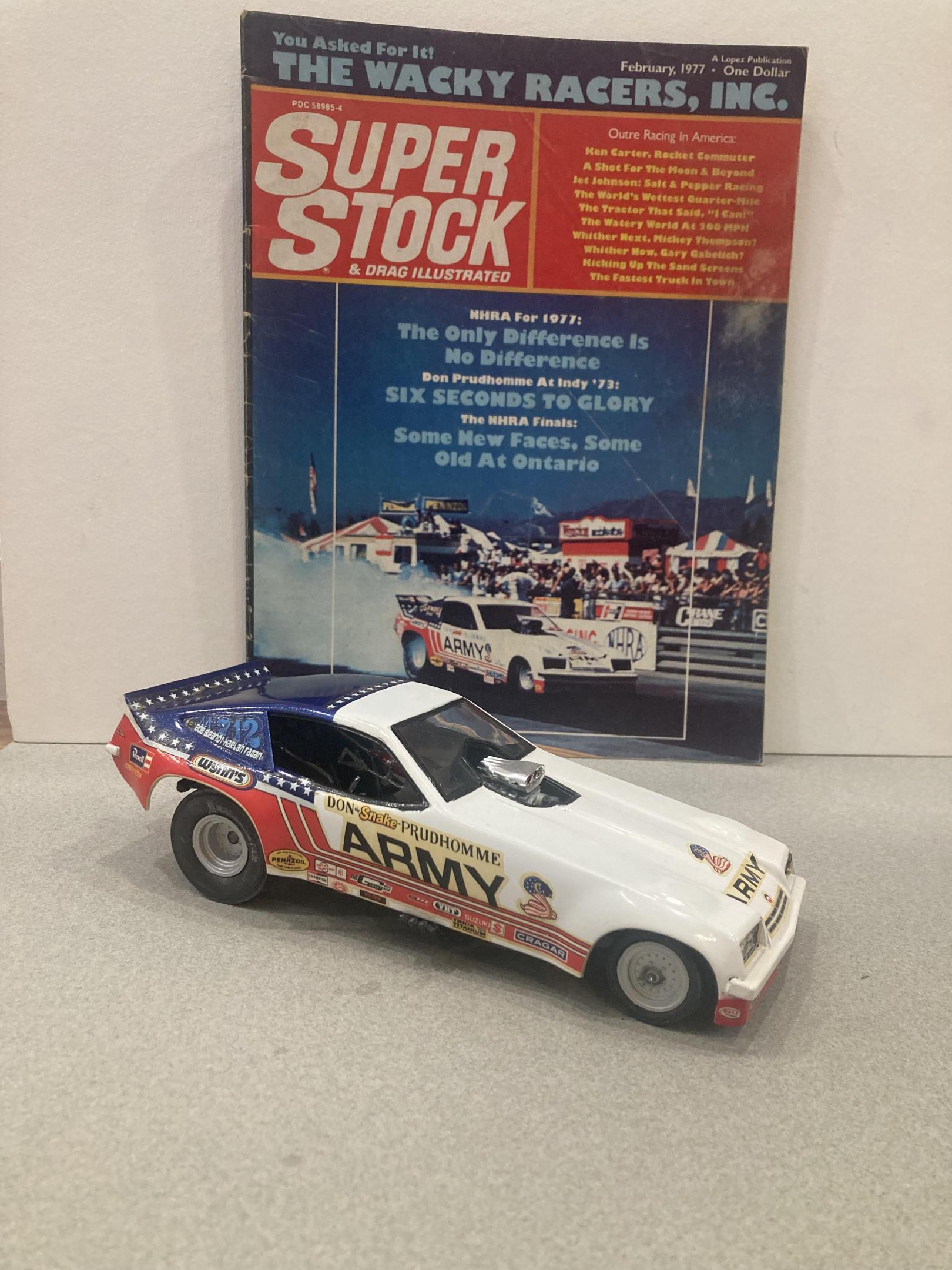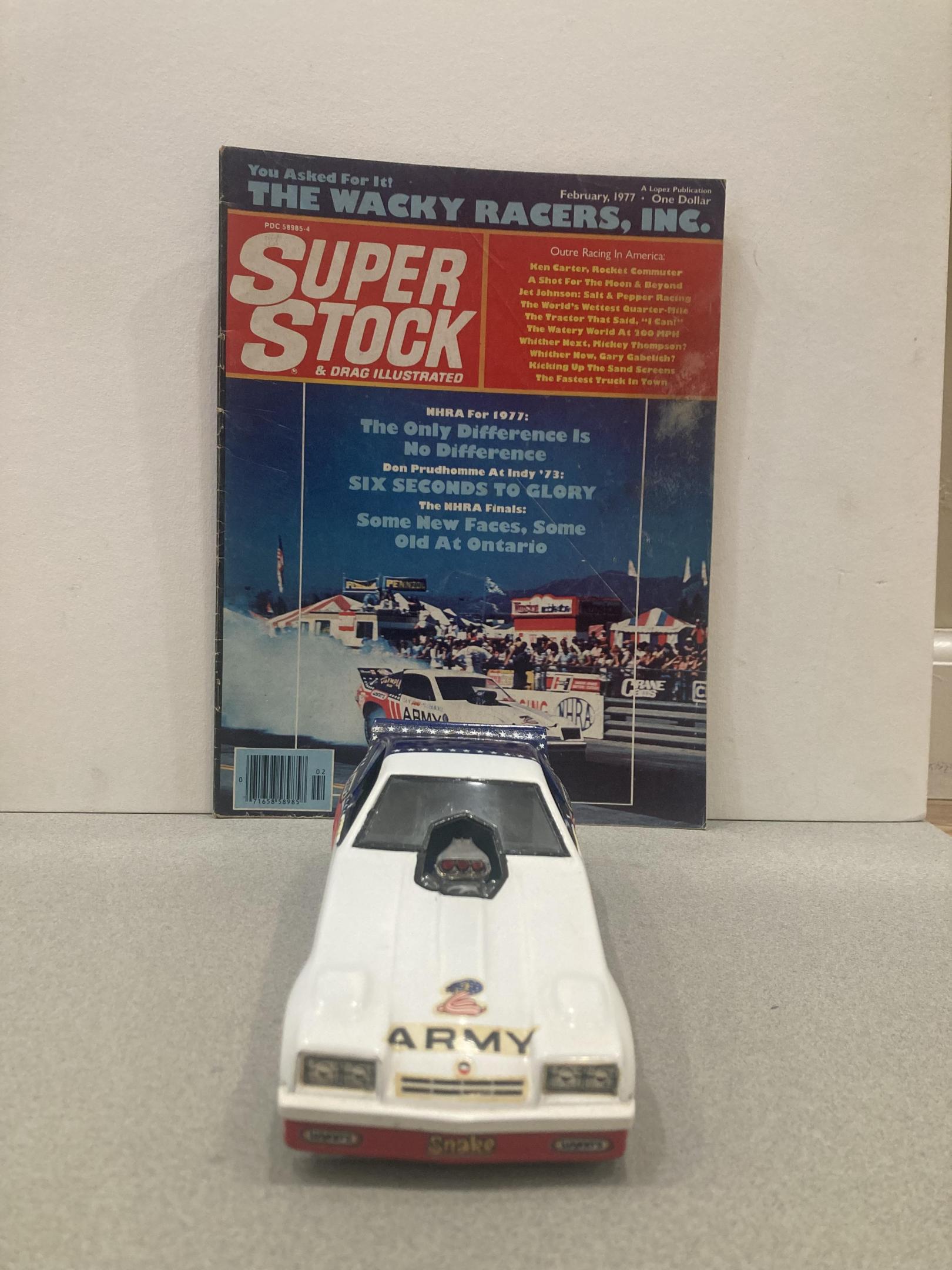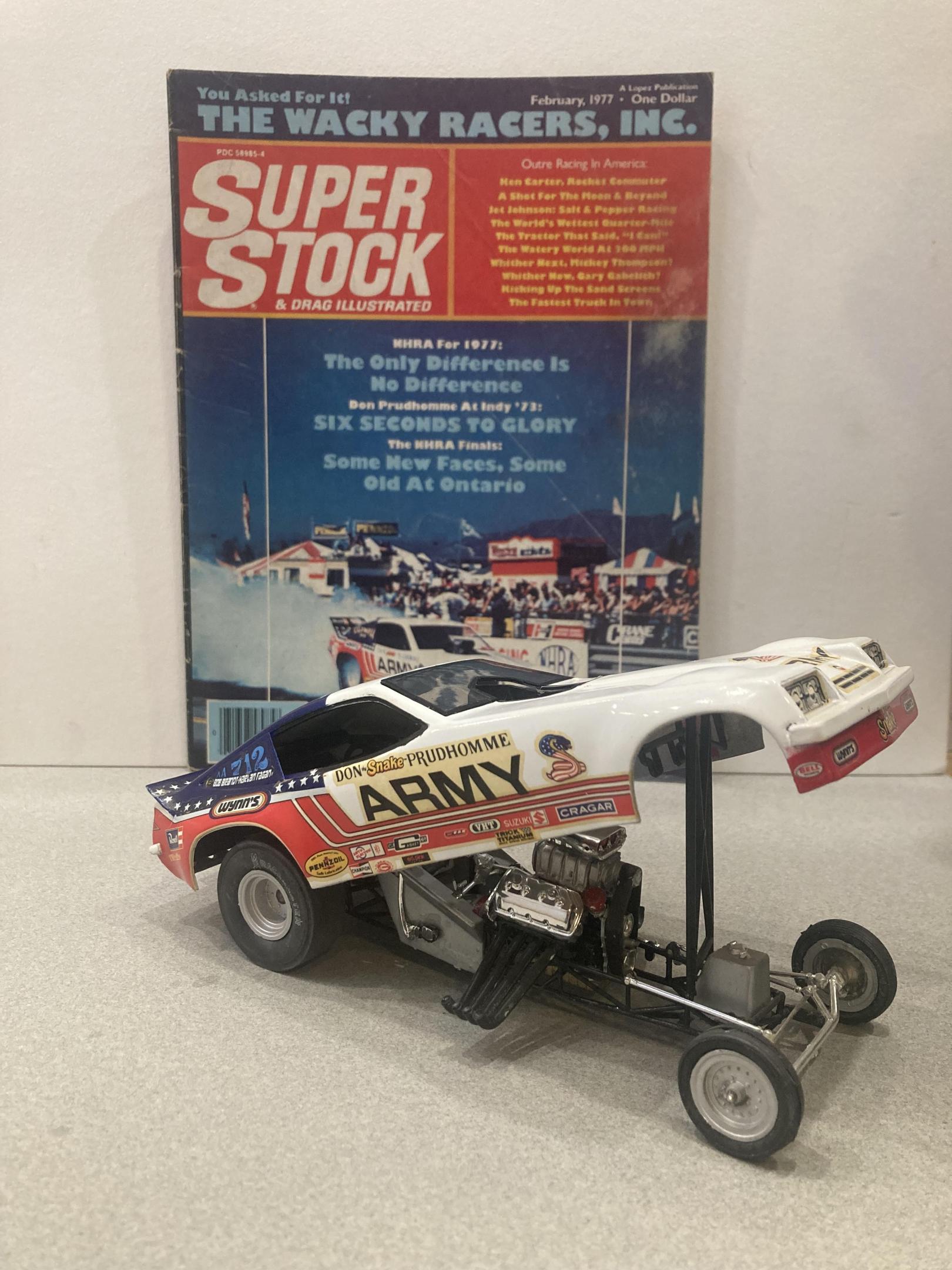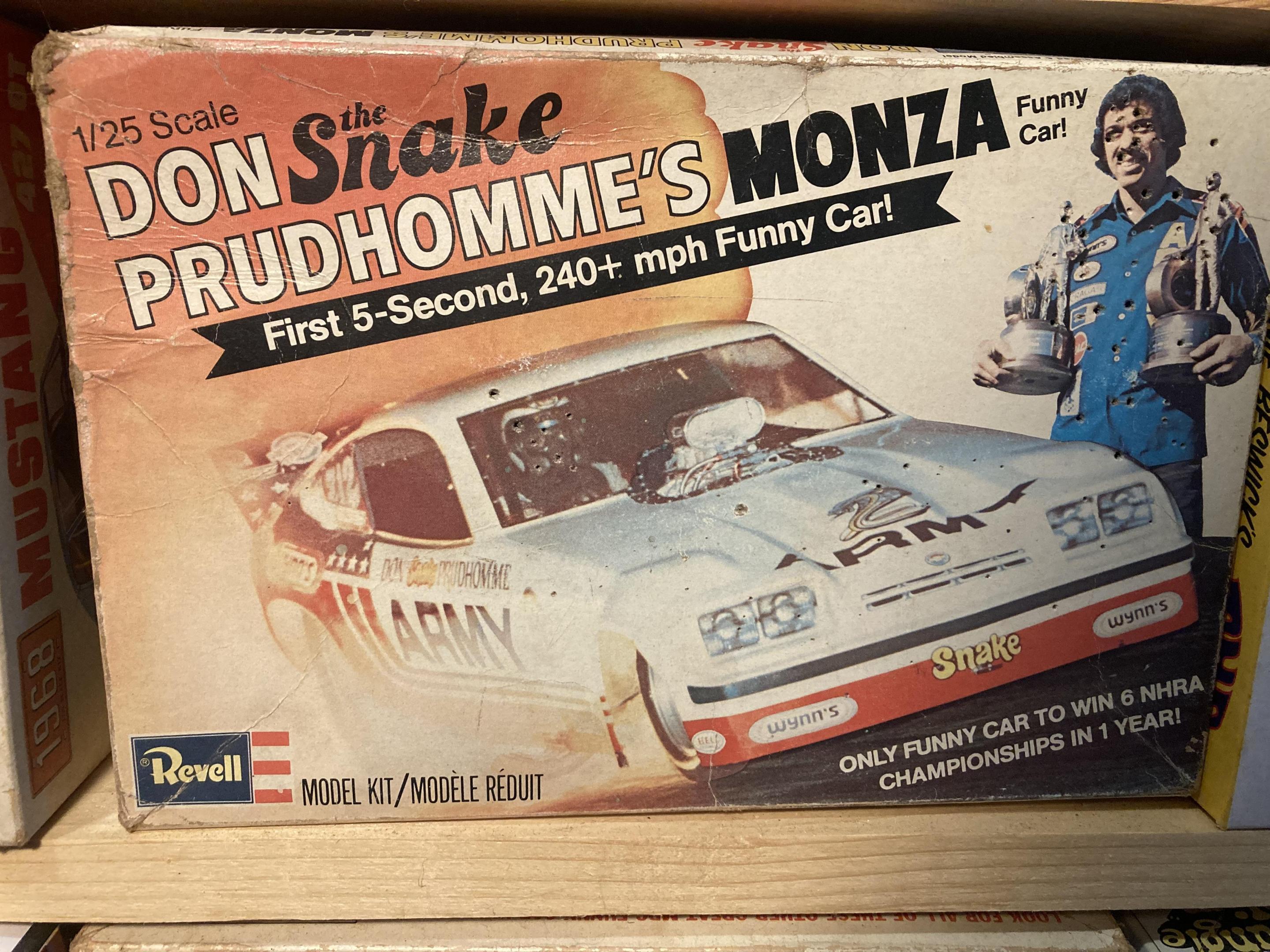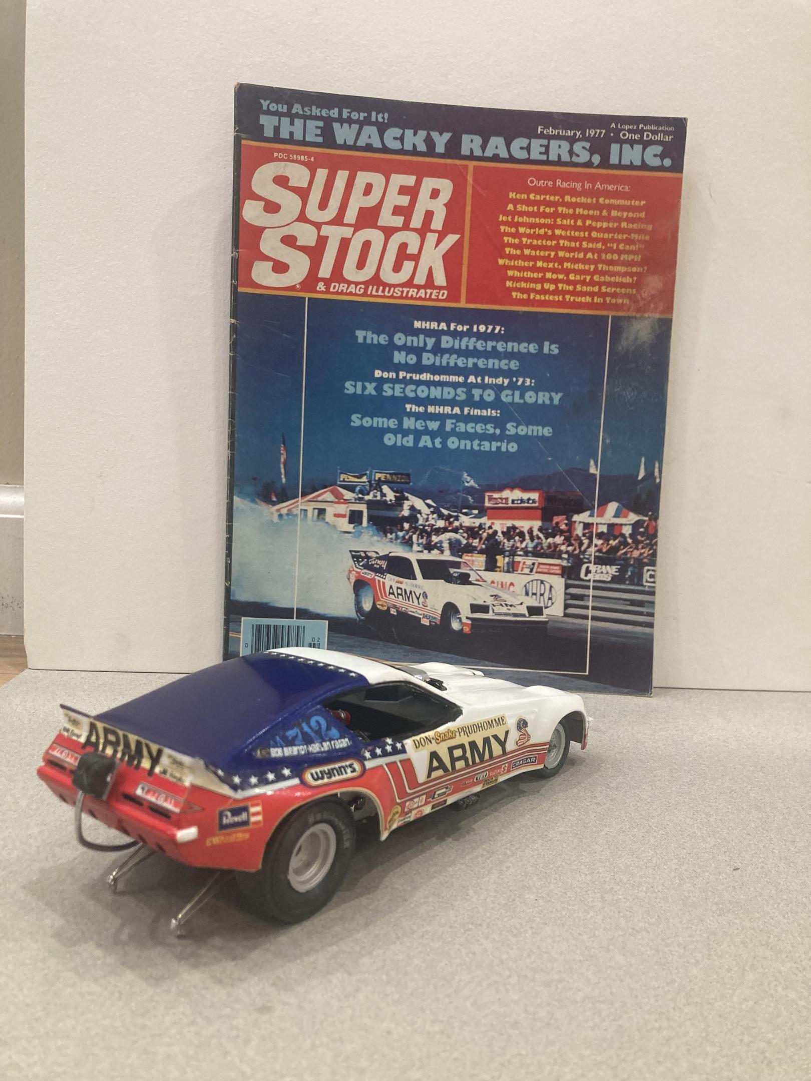 This is an out of the box build with the only upgrade being the slicks which are from the AMT parts pack . The cover shot was taken at the winter nationals which is perfect for this time of year. Those snow covered mountains make a great backdrop. As you will notice the box is in rough shape as I purchased it from a little local gift shop that was in our town in 1978 with saved up allowance as I was 8 years old . The spectacular box art with the fire burn out just sucked me right in I had to have it. At this age I was still building snap kits needless to say at the time this kit was way above my skill set . At the time my dad was way too busy with work to take on a project like this. So In the box it stayed getting moved around from here to there until I was 48 years old as the original decals had gotten a large crease in them, and were not salvageable . Thanks to eBay I was able to find a newer reissue with usable decals. So here it is. I hope you all like the little back story. These Revell funny car kits of the mid 70’s were some of the finest ever made. At least in my opinion. Until next time thanks for looking ?, Mike