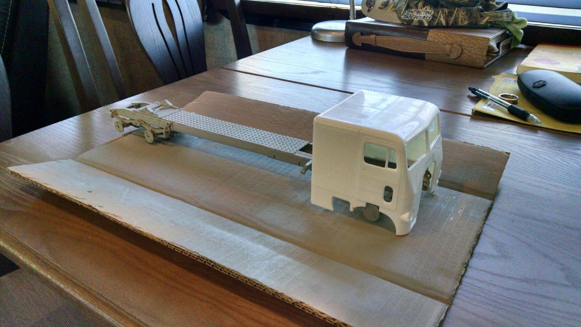 Back into this after over 30 years. My first project is two COE Freightliners that will pull 53' reefers. I stretched the first one a little - but the second is a lot longer as you can see the rough frame. Still needs sanding and a few glitch fixes. They will resemble owner operator rigs with individual personality hauling frozen food across this great land. I will send updated pics as it progresses. I love this stuff and there are some very talented builders here and on YouTube.