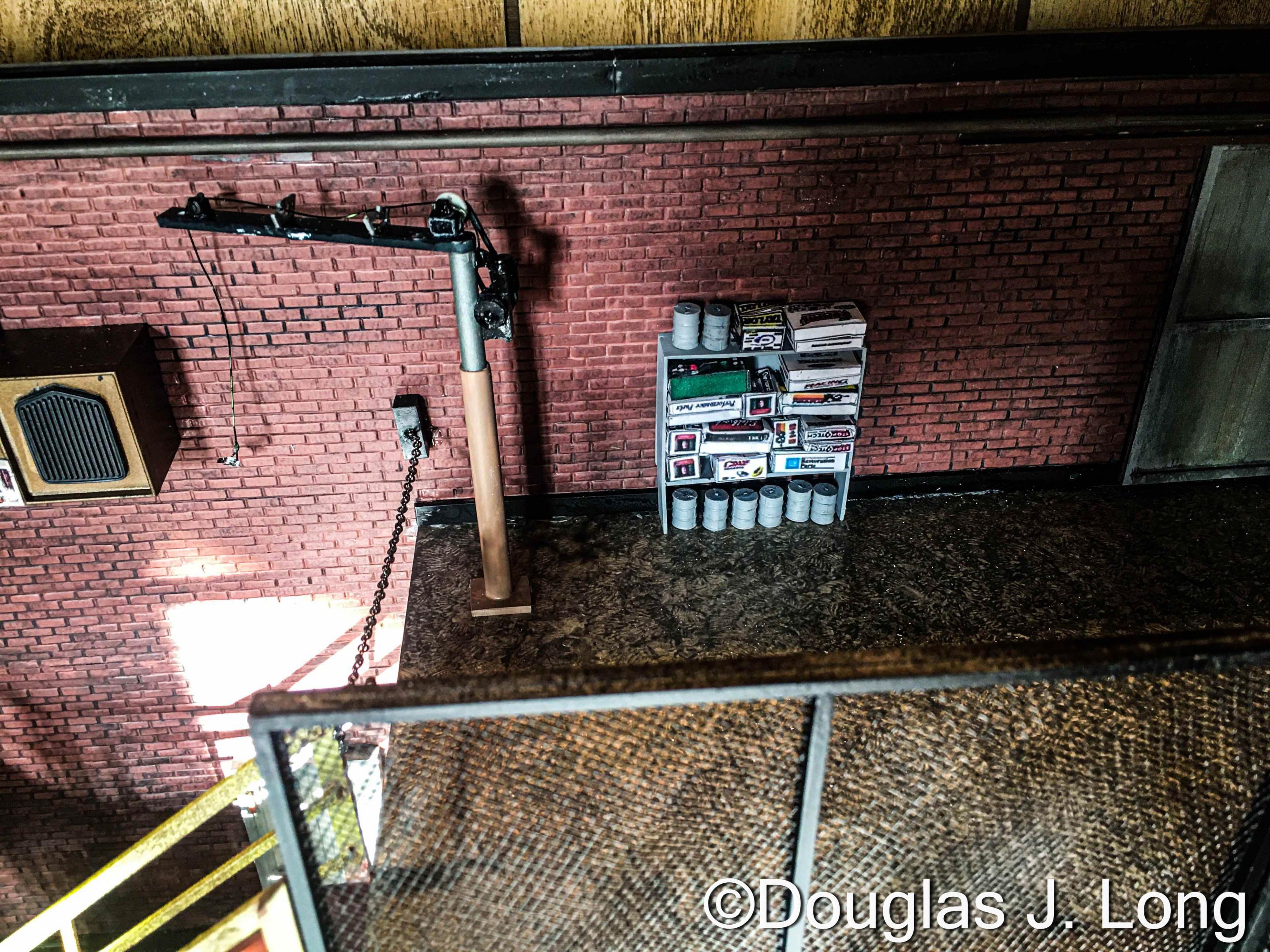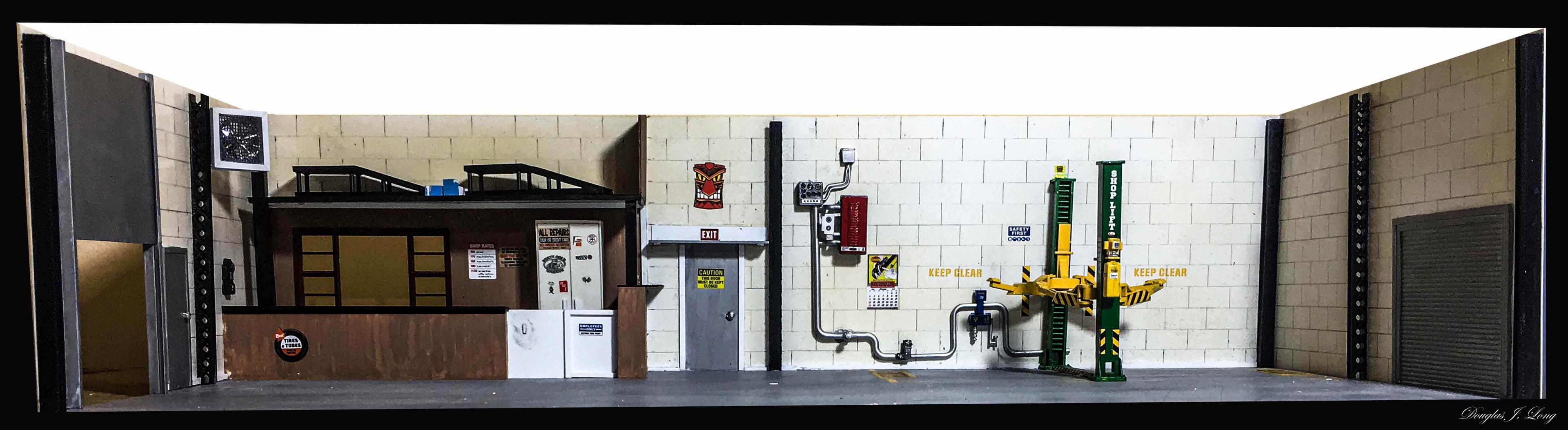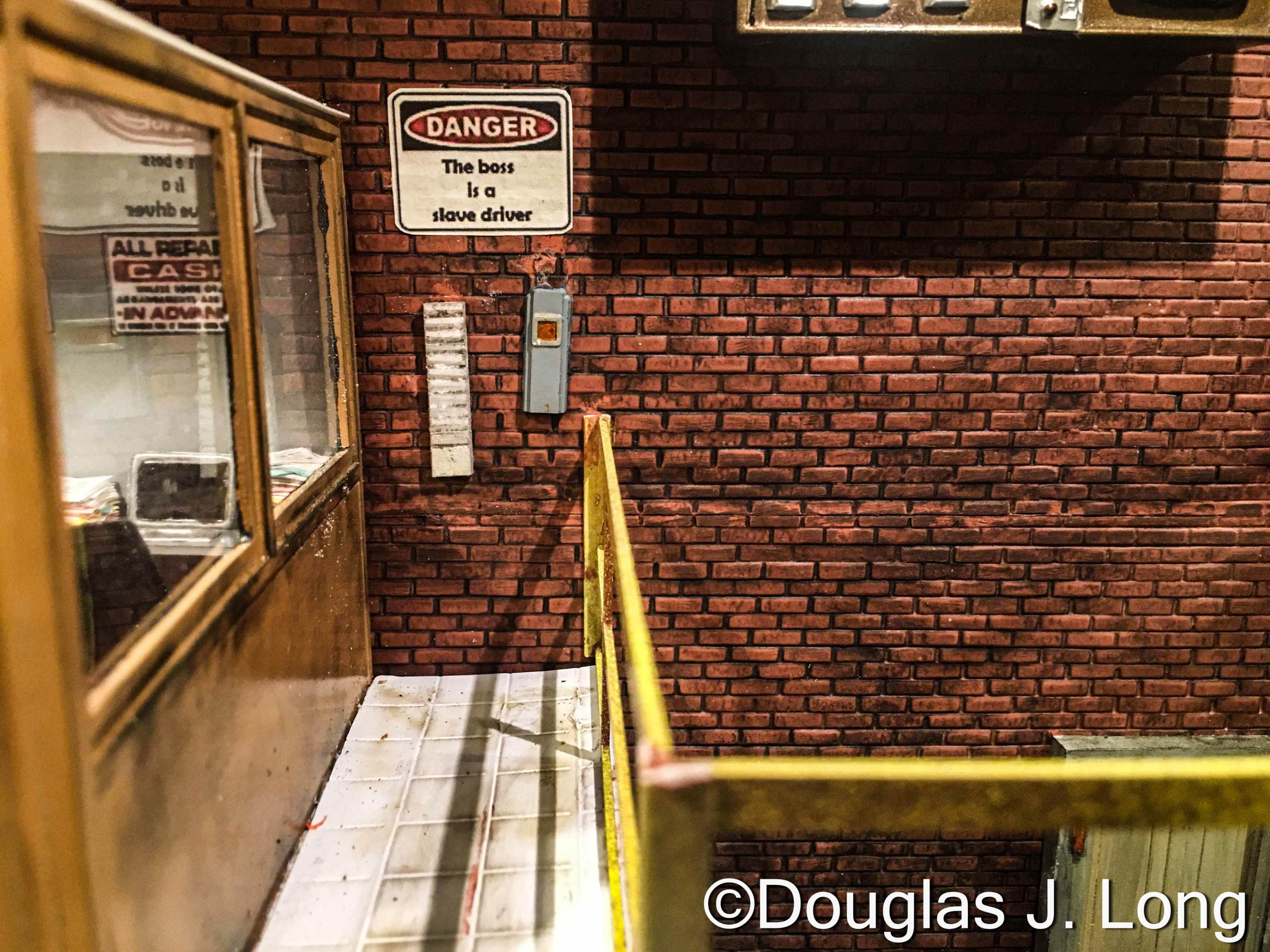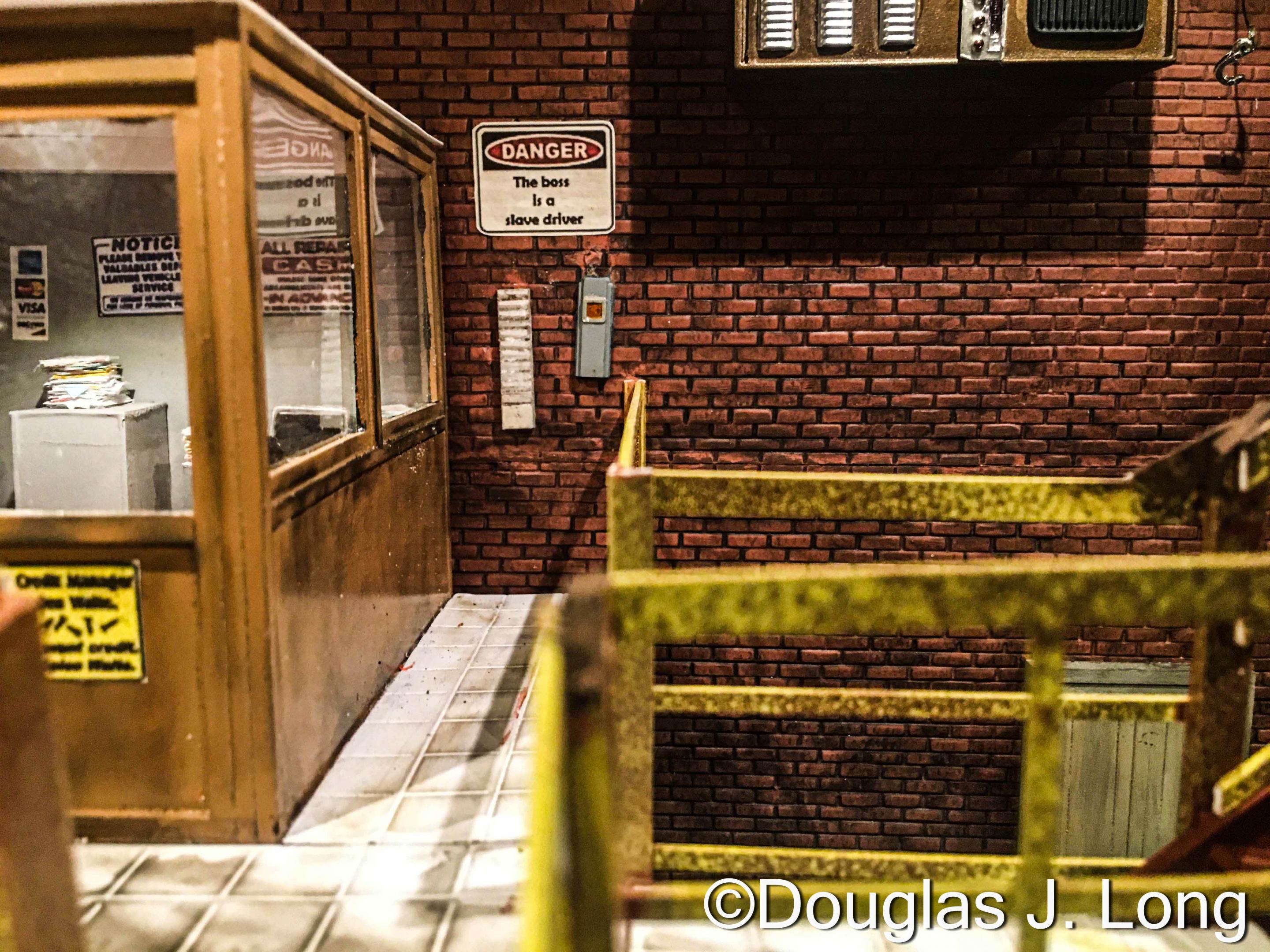 I am now calling this one 'completed', although I never can keep myself from adding things to my dioramas. I wanted this to have a dark moody atmosphere, yet still portray an enjoyable place to work. This necessitated the need for lighting, which I have found even adds more to the atmosphere. I only wish that I could add the sounds and smells. What follows are the 'tour' photos. This was an enjoyable project, and I thank all of those who followed during the construction in the WIP section. I now have another diorama where I can display models for photography, so this is not the last you will see of this diorama. I want to give a big thanks to dannyi, whose work in progress diorama from 2010-2013 was a big inspiration to me. I spent several years looking at that amazing work of art, and thinking that I should work up the courage to try my own theme based around his. I encourage everybody to slip over to the WIP-dioramas section and look up the diorama by Dannyi. A work of art that good should not be forgotten in the back pages of the section. I post this to encourage all who view it to start building one of your own. Don't wait 14 years as I have done. Get started. If I can do it, you can do it.