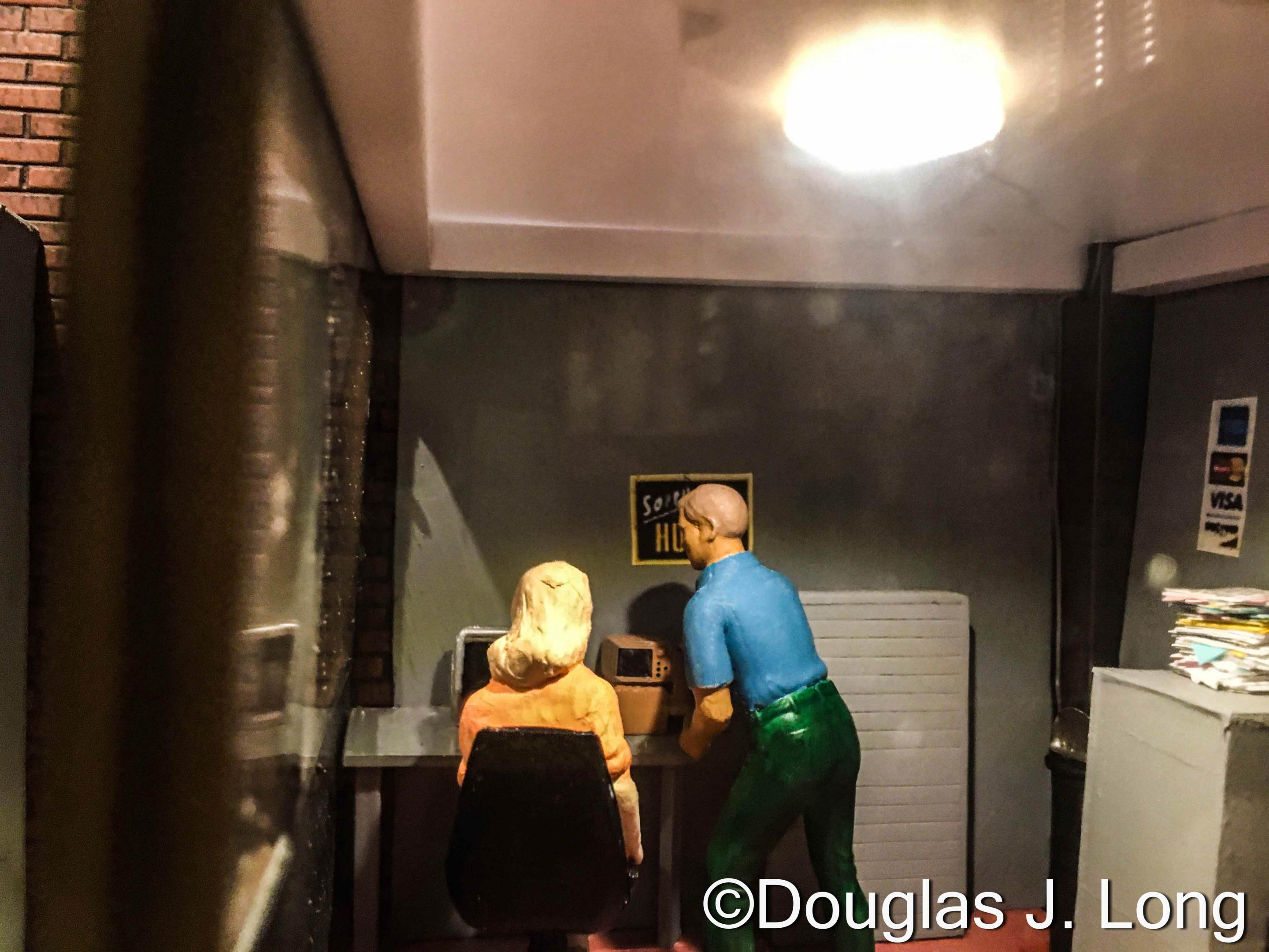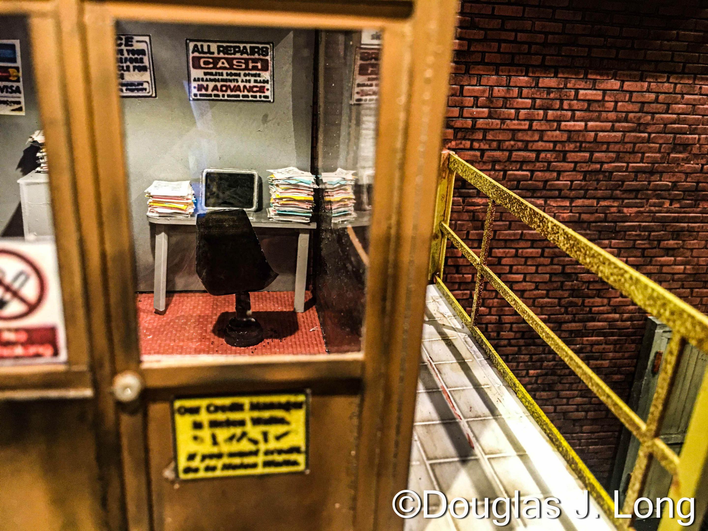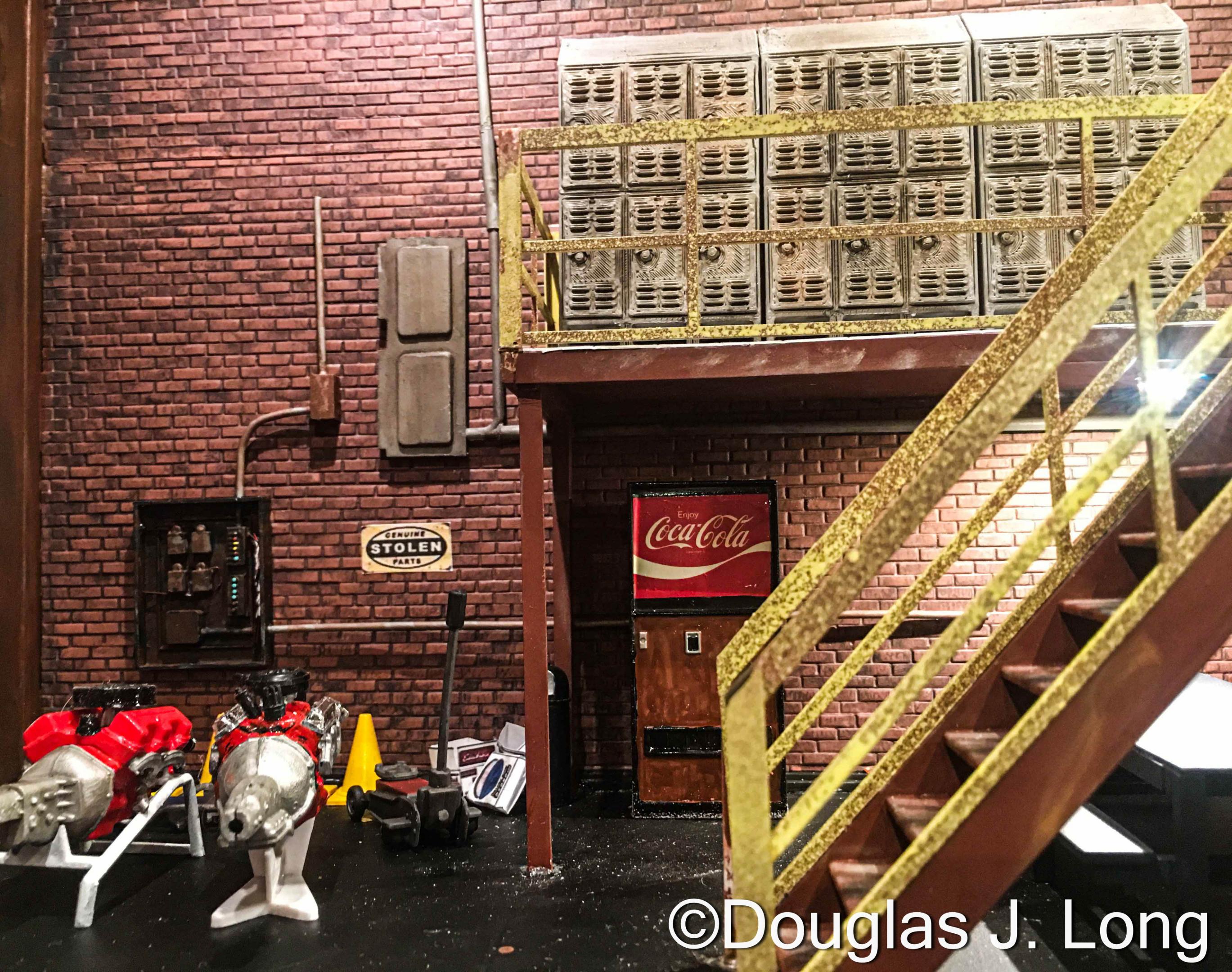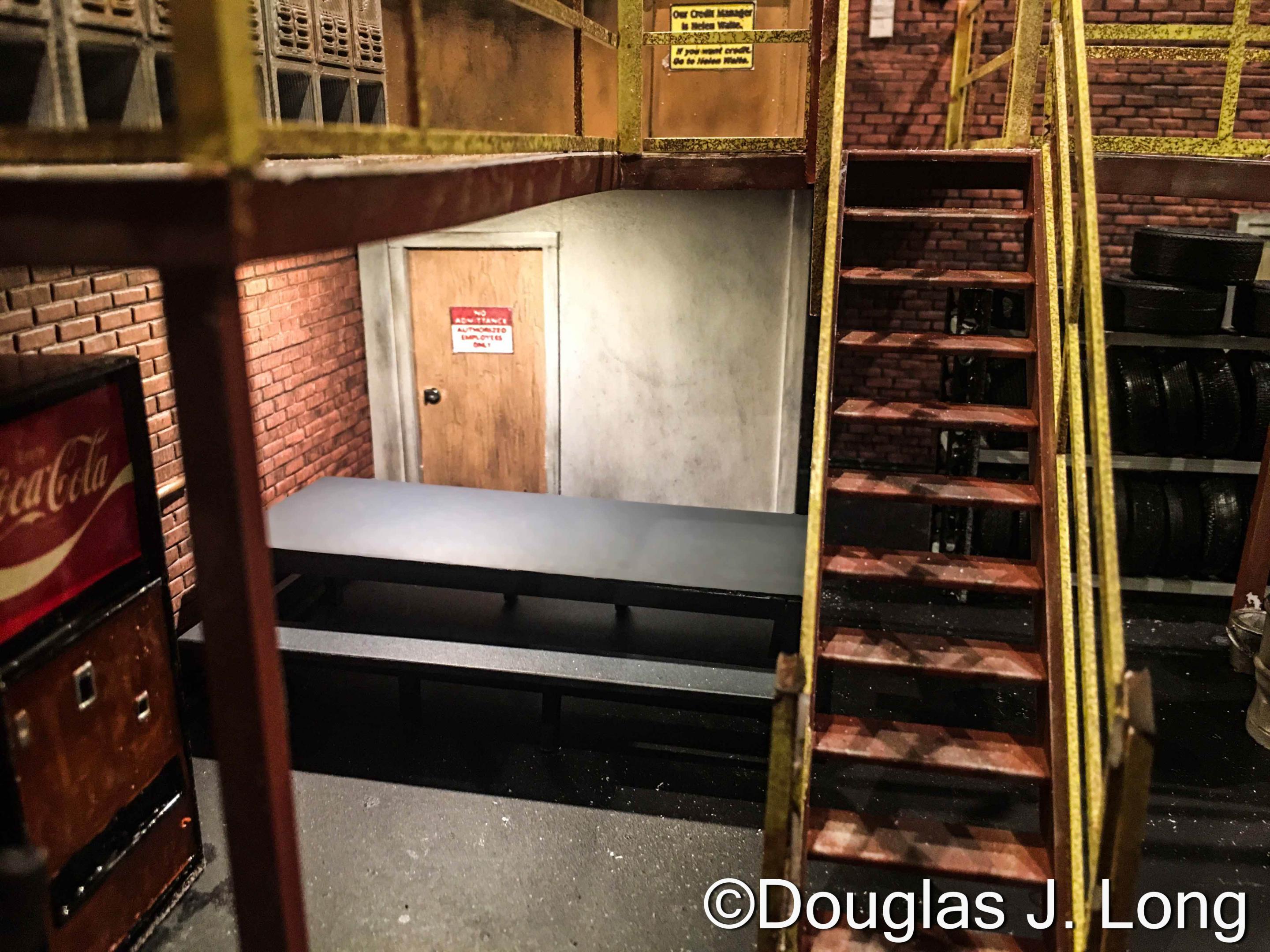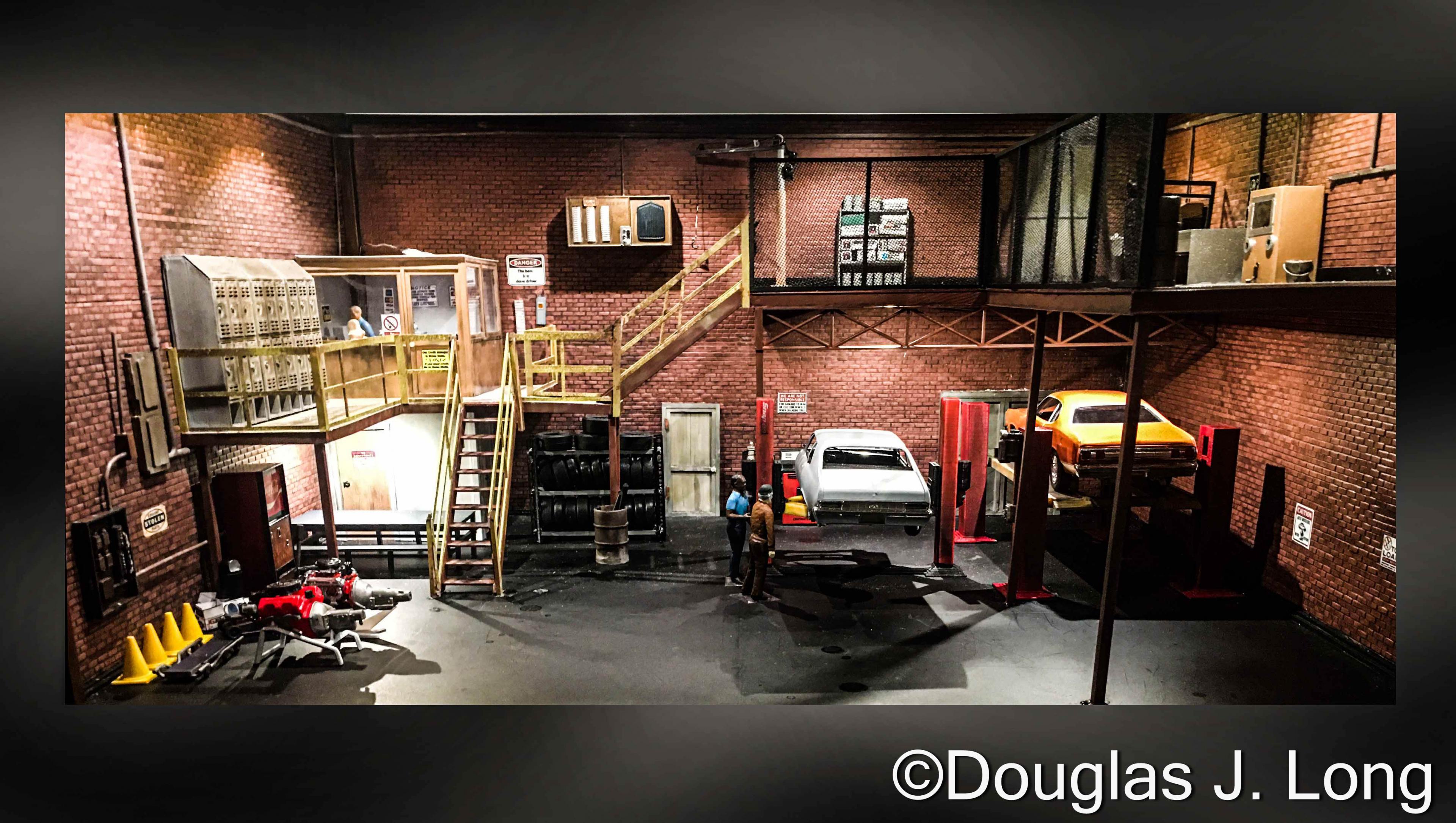 I am now calling this one 'completed', although I never can keep myself from adding things to my dioramas. I wanted this to have a dark moody atmosphere, yet still portray an enjoyable place to work. This necessitated the need for lighting, which I have found even adds more to the atmosphere. I only wish that I could add the sounds and smells. What follows are the 'tour' photos. This was an enjoyable project, and I thank all of those who followed during the construction in the WIP section. I now have another diorama where I can display models for photography, so this is not the last you will see of this diorama. I want to give a big thanks to dannyi, whose work in progress diorama from 2010-2013 was a big inspiration to me. I spent several years looking at that amazing work of art, and thinking that I should work up the courage to try my own theme based around his. I encourage everybody to slip over to the WIP-dioramas section and look up the diorama by Dannyi. A work of art that good should not be forgotten in the back pages of the section. I post this to encourage all who view it to start building one of your own. Don't wait 14 years as I have done. Get started. If I can do it, you can do it.