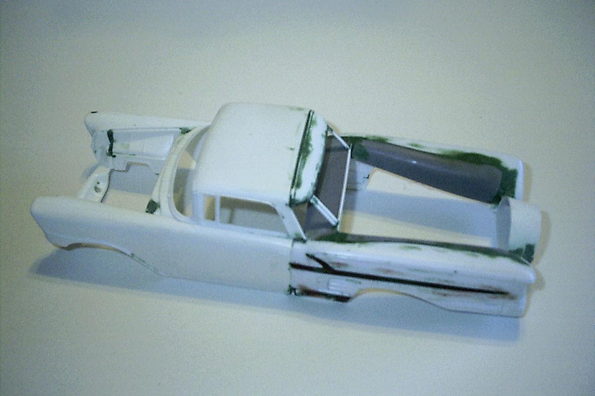 I kitbashed this from 2 Revell kits: a 1954 Chevy Nomad and a 1958 Impala. I'll add more snaps as the work progresses.