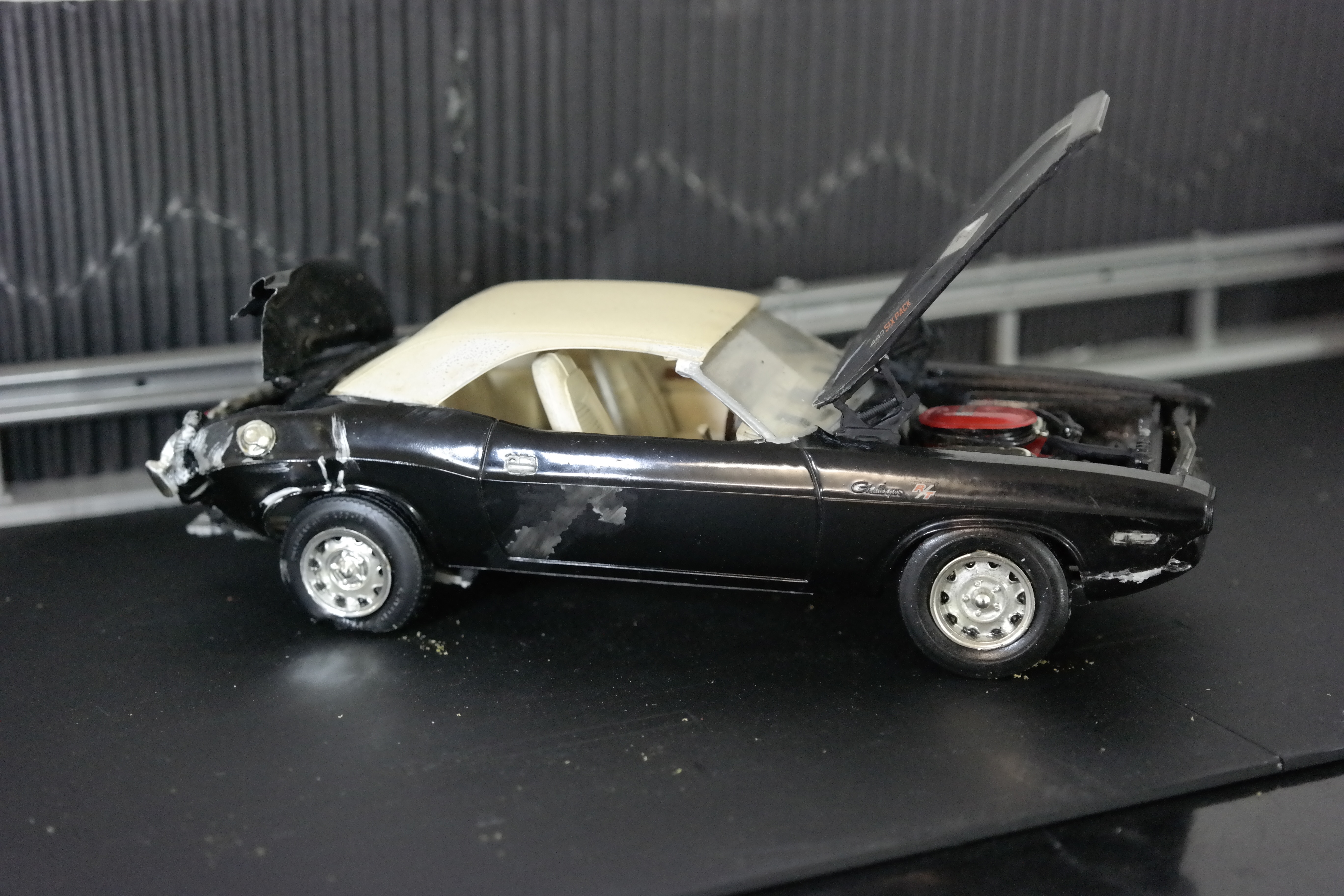 I've built literally hundreds of model cars over the decades. Some builds didn't turn out too well so... well, they crashed. My late, younger brother was also an avid builder and collector and it got to be a competition to see who could build the most realistic-looking wrecks. They didn't hold together too well after wrecked, so most eventually got thrown away. Here's a few later attempts that I got photos of: