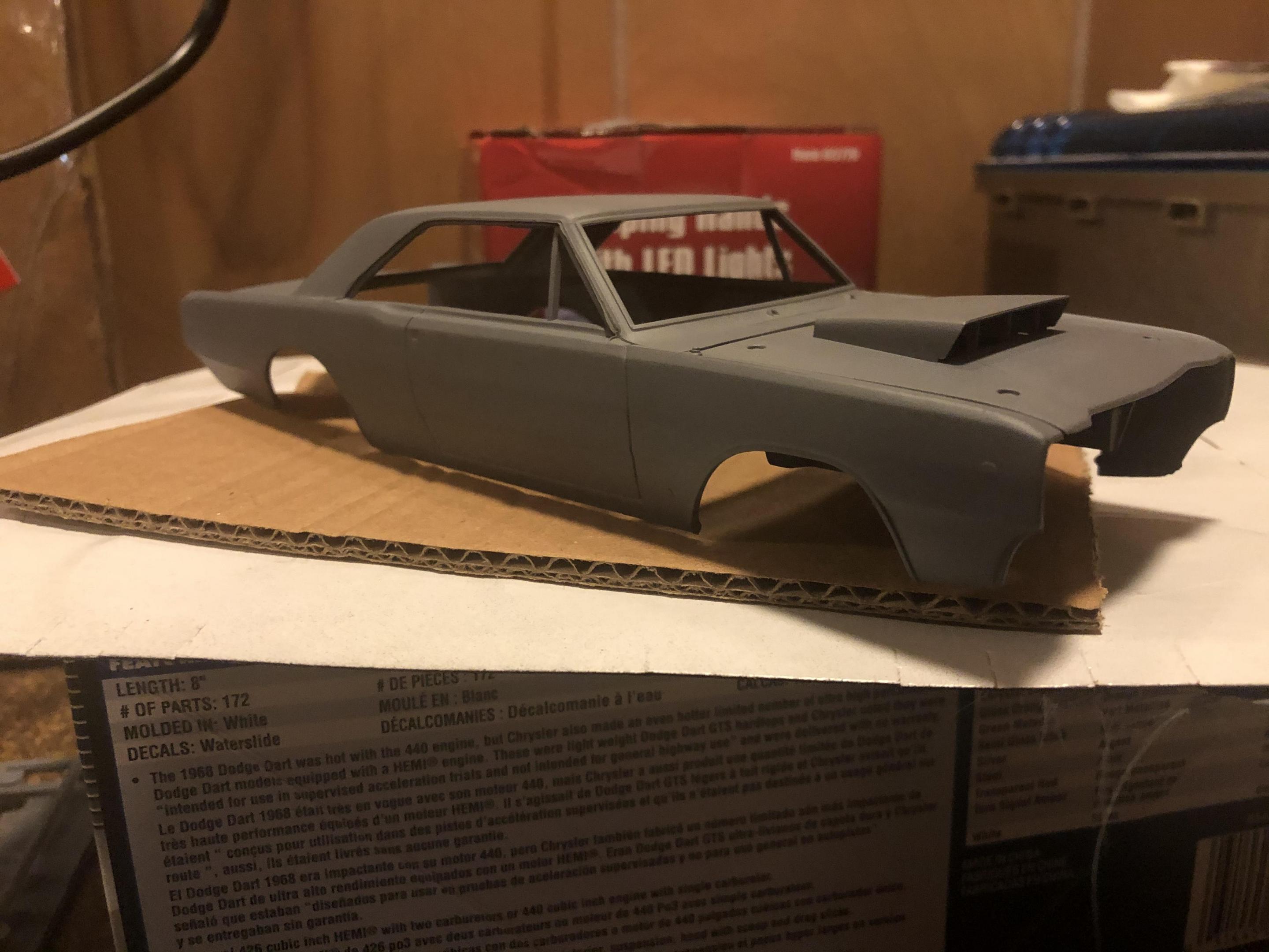 So I mentioned in my last thread that I just finished up my first kit in about 8 years - Revell’s ‘57 Ford Wagon Gasser. Since that kit was so much fun I’m already jumping into a new one - Revell’s ‘68 Dodge Dart Hemi. This kit is in the same lineup as the gasser ‘57 so it should be a great build. I’ve done some preliminary work including cutting the rear fenderwells. Hoping the weather changes soon so I can get this one in primer. I will post updates as they happen!
