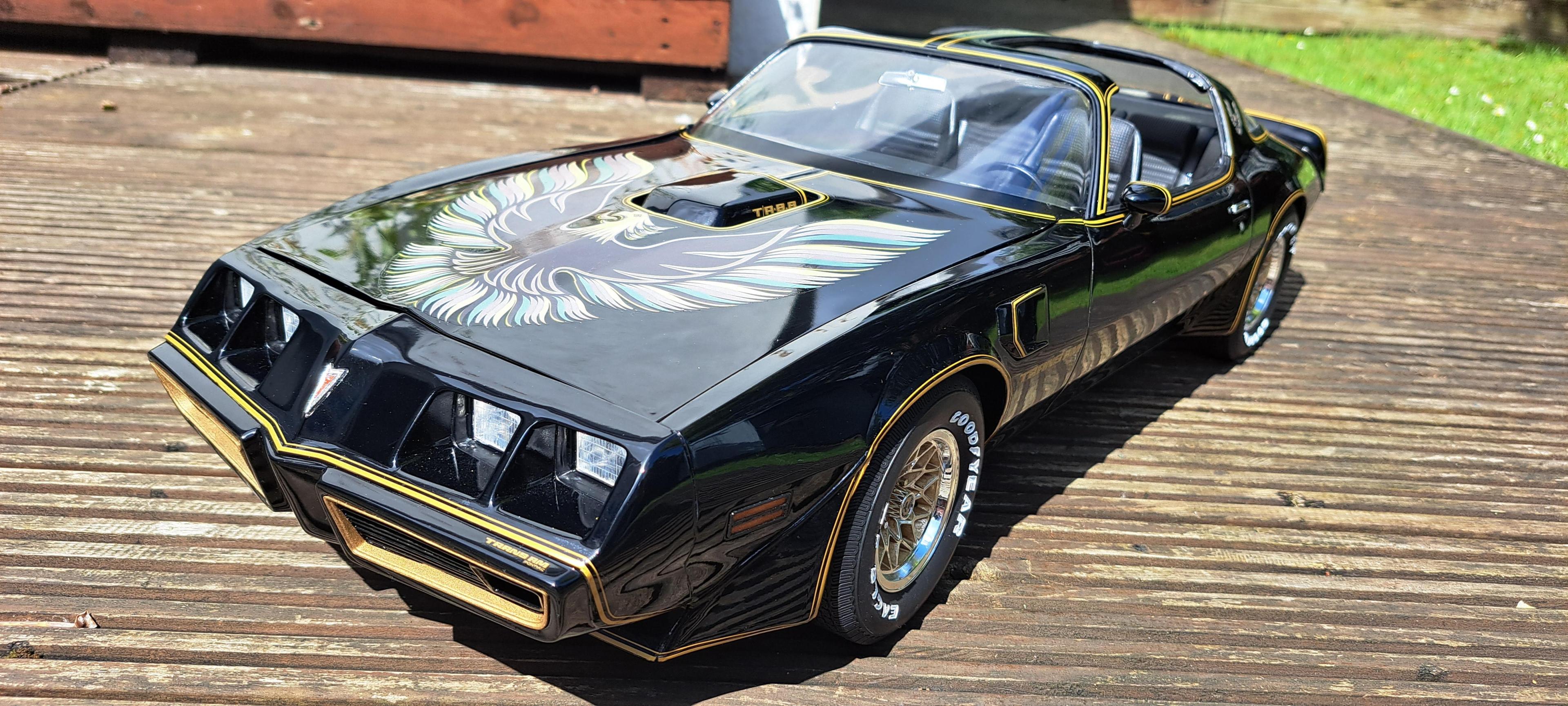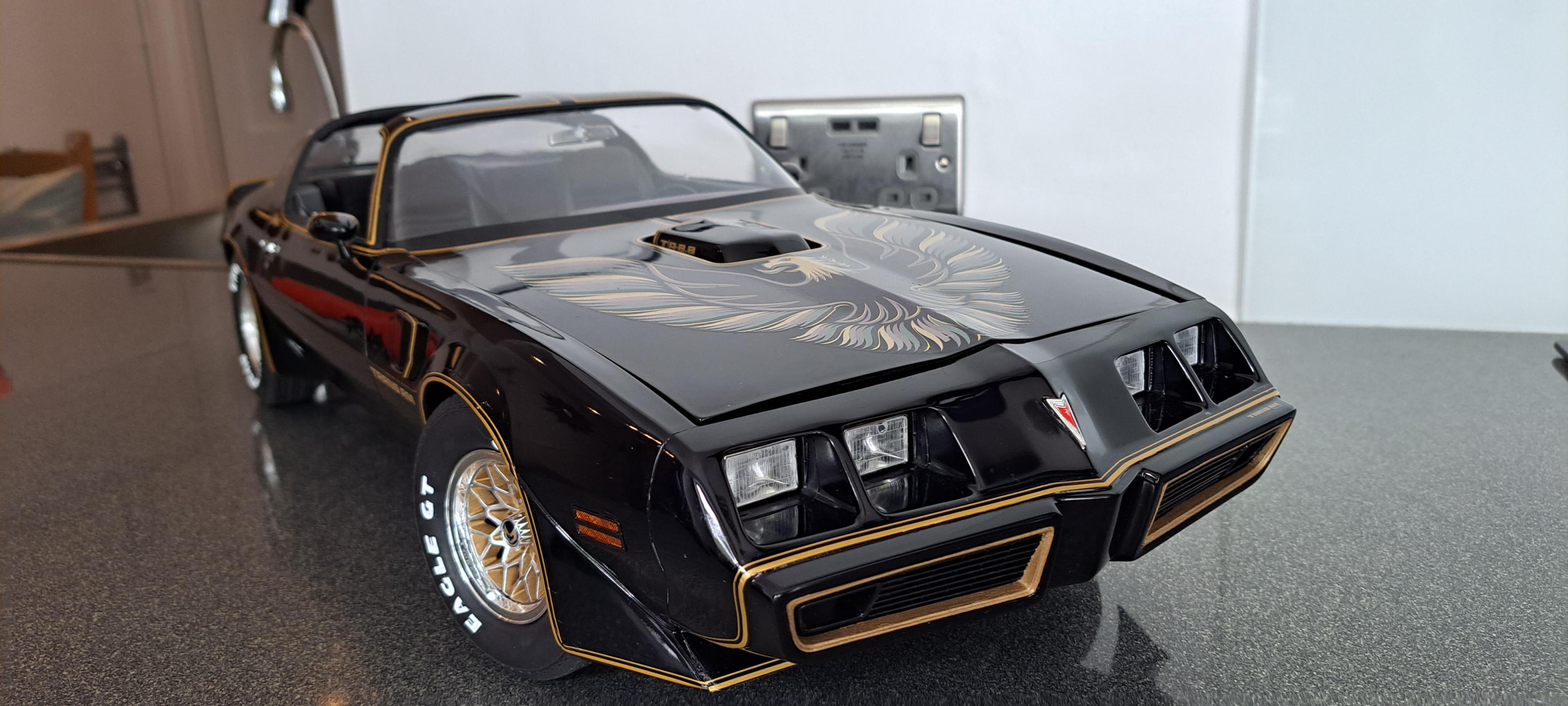 Hi All, Just finished the mighty big scale 79 Trans Am from Revell, always wanted this as a child in 1979 but wasn't allowed it was too young, now 43yrs later l treated myself!. Generally a good kit given its 43yr old design , decals are very crisp and very well detailed, the hood eagle is the wrong colour as I'm sure we've all noticed but l believe there is aftermarket version available in the correct gold colour. They are a challenge to apply and using plenty of micoset soft solution helped, l've also used Tamiya gloss clear gently brushed over the pinstripes and hood eagle to seal them in. Tamiya TS14 gloss black spray used for the bodyshell, 3 coats then wet sanded then 3 more coats applied. Used spacers to bring out the rear wheels as to much inset, bonnet was traditionally warped but managed to get it looking a bit better using hot water technique. Used plastic card to help the dashboard and interior tub sit more securely. Had to thin down the rear spoiler ends both sides as they do stick out to far. Overall l love it, such a huge presence and looks so realistic. If l can get the correct hood and rear pillar decals then ill need to remove the current ones, whats the best method to do this? The 1/16 General Lee was built last year, MPC Re-release, this I had back in 1981 as a 11yrs old kid but it didn't last! Modified the front wheel arch openings to resemble the factory versions, added the door mirror, wipers & used AMT 1/16 tyres from an old 57 Chevy kit. Roof flag is aftermarket I bought years ago & is a bigger size. Great kit despite its lack of details, I would love it if Revell would make 1/16 scale version as the detail would be great. Paint is car spray, flattened & polished.