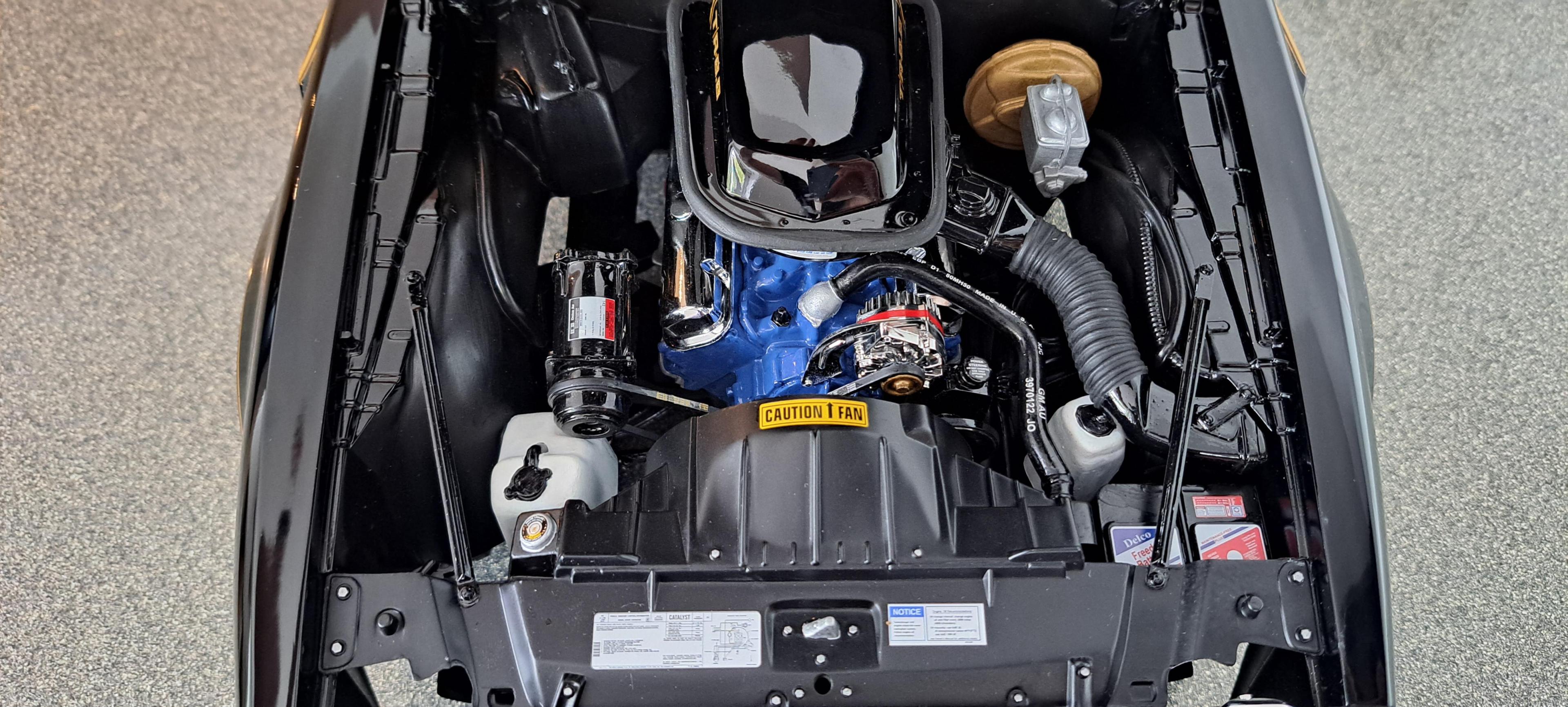Revell 1\8 79 Trans Am , used Tamiya TS14 Gloss back, 3 coats, wet sanded & 3 more coats, gently went over the decals with Tamiya gloss clear with a fine brush., whole car then gently polished.