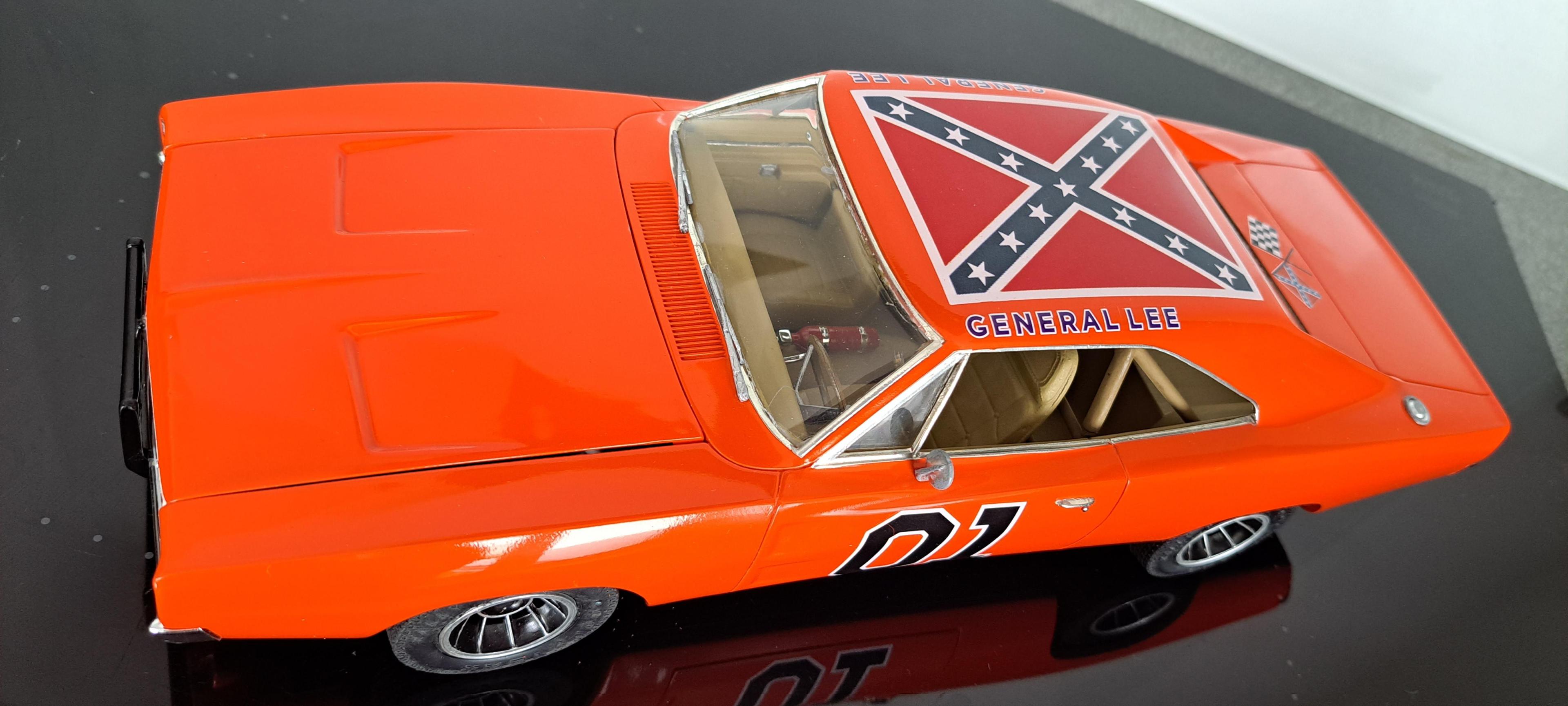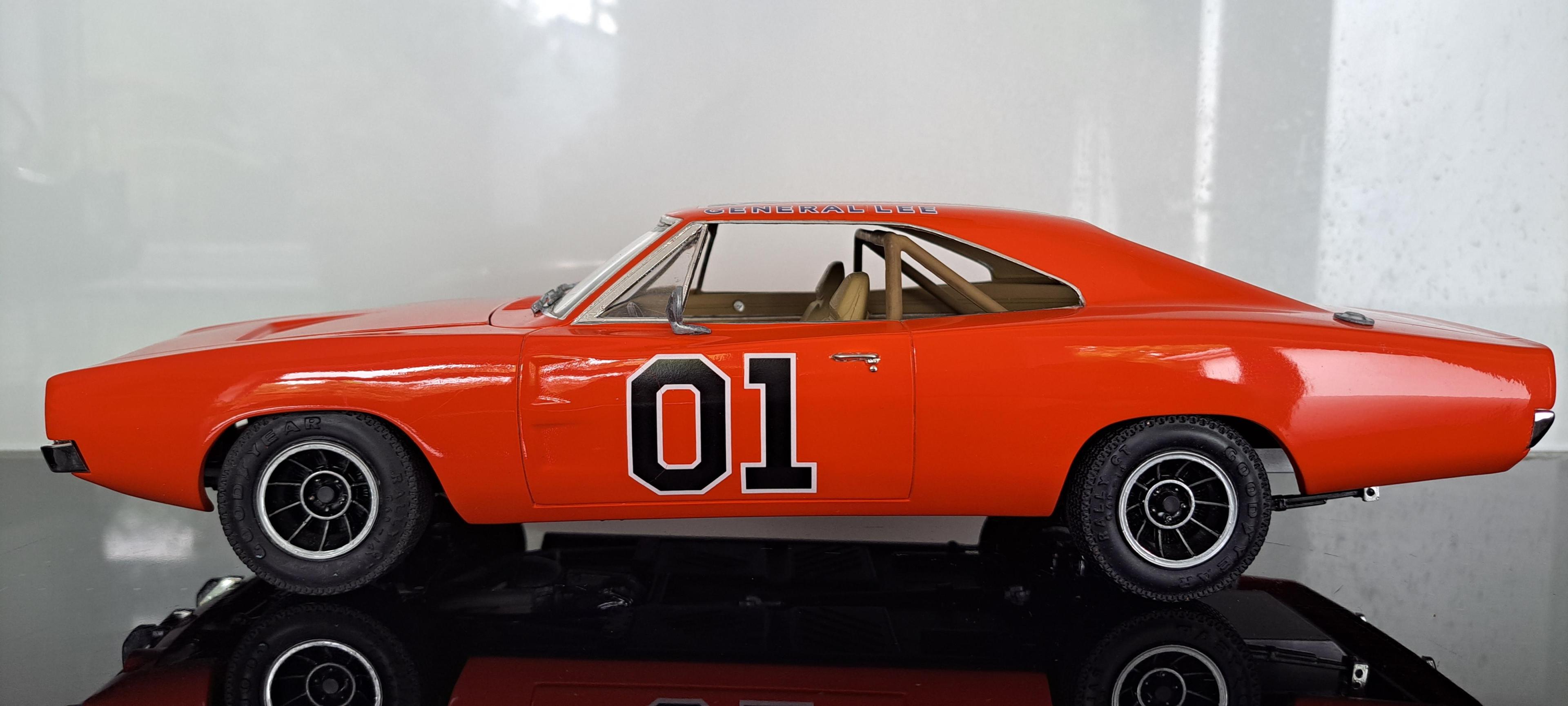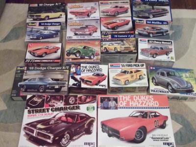 Here's my collection so far, Revell 1/25 and the re-issued MPC 1/16 General Lee with modified front wings & smaller AMT Tires.