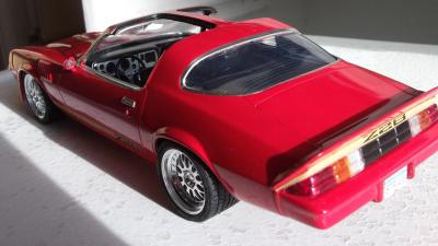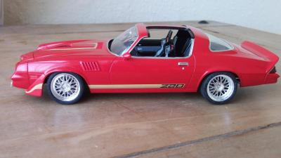 Hi Guys, finally finished this Camaro, gone for the Pro-Touring look with Wheels, Tyres, Seats, Brake rotas, steering wheel & seat decals pinched from Tamiya's 1/24 Porsche 911 GT2 Road version. Paint is Ford Cardinal red from auto rattle can, several coats, wet sanded after 3 coats, 2 further the left & polished. Very pleased with the look, last pic is my real 79 Z28 I sold back in 2002, cheers Damian