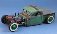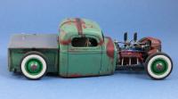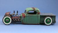 After months of slump I finally finished something. I started by chopping up a 1940 cab and bed and adding a scratchbuilt chassis. The engine and suspension parts came from the 1940 street rod kit. I also scratchbuilt the floor, console, bomber seats and beehive filter. I really like how the weld seams came out on the bed and would have done them on the cab as well but I wanted to finish it up in time for a show last weekend so I went with a welded, ground and rusting again look.