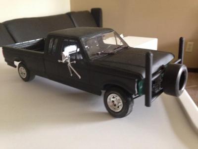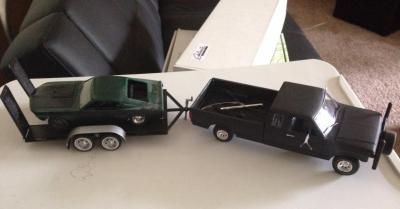 Got this one all wrapped up minus the ladder rack. It'll be awhile before I get that done. Just moved so I'm having to recreate my workbench. Also lost my "spray booth." The car on the trailer is a '69 Mustang. It was a glue bomb that I stripped apart, painted, and threw back together. I should've tried adding rust and dechroming the wheels (one of them is painted black). The car also doesn't sit on all 4 wheels because I cut one tire trying to make it look flat. Doesn't look good.