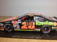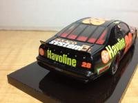 Here's a 1/43 Texaco Havoline T-Bird driven by Davey Allison in 1991. This model has a scratch built interior including cage and seat there is also is a replica of the drivers helmet hanging from the roll cage hook.