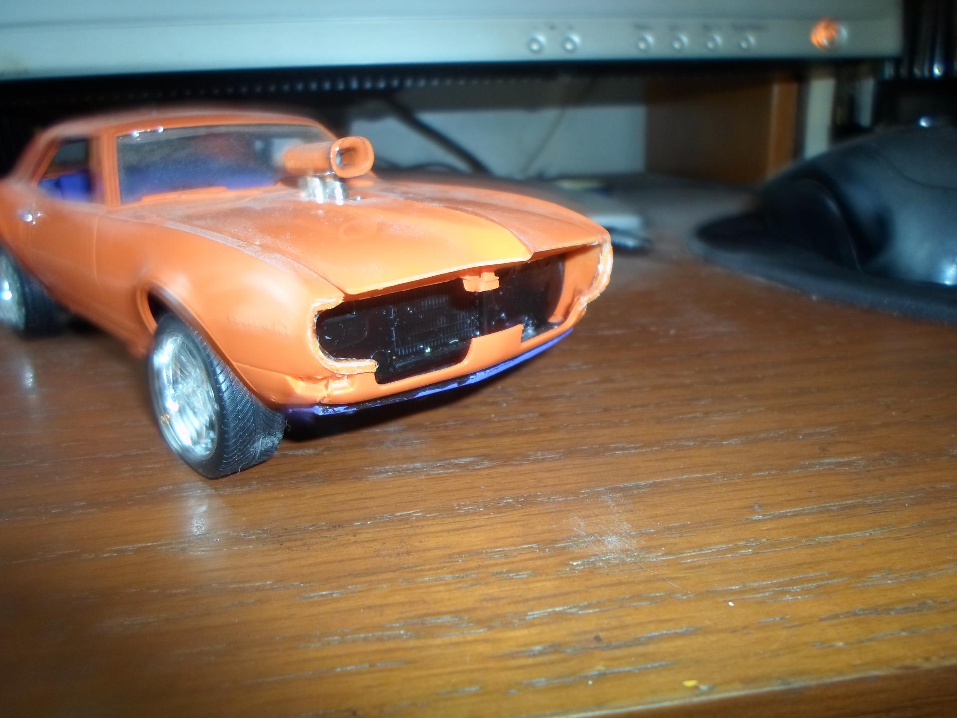 Scored this morning at a garage sale for a buck. Clean build but strange choice of colors. Missing front bumper. May be a Foose car, not sure. Orange body with purple interior and frame.