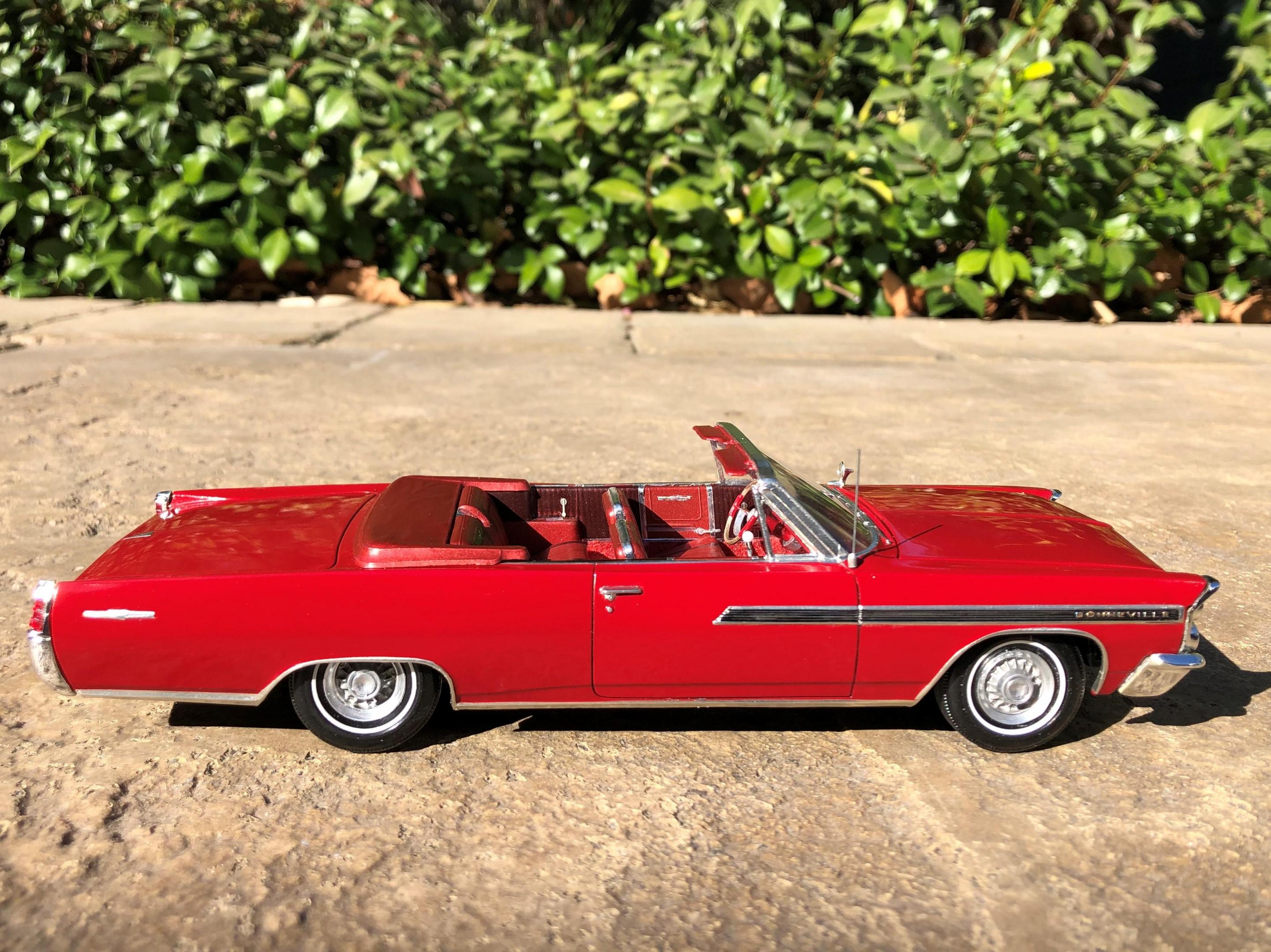 Thank you everyone! This is one of a pair of '63 Bonneville Convertibles that I've been working on for a while. The other car is Yorktown blue with a light blue uptop. The annual kit did not come with an uptop so I am still working through the challenges on that one.
