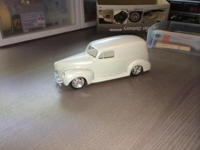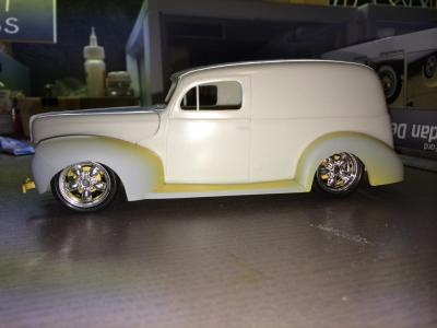 Getting back in to things. So why not start something new? ;-) Always loved panels, so wanted to give this AMT version a shot. If you've built any of AMTs 40 Fords, this will look familiar. Anyway, I love resto mods, so threw some scale 20s on the back and 19s on the front after dropping it about 5 scale inches. I'll post photos in a few.