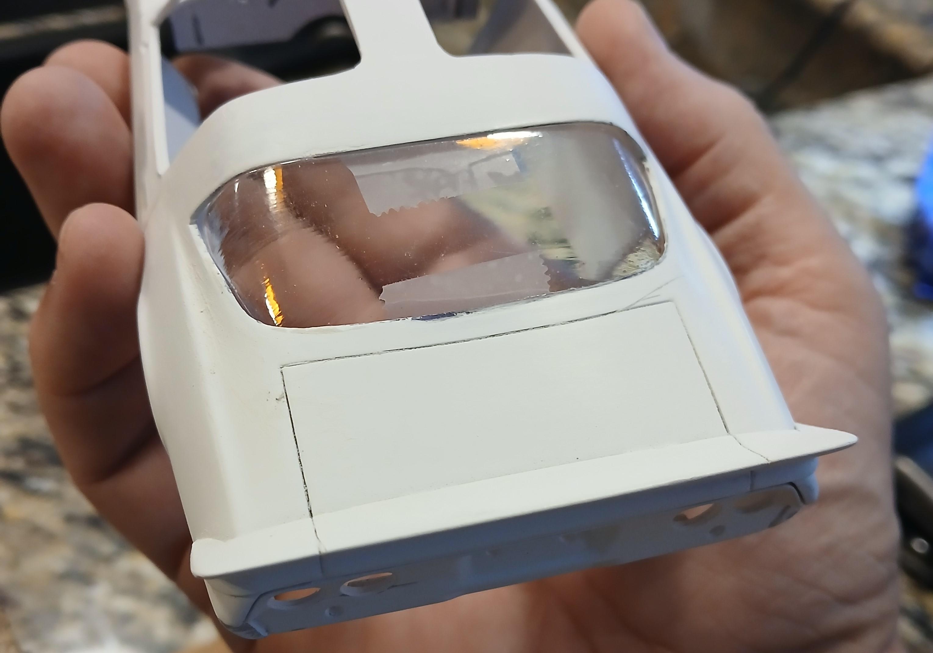 After a bunch of time spent on the JB weld mold, and several attempts to get the back window molded, I think I have it! process is simple; make mold, make mold fit, mount mold, heat bubble plastic, stretch over mold and trim. -