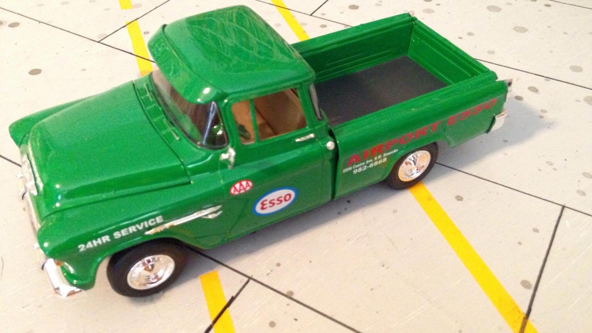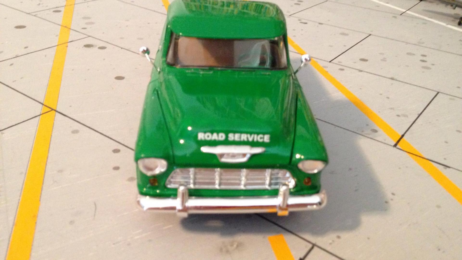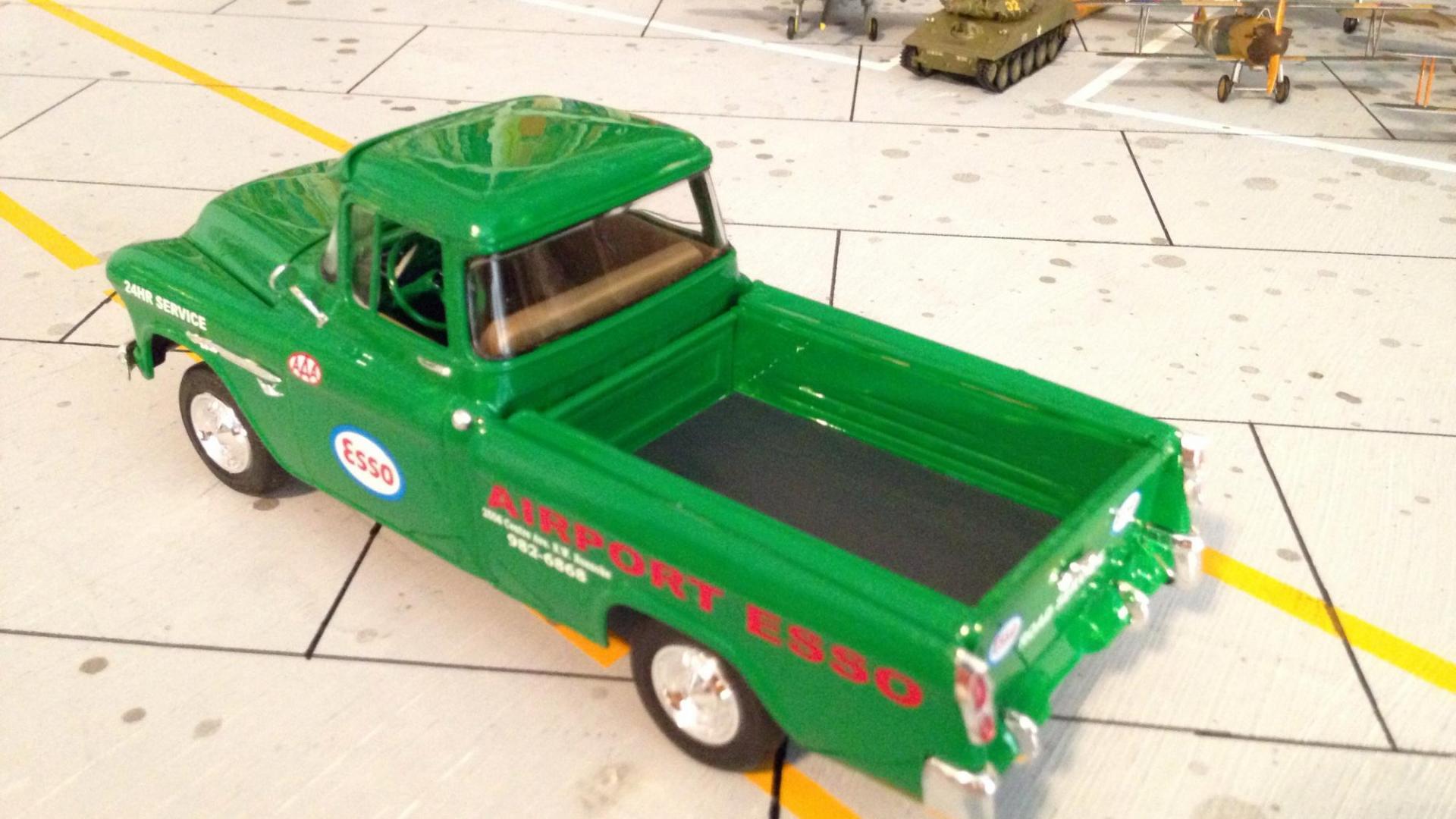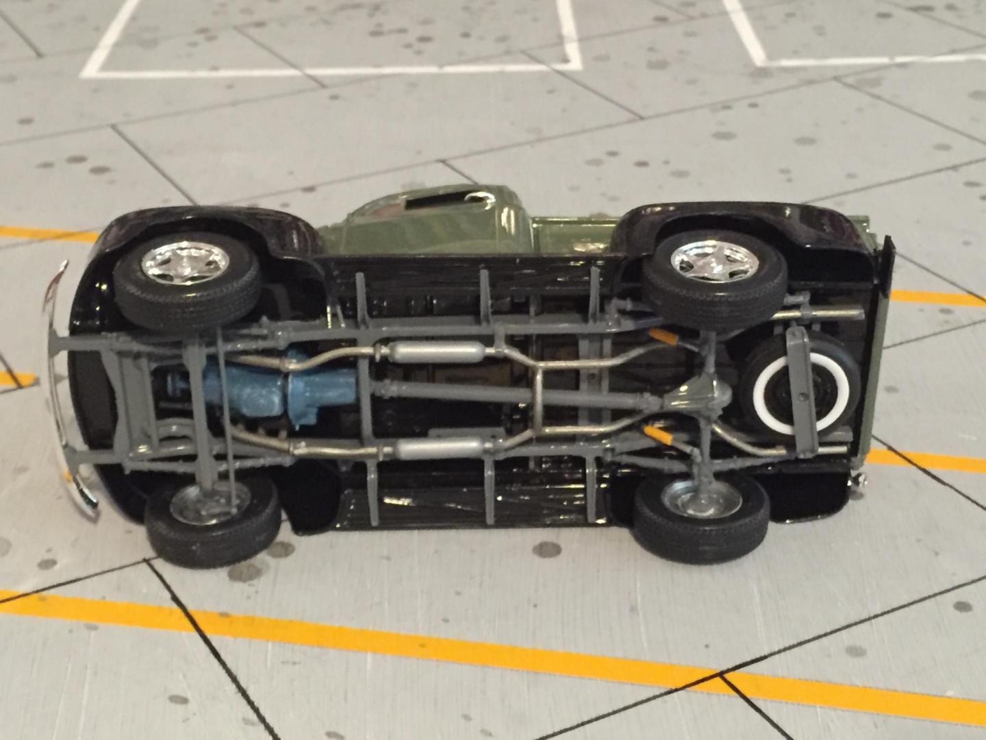 Where I grew up, the Sinclair station across the street had a '50 Chevy Stepside painted in these colors. The model is built OOB with the exception of the wheels and tires that I bought on eBay. The bed was brushed Testors Flat Black and then most of the paint was rubbed off with a soft cloth dipped in charcoal lighter fluid(naptha). The bed's wood color is two coats of Tamiya Turn Signal Amber applied by brush and a coat of Future overall. The body is brush-painted with Testors Gloss Black and Xtracolor RLM62 Grun(a pre-WW2 German Luftwaffe aircraft color). Adios, Larry the Airplane Guy.