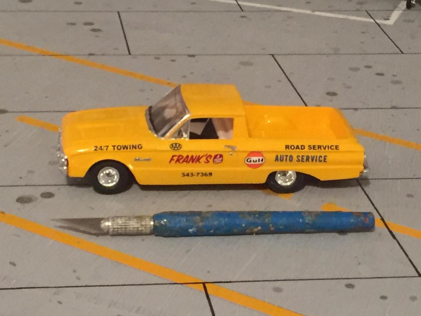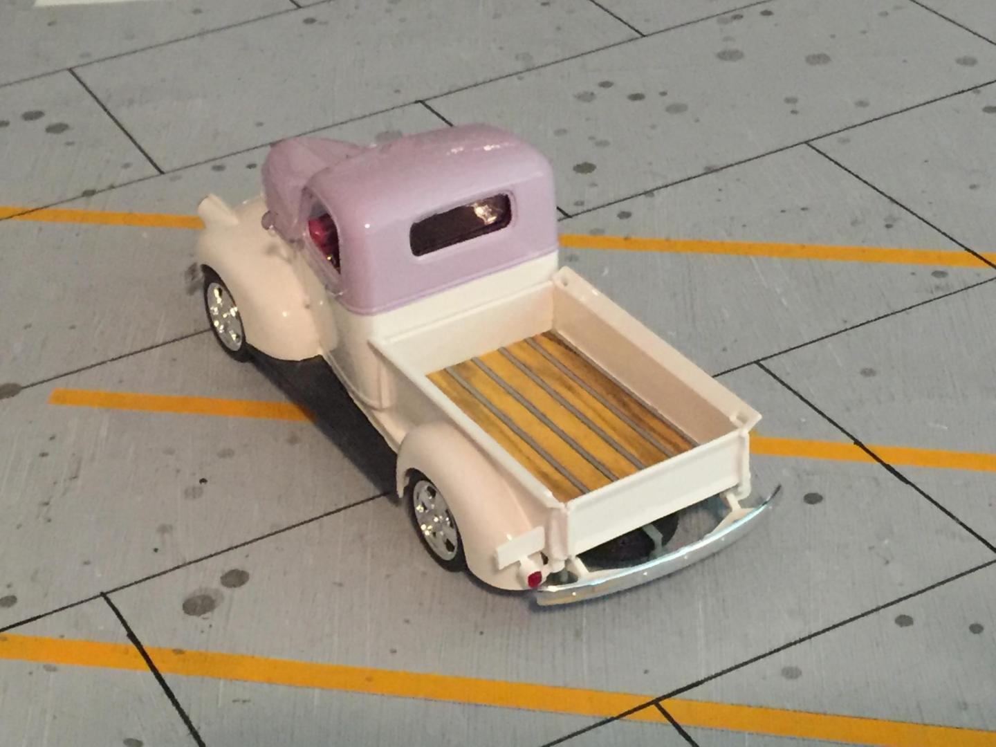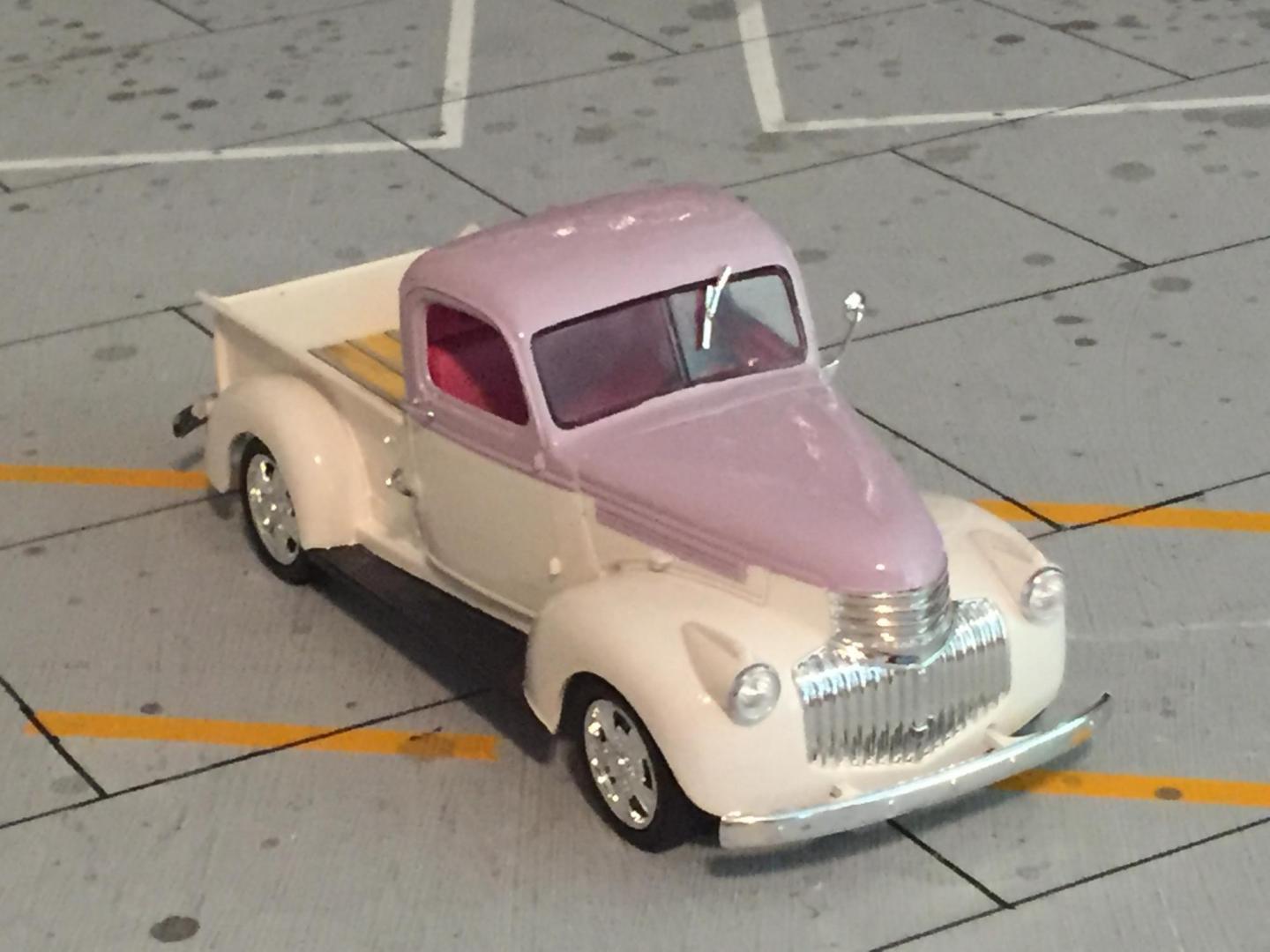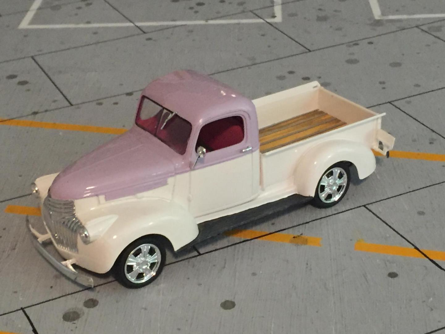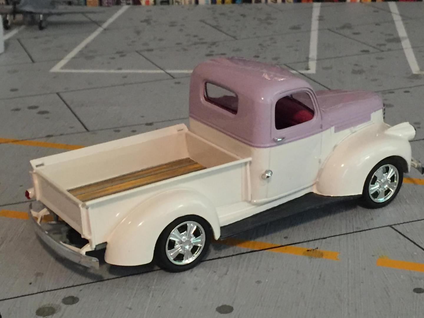 My Dad had a '41 Chevy pickup as his gas station shop truck. It didn't look like this one. Built OOB. Truck bed is the kit decal. The truck is brush-painted Humbrol Gloss White(with 2 drops of True Blue added to the tin to mitigate yellowing over time) and a home-mixed shade of Orchid Purple. I had to wrestle with the body, frame, and hood, but I got it together. Adios, Larry the Airplane Guy.