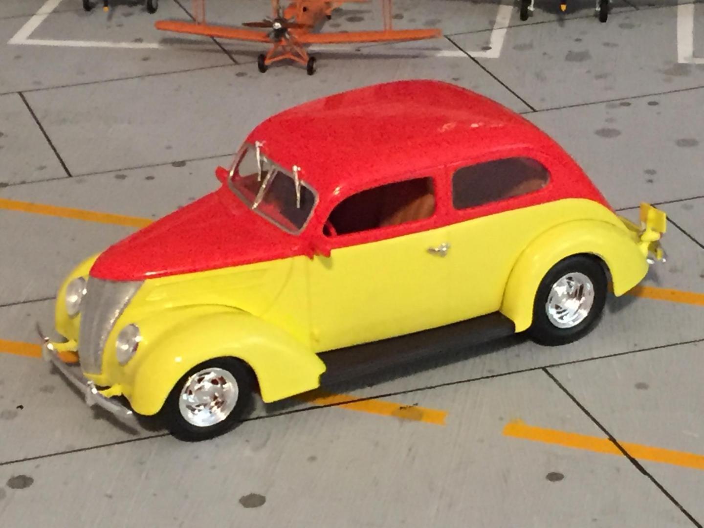 This is my second attempt at a Tu-tone paint job. The build is totally OOB. The model is brush-painted Xtracolor Gloss International Orange over Testors Gloss Light Yellow. The interior is Vallejo Vallejo Light Rust acrylic. I would love this as my daily driver. Adios, Larry the Airplane Guy.