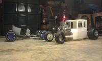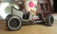 i have also been collecting parts here and there for a t bucket 1:1. looking for this look except maybe flat black with red wheels. i scored a running 305 for free.....and that started my project!
