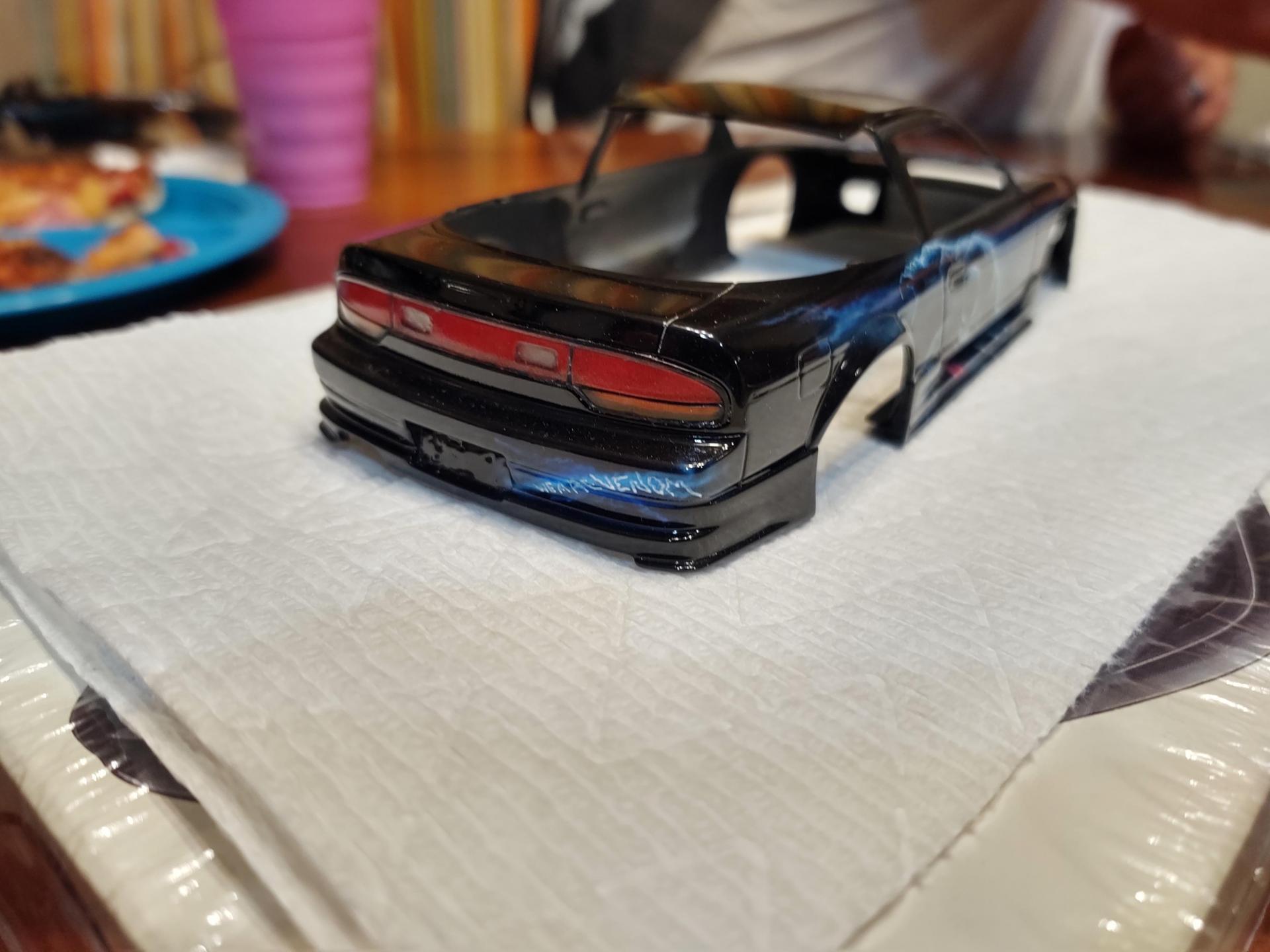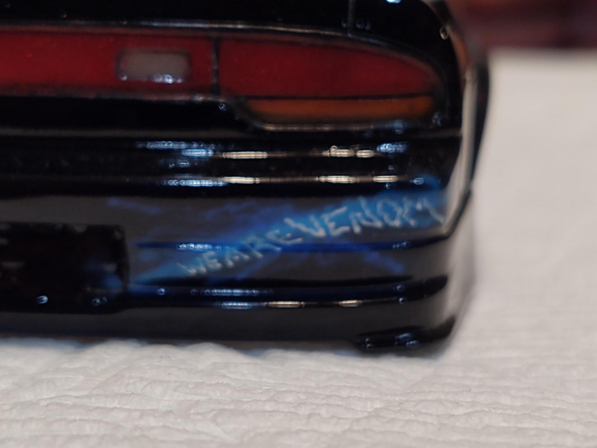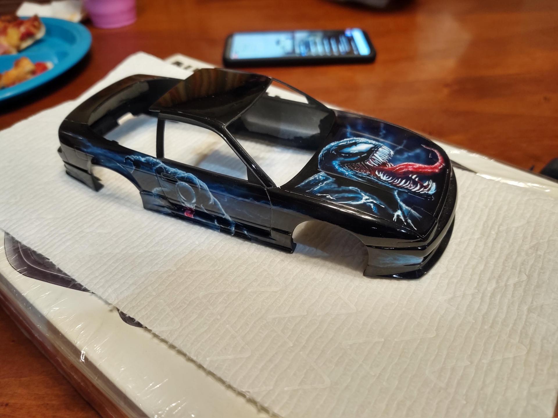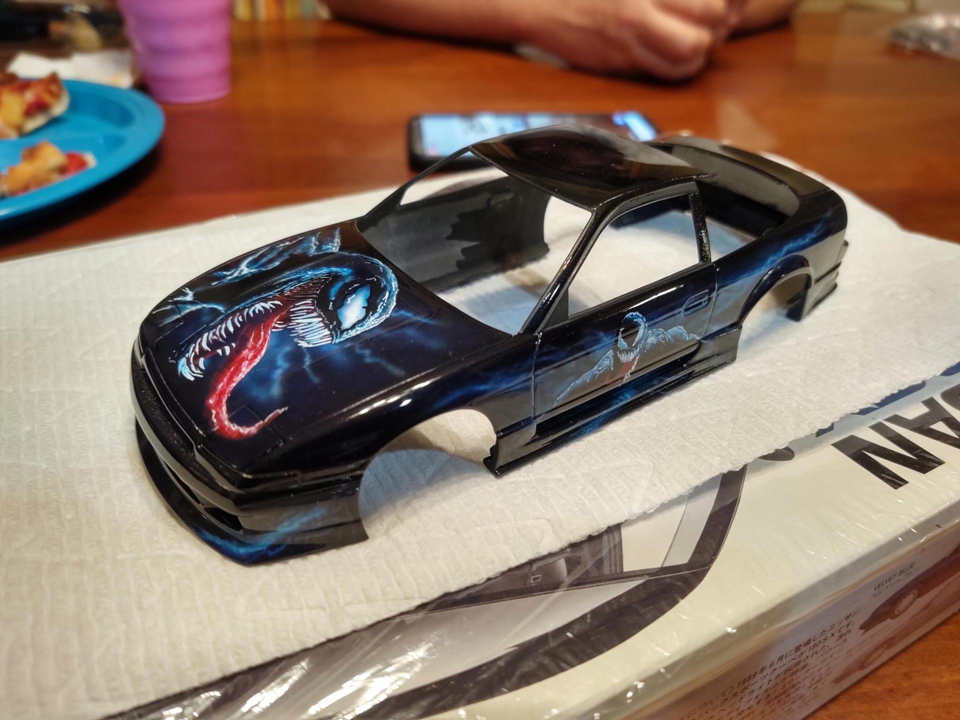 My good friend, Alexander Jurck, posted he would trade a paint job for a Moebius F100, so I sent the truck and a freshly re-primed 180SX. We decided that VENOM would be the theme, and he did his magic. It is all airbrush and detail painted by hand.