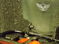 Hand lettered detail  : engine, tires, under hood logo.
