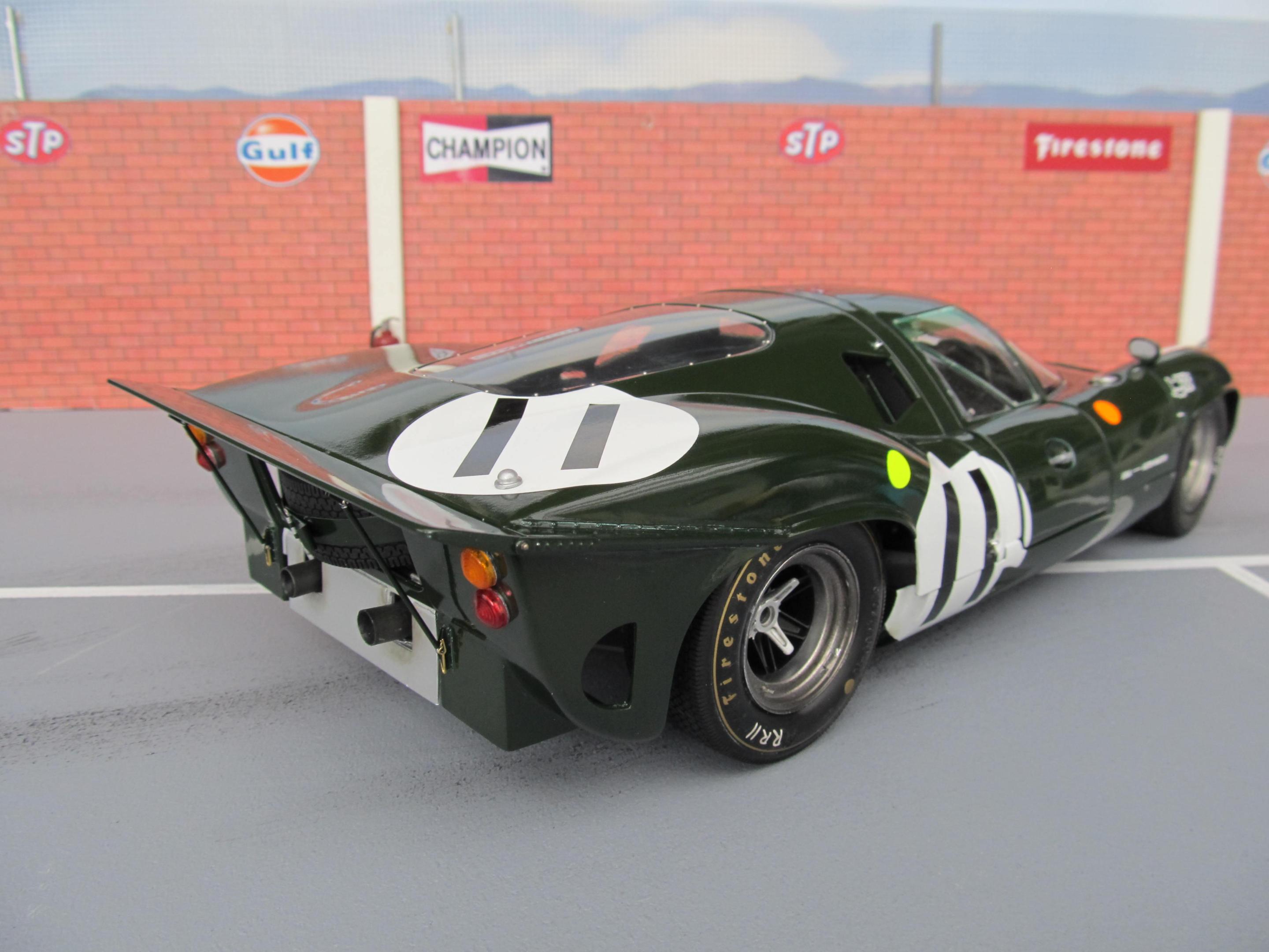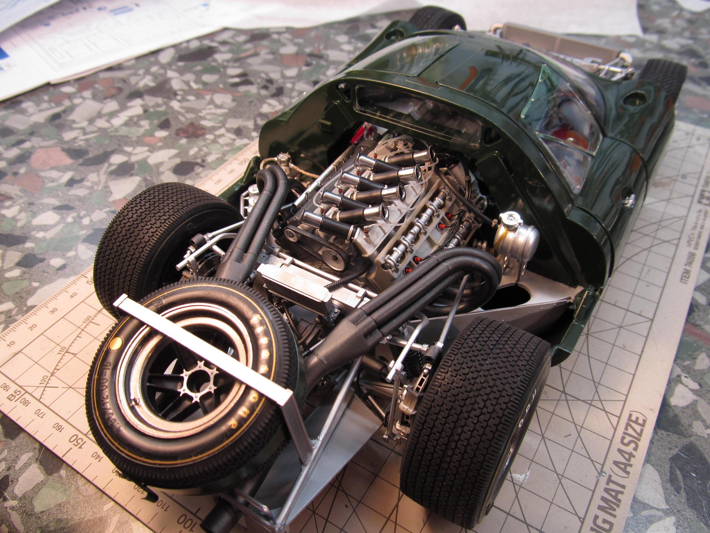 Thanks Giovanni ? I´m glad you liked it ! Old racecars was never that glossy as today, thats right. I used Tamiya primer then Tamiya TS 9 British green and then Tamiyas clear on spraycans. I stopped using clear over decals a long time ago,you may ruin the decals if the clear is to hot, I put the decals in place after the clear is on. Then I mostly use Johnsons floorpolish, I use a wide brush and seals the decals with it. Works very well I think. I really like that the engine is so visible with that special bodywork ? Thomas