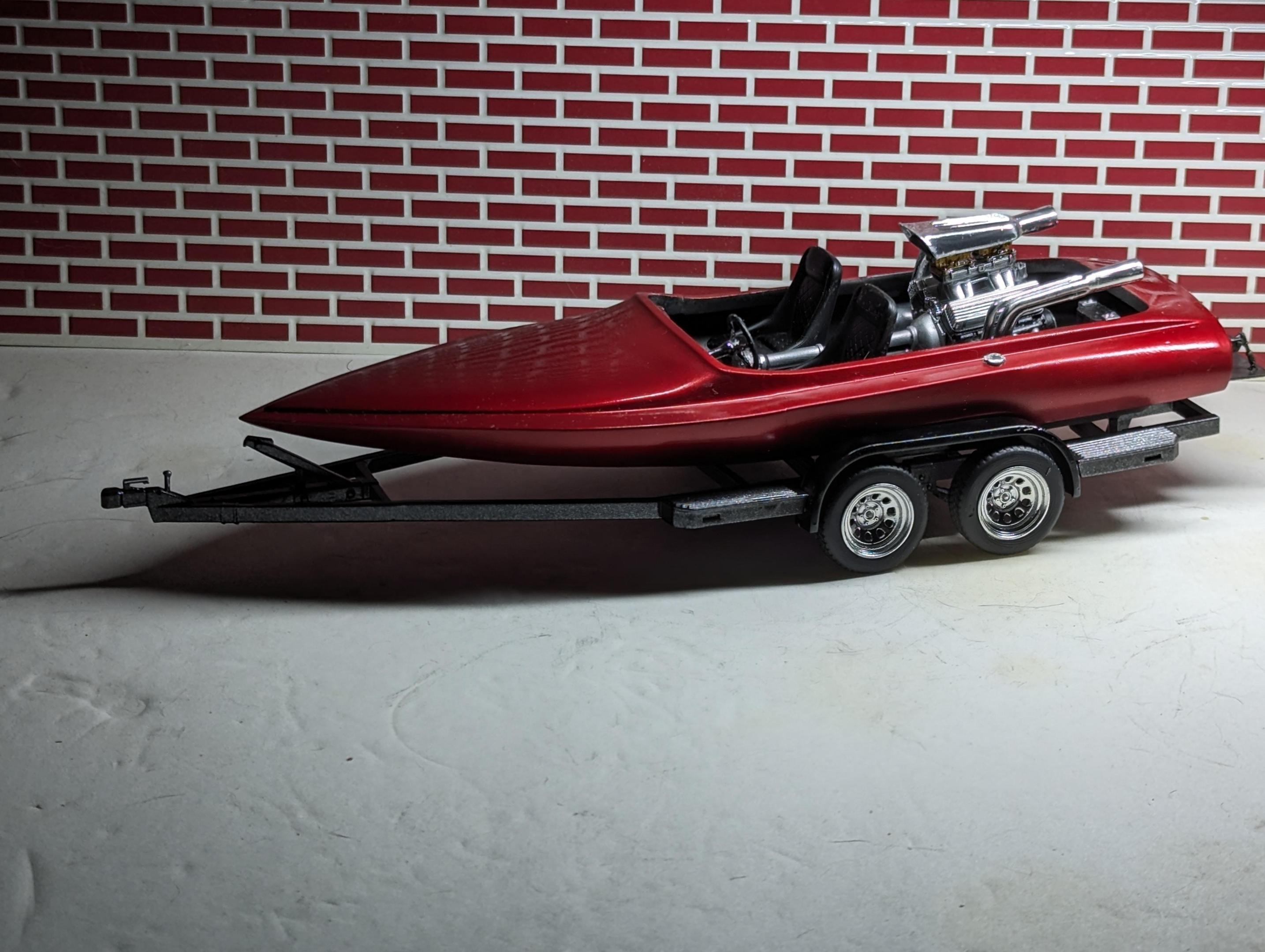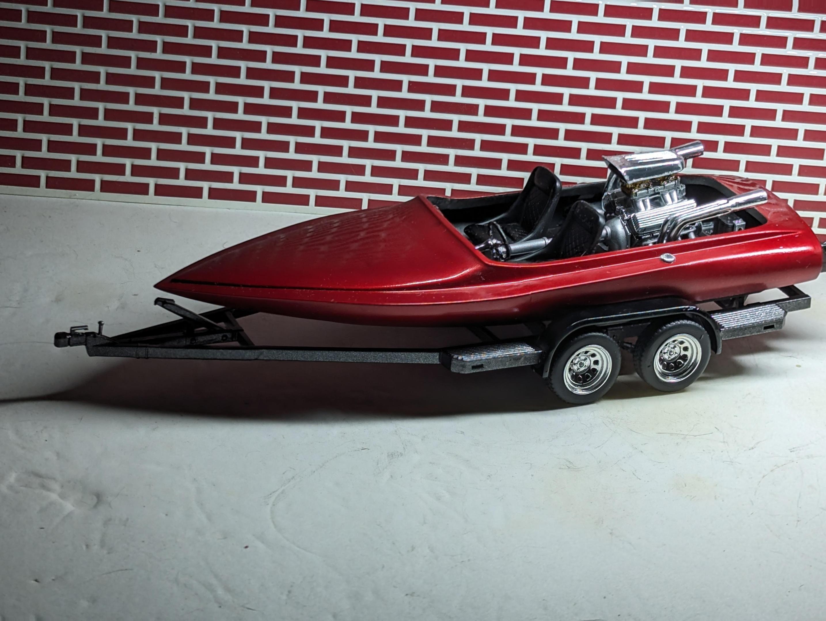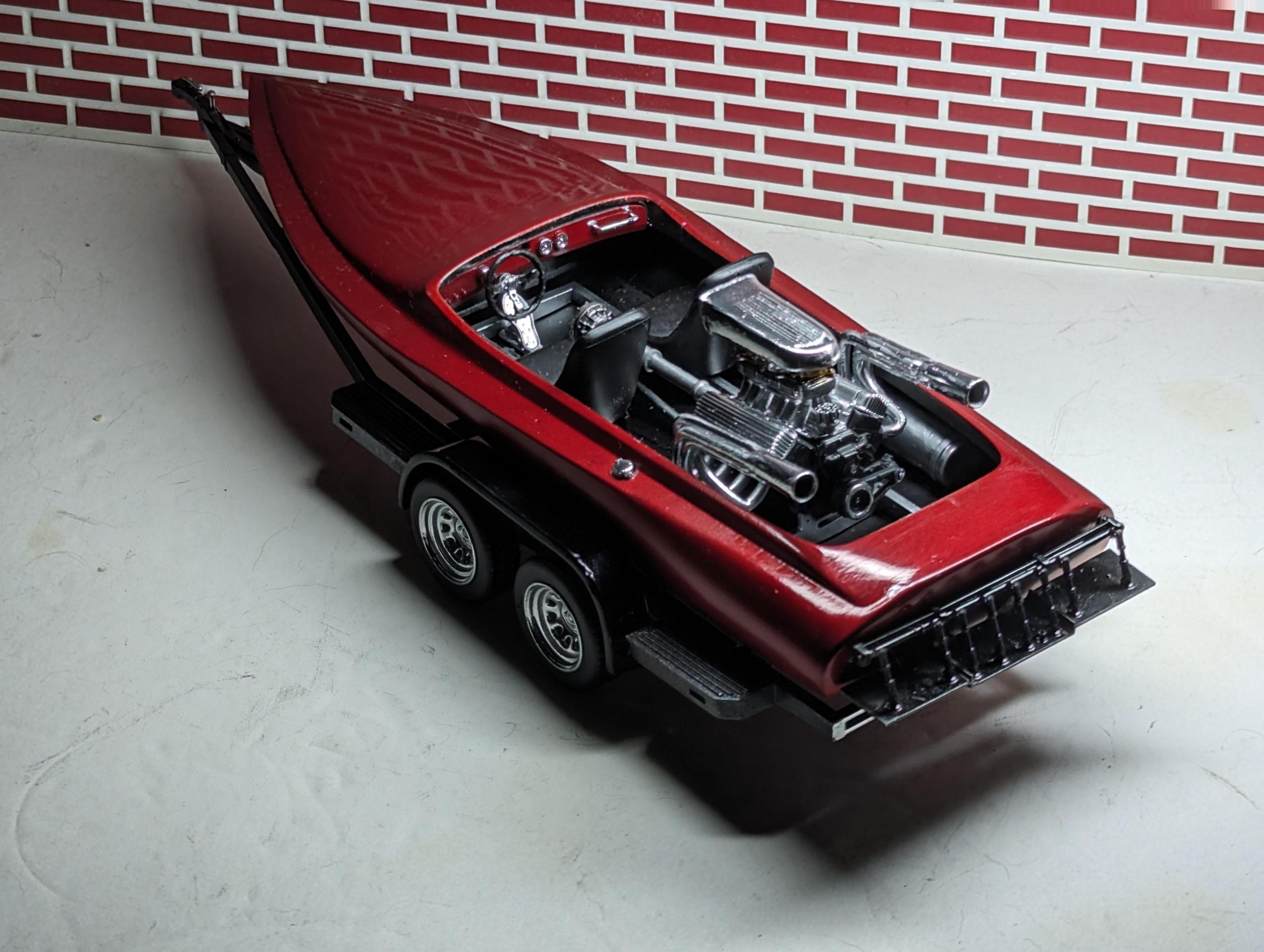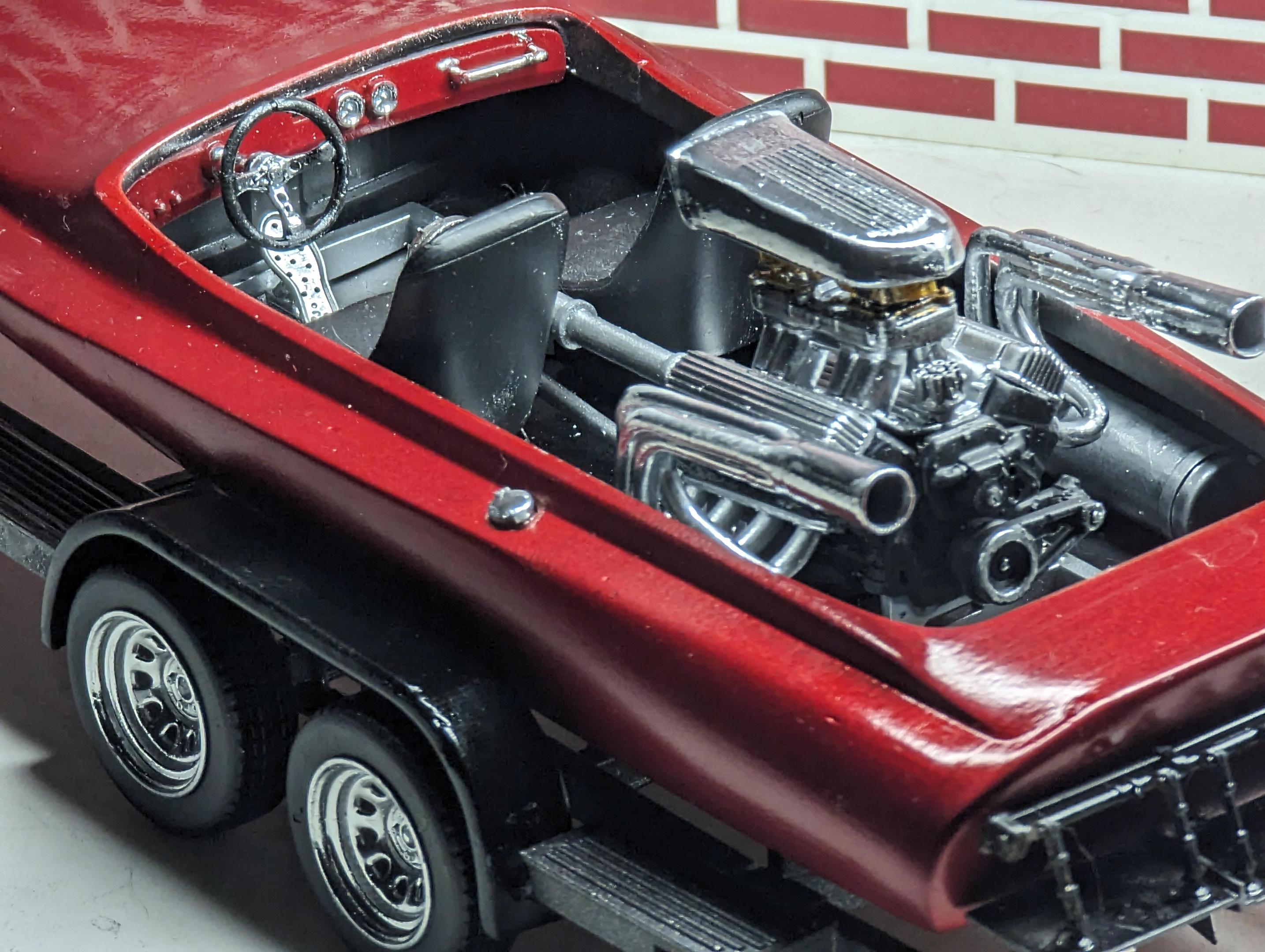 10. This started as the Revell 1957 Nomad kit. I 3D printed the Hemi and transmission, wheels, tires, front suspension, ladder bars, moon tank, seat and other small bits...I wish the chrome trim would have turned out a little better but I didn't have any bare metal foil on hand. Enjoy. EDIT-I just noticed that super glue dripped down behind the moon tank and onto the grill and bumper. Ugh. The build looks horrible up close