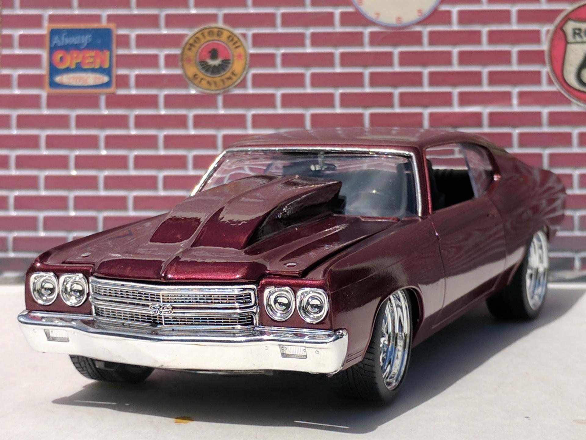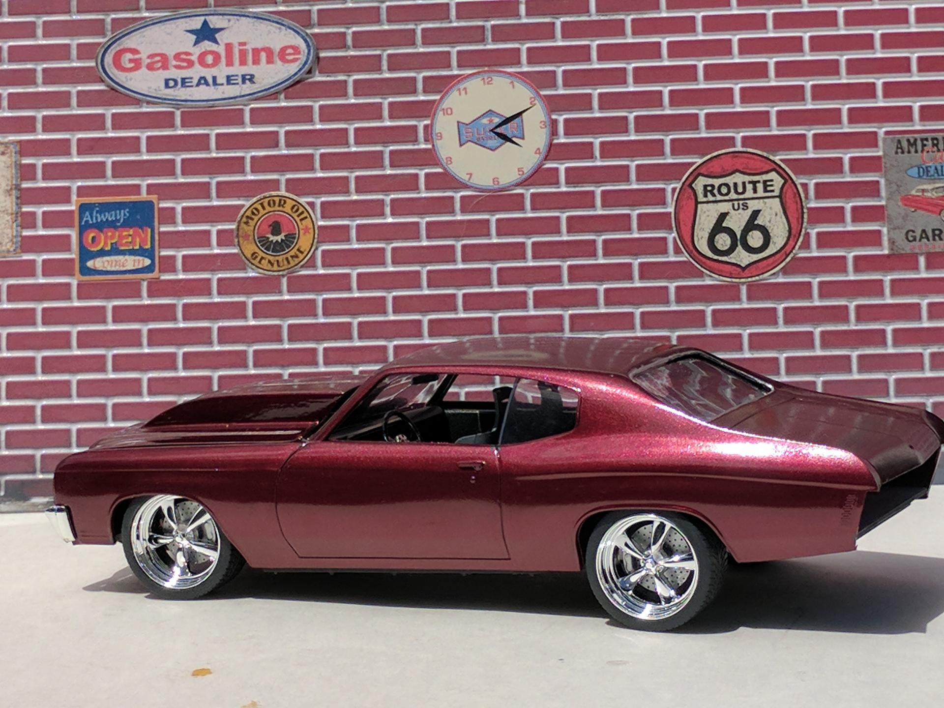 Thanks guys. Paint is (I think) Tor Red Metallic Duplicolor over cheap Walmart primer. The hood was the only non stock cowl hood I could find on ebay. It has a B-N-L Resins 502 BBC fuel injected, that I will put pictures of later.