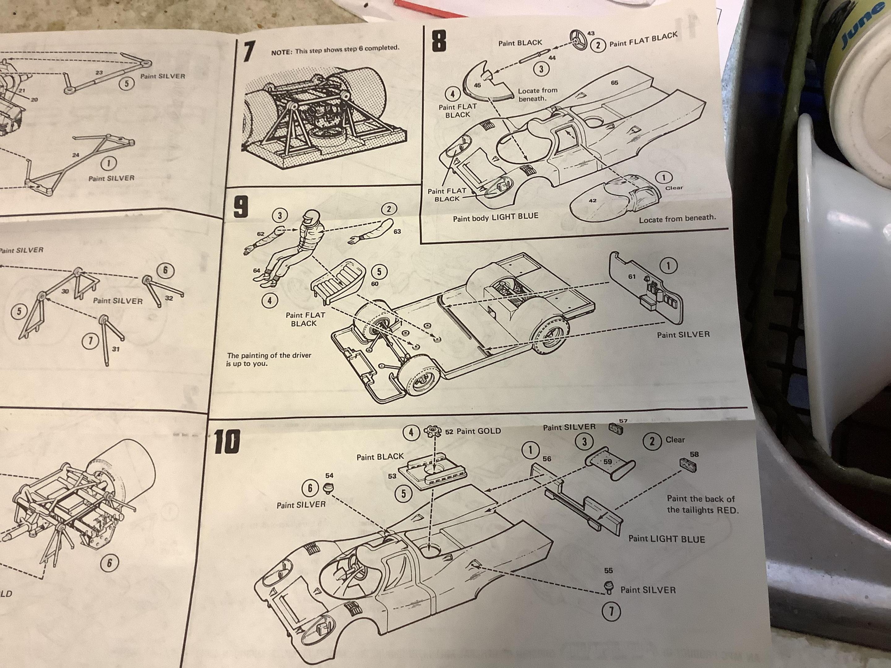 The more I look at, and start test fitting parts. The more impressed I am with the MPC/Airfix 917. It’s not up to the quality or level of detail of my 1/24th scale Fujimi Porsche 917K kit. But, it’s not that bad. Nor is it as complicated as the Fujimi kit. The body especially, looks better than the box art would lead one to believe. I really am liking what I’m seeing in the MPC/Airfix 917.