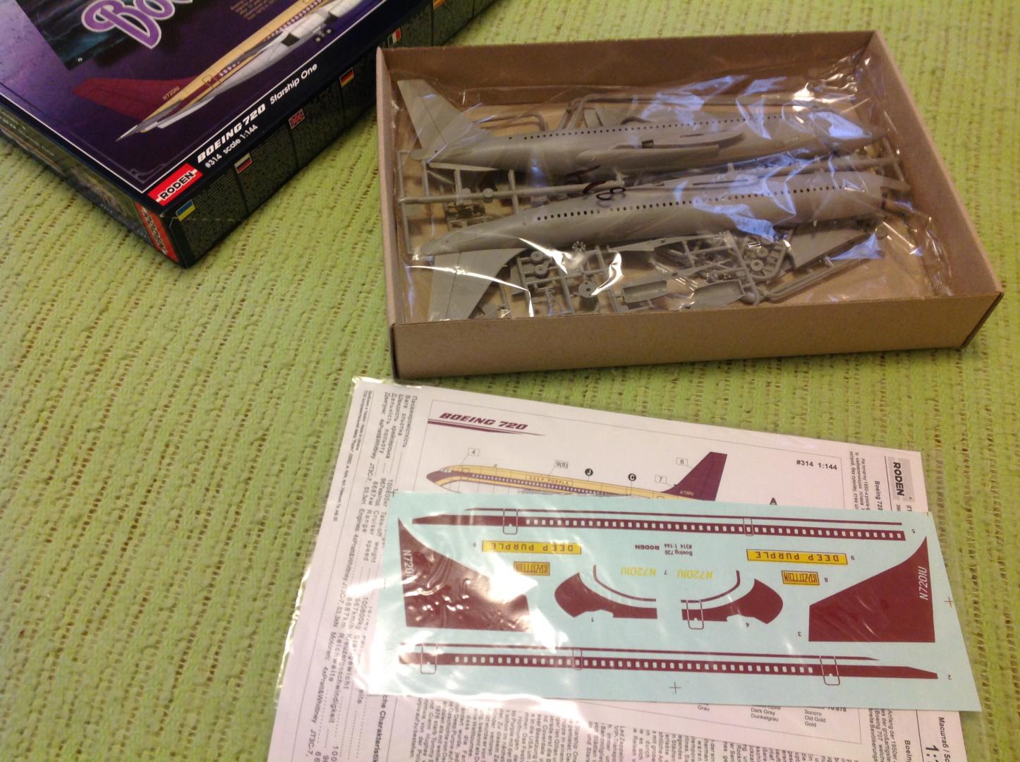 Okay. I can now build Bill Bixby, the "Magician" airplane the Sprirt. As one can see, I bought Roden's1:144 scale Boeing 720 Starship One. Kit #314. One of four variations in Roden's Music Series Boeing 720s. Two representing two different paint schemes for the Boeing 720, N7201U, the Starship One. The other two representing Boeing 720, N7224U, 'Caesar's Chariot' in two different paint schemes. It looks like a great kit. The parts are molded sharp and crisp. No flash what so ever. The instructions are great. They give a good history on the 720 series in general and Starship One itself. Though no mention is made of it's use in the Magician. There is also a great seperate sheet, in color, showing the paint instructions and decal placement. And the decals look very good too. Overall, I'm impressed. To hopefully to make this a little easier to build, I also bought a Montez Mini Mask set designed for this kit. It contains masks for all the windows. Most importantly the windshields. It also has masks for wheels/tires. Why, I'm not sure? I wish they made a mask that could help with painting the downward slope of the paint on the nose. To me, that looks like it maybe the trickiest part of building with kit. Now I need to find a '73 (pilot episode/TV movie) or '74 (series) Corvette to display the plane. The Magician. Still one of the coolest TV shows ever. -