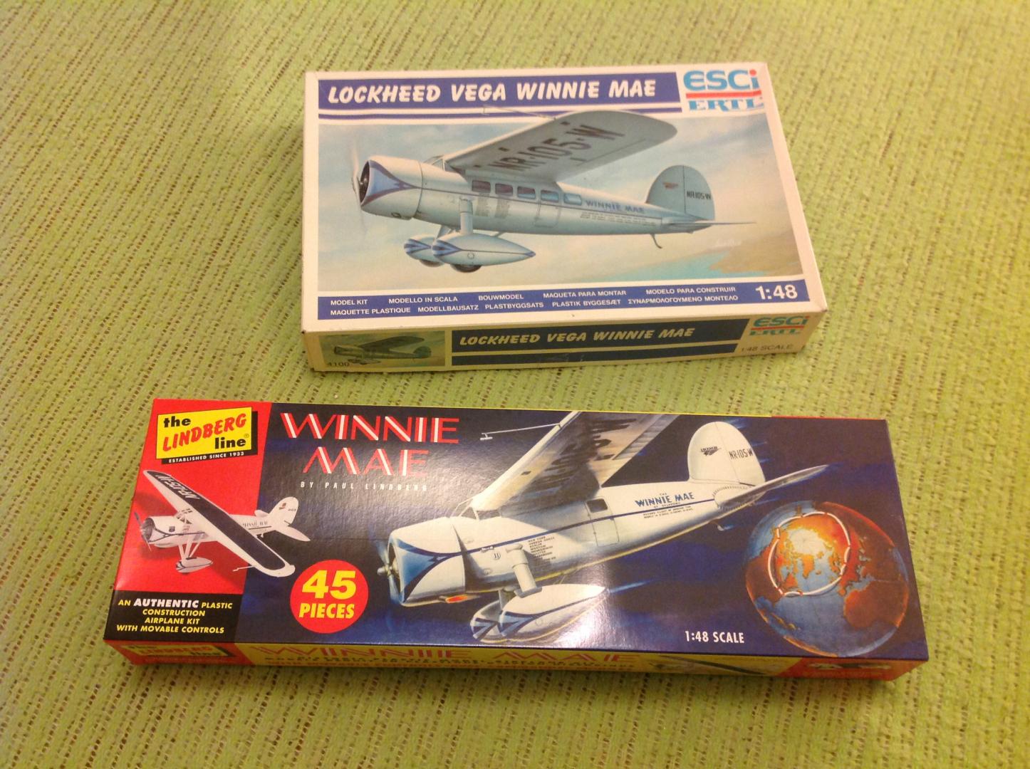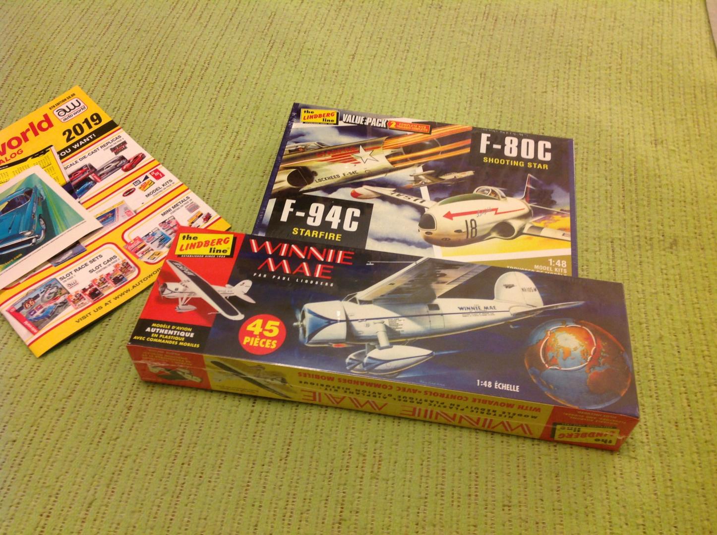 You were right on those two. Wow! The F-94C Starfire in particular is bad. The worst cockpit, or lack there of, that I've ever seen in any airplane kit. Look into the engine intakes, and what do you see? Nothing! There is nothing in there! With the lack of cockpit detail, you might see the radar operator's lower torso, legs, and feet in there. And where are the landing gear bays? The the gear is there. So are the gear doors. But no bays for them to retract into and cover. The F-80C Shooting Star is a little better. But not by much. It includes a full cockpit. Landing gear bays. Air intake pieces. But, look in the exhaust, and like the Starfire you'll see nothing but a hollow plastic tube. Still it's a better kit than Lindberg's F-94C. Just not much better. And you asked about stands, Snake. There are none. They are going to have sit on a desk or shelf on their own landing gear. An I disappointed? Yes and no. I didn't pay a lot for the two of them. I kind of knew what I was getting into a head of time. And I've built BLAH_BLAH_BLAH_BLAH like this in the past. So it's not a big surprise. I still have hopes for making them look somewhat okay in the end. Lindberg's Winnie Mae is a lot better. Interior detail, like AMT's version is lacking in both kits. The Lindberg version has only one exhaust coming out of the lower engine cowling. And then that exhaust looks like nothing I've seen in any of the photos of the real Winnie Mae. But, it does the look similar to the exhaust you'll see on some photos of Amelia Airhart's Lockheed Vega. And from my understanding, there are aftermarket decals out there to convert this kit into Airhart's Vega. So what flaws the Lindberg Winnie Mae has, are much easier to overlook than those of Lindberg's F-80C or F-94C. Despite everything, I'm happy with my recent purchases of Lindberg airplane kits. No regrets. I'll have fun doing the best that I can with each kit. -