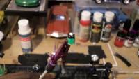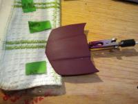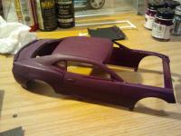First go of the wet sanding. Also....second coat of the awesome base color. but had a mishap and dropped the bottle that holds the body fell onto the carpet and as you guys can see, BLAH_BLAH_BLAH_BLAH attached itself. got some work ahead. why are the pics so dang small!!!!!!!!!