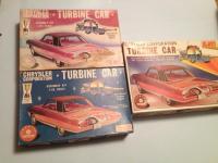 Andy (and everyone else looking over our shoulder as we hijack this thread): Regarding the JoHan Turbine Car kits, attached is a photo showing what I know to be the three (3) box variants for various releases of the kit. The brownish colored box is #1, Blue is an early reissue, and the slightly larger box is for the later reissues. Some of those later ones will have a sticker on them saying "Seville". BTW, the original brown was a bit darker. This box in the pix is badly faded; not one of my better examples in my collection, but it was the first I could lay hands on. The other pix I'm posting are of an original promo of the car. I hope that these two (2) pix will come through clearly on this post. If you can enlarge the pix, you'll get a good idea of the color that the original kits and promos were molded in. Note: the early promos had sort of a metallic pearl clearcoat. Hopefully you'll be able to catch a glimpse of that in the top-view photo. Hope this is of some help and amusement to y'all. For info on the 1:1, I highly recommend the book entitled "Chrysler's Turbine Car: the Rise And Fall of Detroit's Coolest Creation", by Steve Lehto, published in 2010. You should still find it available in paperback at "Amazon", and I got a digital copy recently off of iTunes for my iPad. I have been fortunate to see a couple of the Turbines in person at the Chrysler Museum, and at the Petersen museum in years past. Wish I could visit Jay Leno and get a ride in his personal Turbine which he got from Chrysler engineering department! Regards, Mike